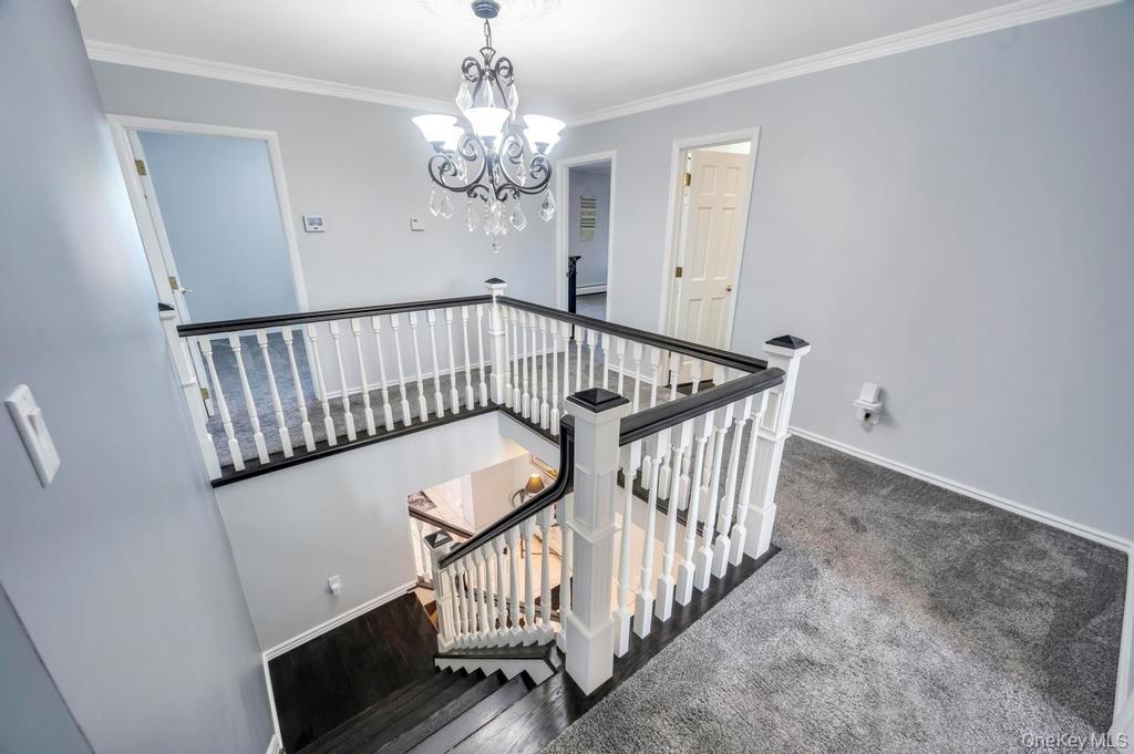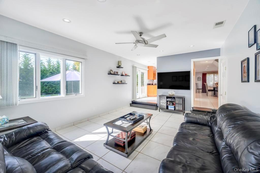 Welcome to 37 Columbine Lane, a beautifully updated 5-bedroom, 2.5-bath Colonial located in a quiet, sidewalk-lined neighborhood within the Kings Park School District. Boasting impressive curb appeal, this stately home welcomes you with a charming covered front porch and a newly paved double-wide driveway leading to a spacious 2-car garage. Step inside to find a bright and open interior with recessed lighting, neutral tones, and gleaming tile floors throughout the main level. The oversized formal living room is flooded with natural light from the large bay window and flows seamlessly into a generous formal dining space, perfect for hosting gatherings. The sleek, modern chefs kitchen is equipped with granite countertops, custom cabinetry, a 6-burner gas cooktop and double electric oven, offering ample counter and storage space. Just off the kitchen, a cozy den provides an ideal spot to relax or entertain, with easy access to the backyard through sliding glass doors. Upstairs, you'll find five generously sized bedrooms, including a spacious primary suite complete with a walk-in closet and private en-suite bath. All bathrooms have been tastefully updated with elegant tilework and modern fixtures. Downstairs, the basement with outside entrance provides additional storage or potential future living space. The fully fenced backyard is a private oasis, featuring a 22' x 52' custom paver patio that spans nearly the width of the home—perfect for outdoor dining, lounging, and entertaining. Mature privacy hedges surround the property, offering a serene and secluded feel, with plenty of grassy lawn space for play or a future pool. Additional highlights include central air conditioning, new roof and chimney (2020), new in-ground sprinklers (2024), new driveway, walkway, patio, porch and stoop (2024), radiant floors, gas heating, and a laundry area conveniently located on the main level. Located just minutes from town, schools, parks, and beaches, this move-in ready Colonial offers an incredible combination of space, updates, and outdoor living. Don’t miss the opportunity to make this beautiful house your home!