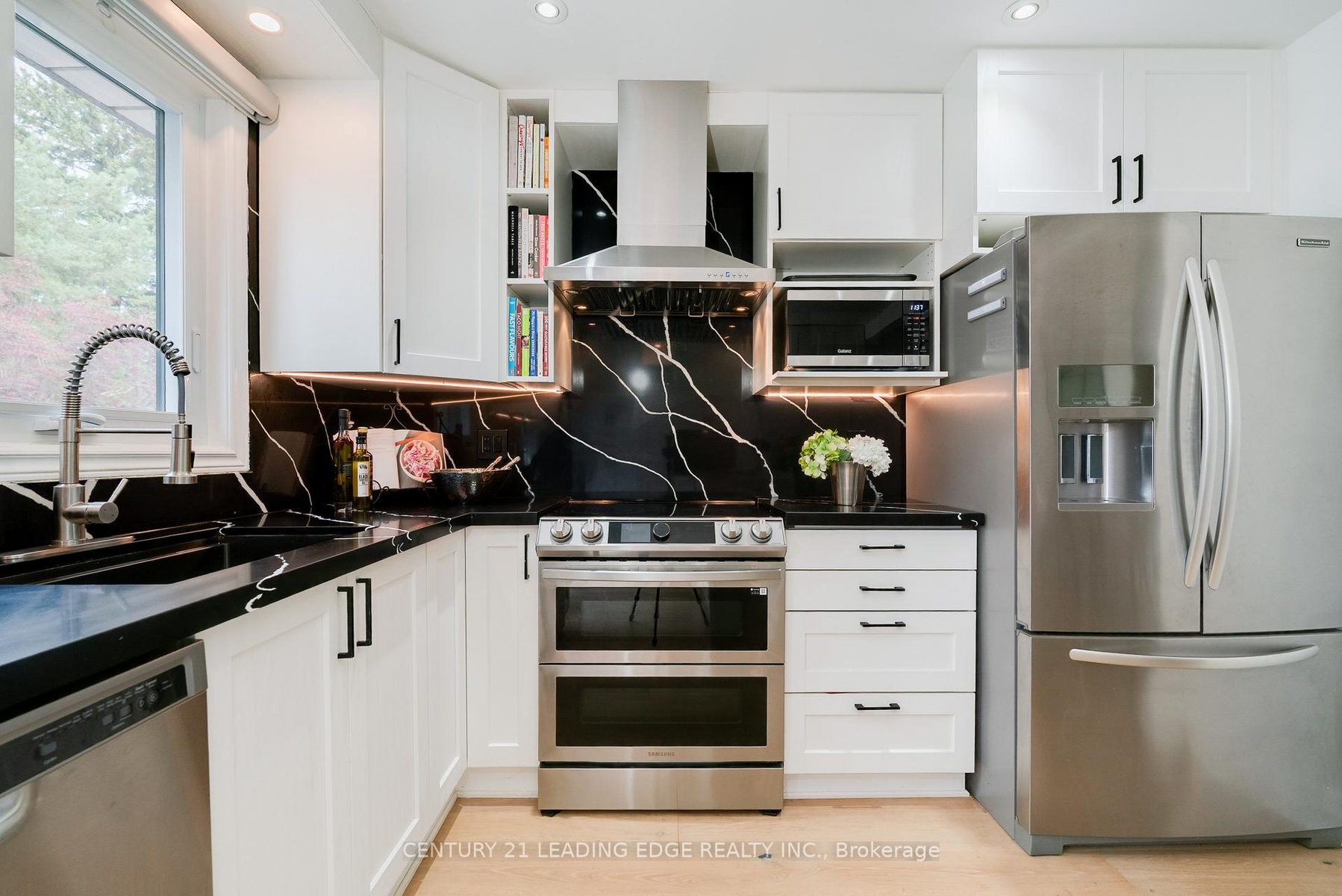 Welcome to 4 Aveline where modern design meets effortless living in this fully renovated 4- level side split in sought-after Bendale. With $400,000 in upgrades, every inch of this home has been reimagined for contemporary comfort and style. The open-concept main floor blends a bright living and dining space with a wood-burning fireplace and a stunning kitchen featuring quartz countertops, quartz backsplash, stainless steel appliances, pantry storage, and a walkout to a new composite deck-perfect for entertaining or relaxing. The home offers four bedrooms, including a main-floor suite with its own 3-piece bath and walkout to the backyard-ideal for guests or multi-generational living. Matching hardwood floors, new staircases, smooth ceilings and pot lights throughout create a seamless, elevated aesthetic. The large primary bedroom features large built-in closets for plenty of storage. A fully renovated 4pc w/ quartz countertops serves the upper level. The lower level adds even more versatility with a spacious rec room and built-in wet bar, plus a large laundry room with new washer and dryer. Extended garage with direct access from the front hall. Outside, your private retreat awaits: a fenced backyard with deck, patio, and large heated inground pool complete with pool house (with hydro), new pergola and a separate 2-piece, 3 season bathroom. The fully fenced front yard offers additional outdoor living with a patio and hot tub, all framed by a new interlock driveway. Located in the heart of Bendale, just a short walk to Scarborough Town Centre, parks, schools, and transit. Every detail is done-just move in and enjoy modern living at its best.