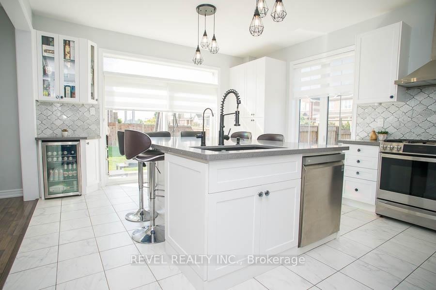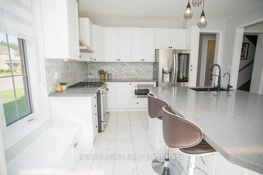 Welcome to 2 Attlebery Crescent in the desirable north end of Paris. This beautiful 2-storey home offers 2,340 sq. ft. of above grade living space with 4 bedrooms, 2.5 bathrooms, and a double car garage. The main floor features a spacious dining room with a feature wall, while the bright living room is open concept to the kitchen, creating the perfect space for family gatherings and entertaining. The chef's kitchen is a true highlight, complete with quartz countertops, white shaker-style cabinetry, a large centre island with seating, upgraded light fixtures, and sliding doors that open to the backyard. Cooking is elevated with premium stainless steel smart appliances, including a gas stove, smart fridge, dishwasher, and a built-in microwave drawer. A touch-activated faucet, pantry storage, built-in garbage and recycling, and a window bench with hidden storage add to the kitchen's thoughtful design. A mudroom with garage access and a stylish powder room complete the main floor.Upstairs, the primary suite boasts a double-door entrance, a large walk-in closet, and a luxurious 5-piece ensuite with double sinks, quartz counters, a soaker tub, and a rainfall shower. Three additional bedrooms, a 4-piece bath, and a convenient laundry room with a smart washer and dryer complete the second level. Outside, enjoy the covered wrap-around front porch, fully fenced yard, and back deck, ideal for relaxing or entertaining outdoors.