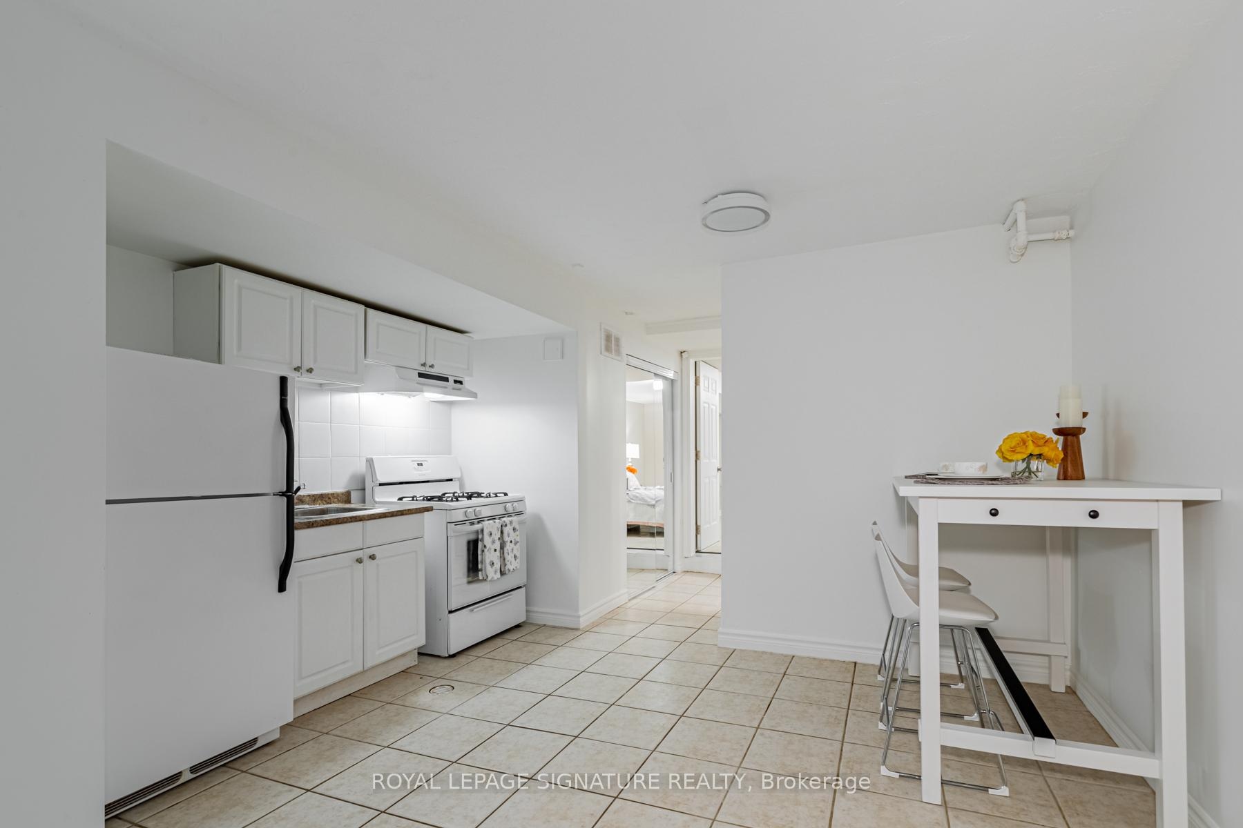 This Spacious Basement Apartment Is Ideal For Professionals With Large Bedroom And Den/Office. Private And Separate Entrance, Generous Storage Space Onsite, Large Above Grade Windows. Large Eat-In Kitchen With Full Size Fridge, Gas Stove With Hooded Range And Laundry Onsite. Easy Access To Major Public Transit, Close To Shopping. Open Green Space Directly In Front Of House And Walking Distance To Parks And All Major Amenities. On Bus Transit Route.