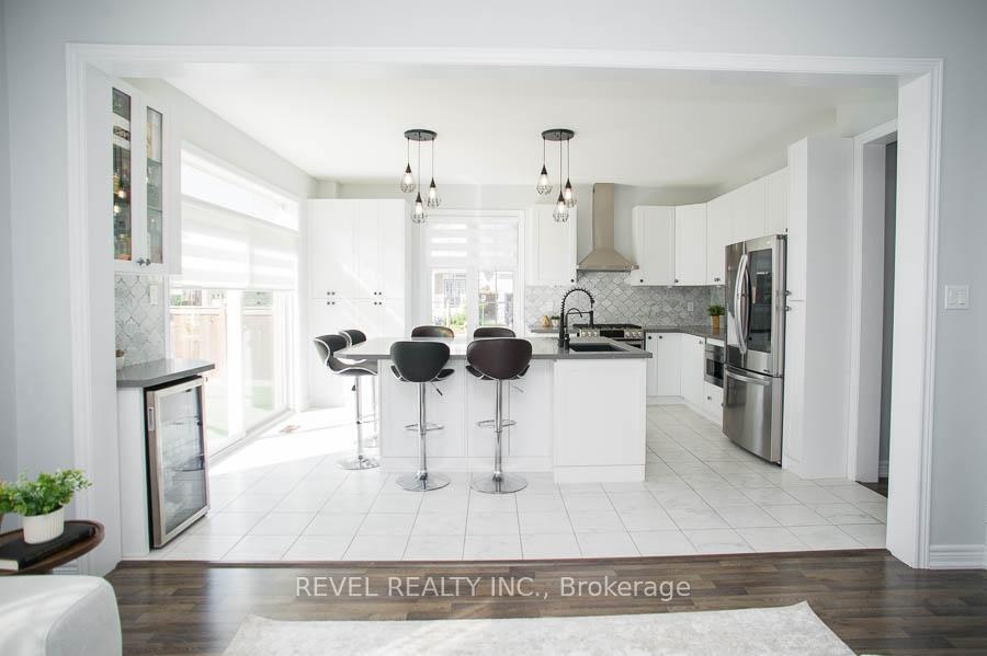 Welcome to 2 Attlebery Crescent in the desirable north end of Paris. This beautiful 2-storey home offers 2,340 sq. ft. of above grade living space with 4 bedrooms, 2.5 bathrooms, and a double car garage. The main floor features a spacious dining room with a feature wall, while the bright living room is open concept to the kitchen, creating the perfect space for family gatherings and entertaining. The chef's kitchen is a true highlight, complete with quartz countertops, white shaker-style cabinetry, a large centre island with seating, upgraded light fixtures, and sliding doors that open to the backyard. Cooking is elevated with premium stainless steel smart appliances, including a gas stove, smart fridge, dishwasher, and a built-in microwave drawer. A touch-activated faucet, pantry storage, built-in garbage and recycling, and a window bench with hidden storage add to the kitchen's thoughtful design. A mudroom with garage access and a stylish powder room complete the main floor.Upstairs, the primary suite boasts a double-door entrance, a large walk-in closet, and a luxurious 5-piece ensuite with double sinks, quartz counters, a soaker tub, and a rainfall shower. Three additional bedrooms, a 4-piece bath, and a convenient laundry room with a smart washer and dryer complete the second level. Outside, enjoy the covered wrap-around front porch, fully fenced yard, and back deck, ideal for relaxing or entertaining outdoors.