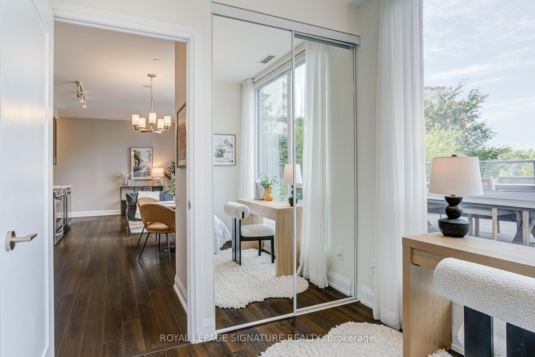 Exceptional Outdoor Living in a One-of-a-Kind Condo!Welcome to one of Argento by Tridels most coveted suites where upscale indoor living meets rare outdoor luxury. This beautifully appointed unit features an EXCEPTIONALLY RARE 700+ SQ.FT. PRIVATE TERRACE one of only a few in the entire bldg creating a seamless ext. of your living space. Ideal for entertaining, gardening, or relaxing. BBQs ALLOWED w/ NATURAL GAS LINE for grilling a true rarity in TO condos.Inside, enjoy 9' CEILINGS (only on 2nd & select upper flrs), floor-to-ceiling windows, and premium plank laminate flrs t/o. The sleek kitchen boasts quartz counters, SS appls, under-cab lighting, ceramic backsplash, b/in microwave vented to ext, SS DW & fridge. The open-concept living/dining area is flooded w/ natural light & flows directly to your massive terrace offering an indoor-outdoor lifestyle that rivals a luxury townhome.VIP PARKING & LOCKER ON P1, STEPS FROM ELEVATOR UNMATCHED CONVENIENCE!Argento offers top-tier amenities: 24-hr concierge & security, modern fitness centre, party/meeting rms, theatre rm, Rogers Ignite hi-speed internet, visitor prkg, individually metered utils, central bldg water filtration, and energy recovery ventilation for fresh air & energy efficiency.Located in the coveted Graydon Hall community mins to DVP, 401, 404, TTC, Don Mills subway, Fairview Mall, Shops at Don Mills, plus trails/parks incl. Graydon Hall Park, Betty Sutherland Trail, and Don River Trail Network. Access top-rated schools like Crestwood Prep, Bayview Glen, Seneca Hill Private, & nearby North York General Hospital. Surrounded by lush green space, upscale retail, and 1st-class amenities this is elevated condo living at its finest.