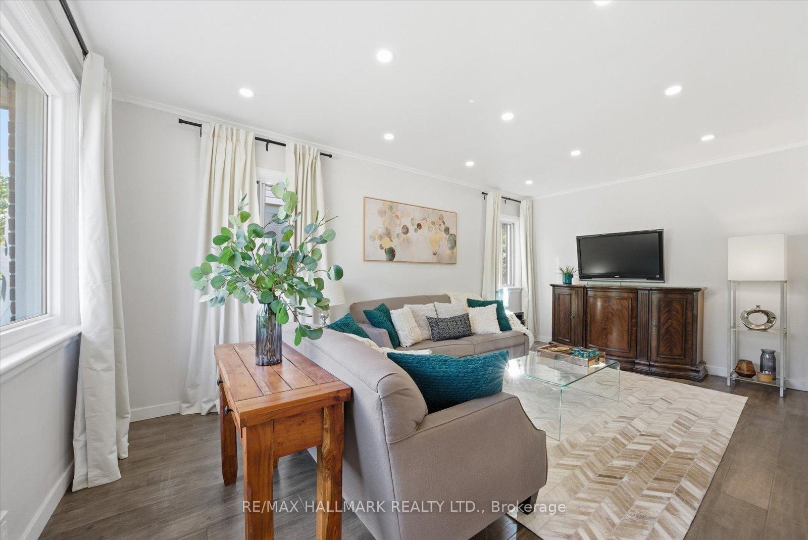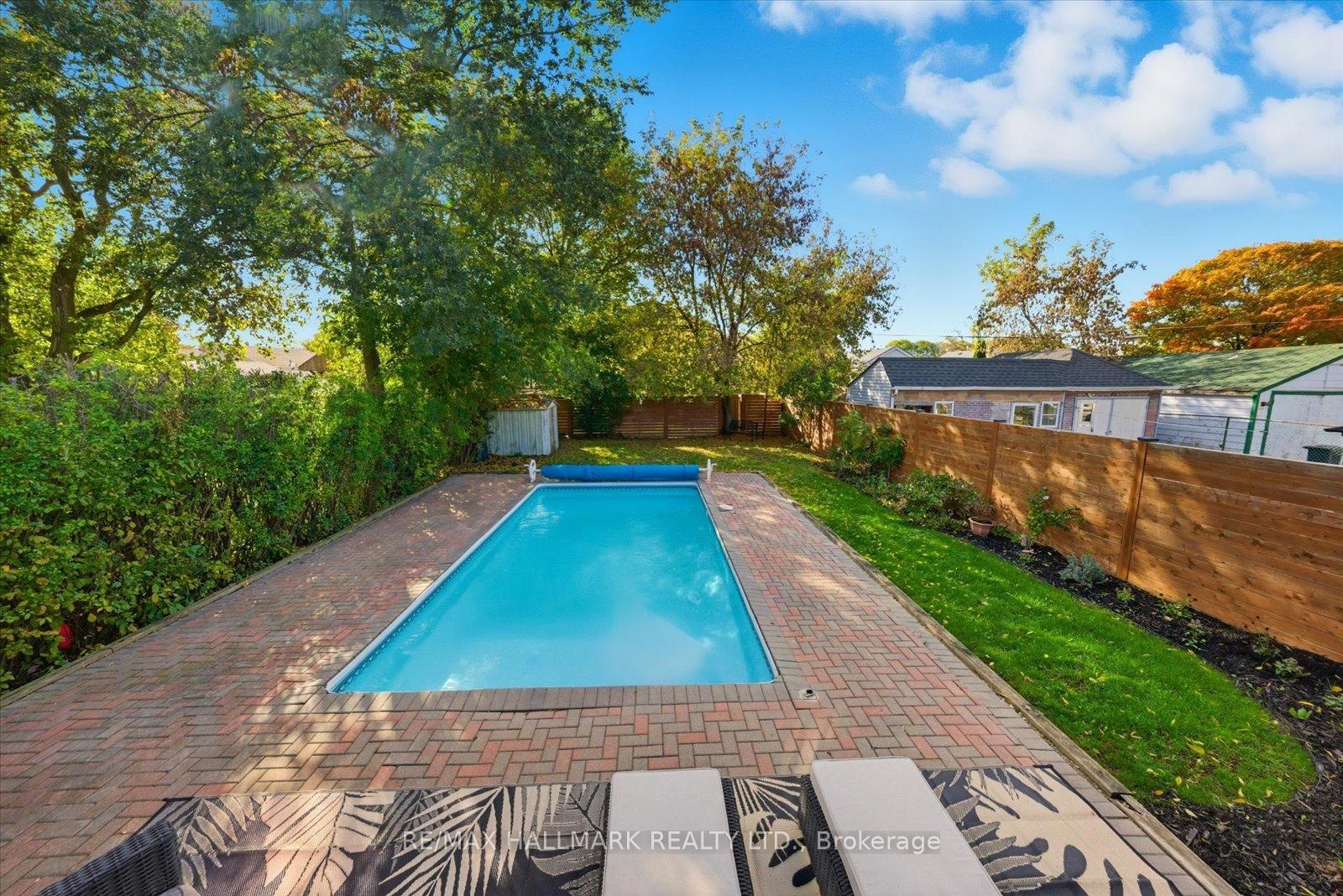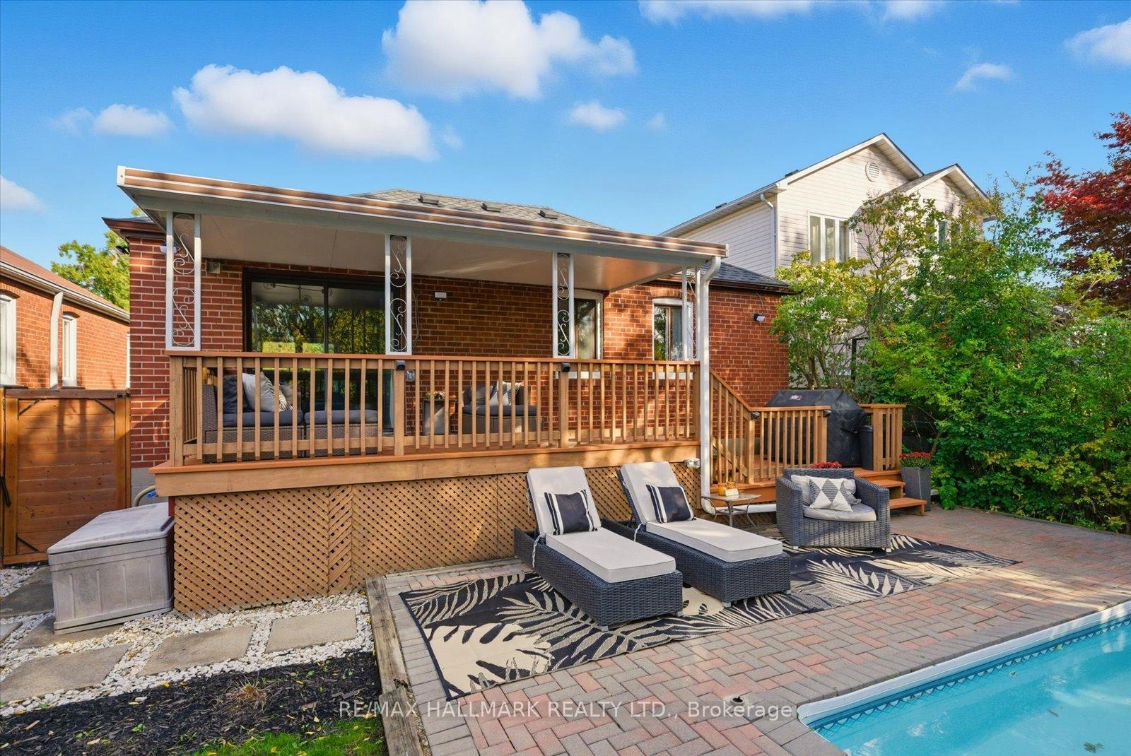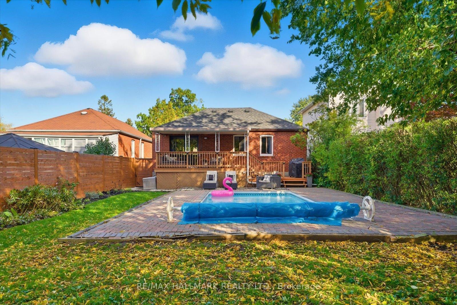 Discover this fabulous oversized all-brick bungalow offering a larger footprint than most homes in the neighbourhood. This well-maintained 2+1 bedroom home combines comfort, functionality, and modern updates throughout. Step into the inviting living room featuring a large picture window that fills the space with natural light and updated laminate flooring-perfect for relaxing or entertaining guests. The family-sized, modern kitchen offers quartz countertops, ample cabinetry with gold accent hardware, stainless steel appliances, and an adjoining dining area with a walk-out to a covered deck-ideal for year-round enjoyment. The main floor includes two bedrooms and a three-piece bathroom with a large walk-in shower. A separate side entrance leads to the lower level, featuring a spacious home office area for remote work, a cozy recreation room with a stunning stone wall-to-wall fireplace, a third bedroom perfect for guests or a growing teen, a two-piece bath, a large laundry area, and plenty of storage space. Outside, enjoy endless summer days in your private backyard oasis complete with a 12' x 24' in-ground pool and sunny western exposure. Conveniently located within walking distance to the GO Train, TTC, located in the Birchcliff Heights P.S. catchment for schools, shopping, and with easy access to downtown-this home truly has it all! The perfect opportunity for first-time buyers or a young family looking to grow in one of Cliffside's most desirable pockets.