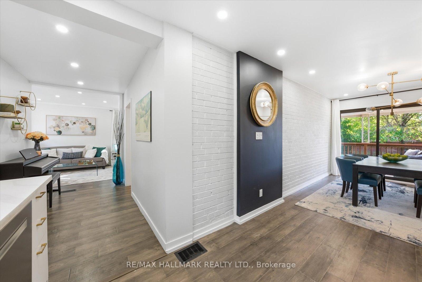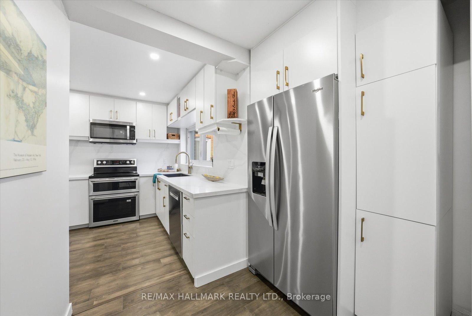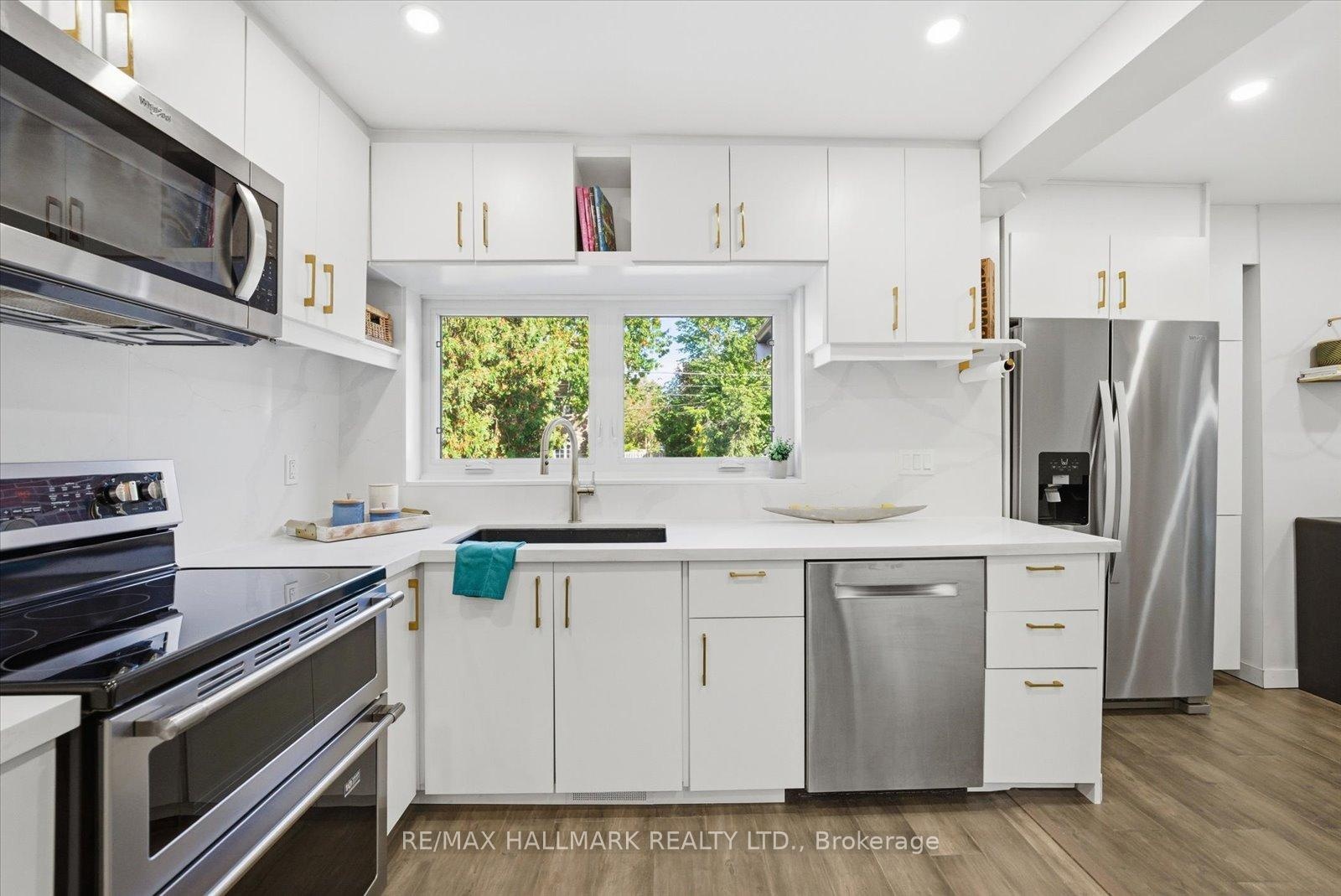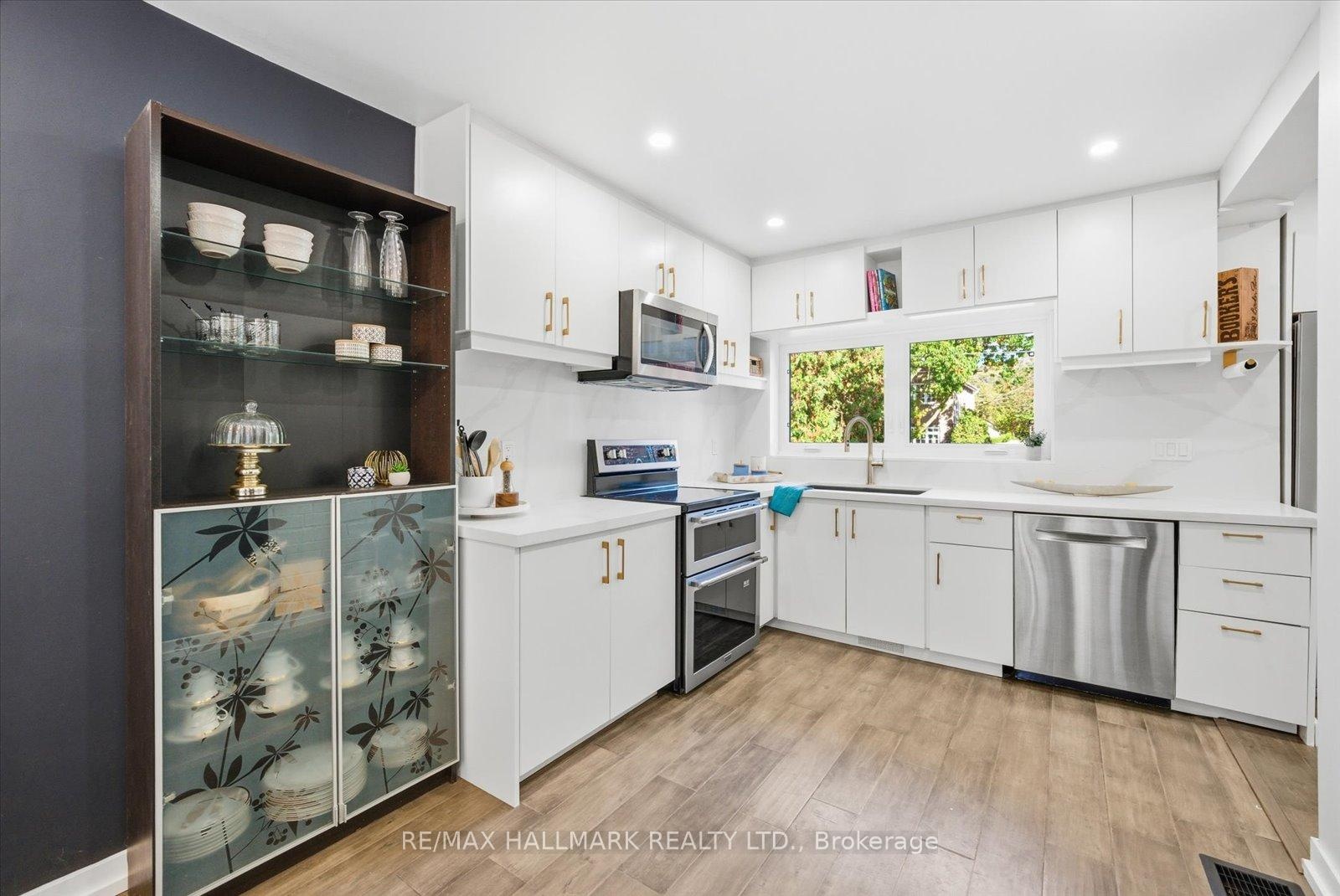 Discover this fabulous oversized all-brick bungalow offering a larger footprint than most homes in the neighbourhood. This well-maintained 2+1 bedroom home combines comfort, functionality, and modern updates throughout. Step into the inviting living room featuring a large picture window that fills the space with natural light and updated laminate flooring-perfect for relaxing or entertaining guests. The family-sized, modern kitchen offers quartz countertops, ample cabinetry with gold accent hardware, stainless steel appliances, and an adjoining dining area with a walk-out to a covered deck-ideal for year-round enjoyment. The main floor includes two bedrooms and a three-piece bathroom with a large walk-in shower. A separate side entrance leads to the lower level, featuring a spacious home office area for remote work, a cozy recreation room with a stunning stone wall-to-wall fireplace, a third bedroom perfect for guests or a growing teen, a two-piece bath, a large laundry area, and plenty of storage space. Outside, enjoy endless summer days in your private backyard oasis complete with a 12' x 24' in-ground pool and sunny western exposure. Conveniently located within walking distance to the GO Train, TTC, located in the Birchcliff Heights P.S. catchment for schools, shopping, and with easy access to downtown-this home truly has it all! The perfect opportunity for first-time buyers or a young family looking to grow in one of Cliffside's most desirable pockets.