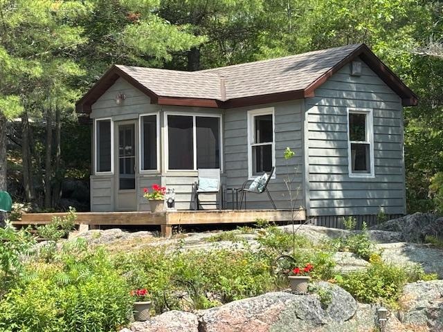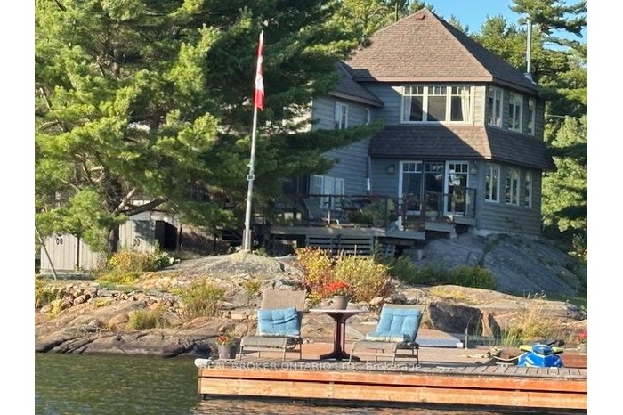 This property is a one-of-a-kind, unique 38-acre, approximately 860 ft of private shoreline paradise. The estate boasts a beautiful three-bedroom century home with a newer addition, crafted in Georgian Bay design and architecture, constructed with bright windows in every room. The house is situated on a pointe, providing breathtaking views of the water from every room. Sun all day and night sky all evening. The impressive year-round family main house is complemented by a two-bedroom cabin with a two-piece bath and an office sleeper. Both tastefully finished with pine walls and ceilings. This listing renders all chattels and furnishings, conveniently turnkey and move-in. Modern stainless steel Jenn-Air appliances, with a down-draft propane cook top, and striking granite countertops. Fridge, stove, oven, dishwasher, microwave, washer dryer and additional fridge. The in-floor propane heating operates smoothly year-round with a new boiler and glycol lines. There is passive solar lighting throughout the garden and natural grounds. The additional buildings include a tool shed, wood shed, tin shed, and a 40 x 24 Dura shelter, to provide for all your storage needs. This remarkable property delivers the most in remote waterfront living. The two docks provide safe and easy mooring for both small and large vessels, offering deep-water access to pristine Georgian Bay, making them ideal for travel and small vessel launching. The 38 acres showcase the ultimate in cottage life, featuring fishing, boating, water sports, bird and wildlife watching, wilderness trekking, and foraging. Off-road recreational activities are enhanced by exclusive access to approximately 100 acres of adjoining forest crown land. This is a rare Georgian Bay waterfront estate that lavishes in private, peaceful waterfront living, with the convenience of year-round road access. There are no accurate comparisons. To truly appreciate the spectacular and serene nature of the property, it must be experienced.