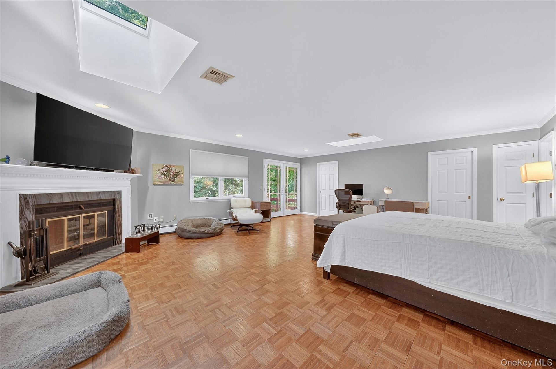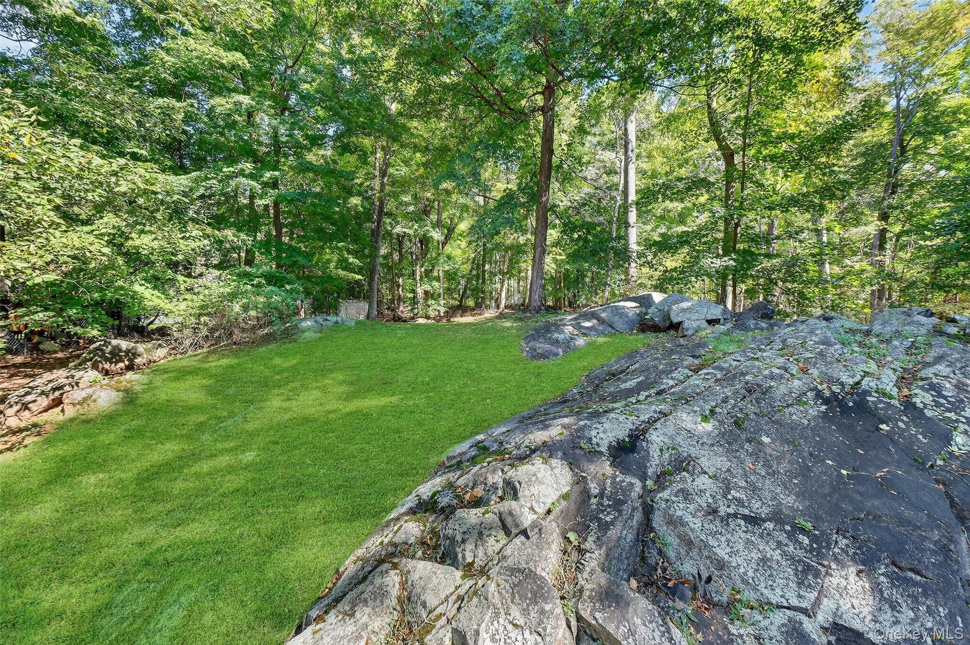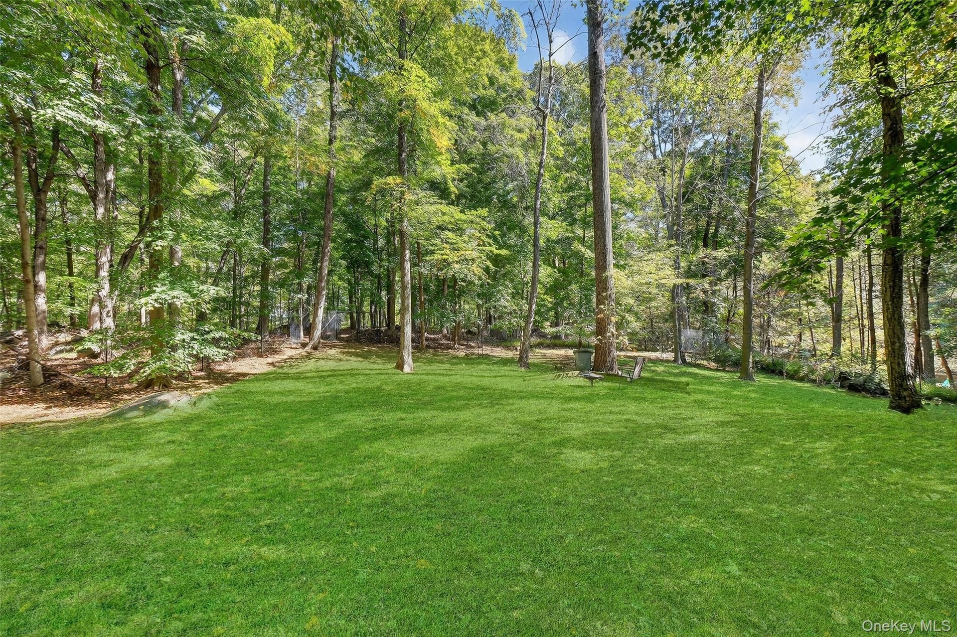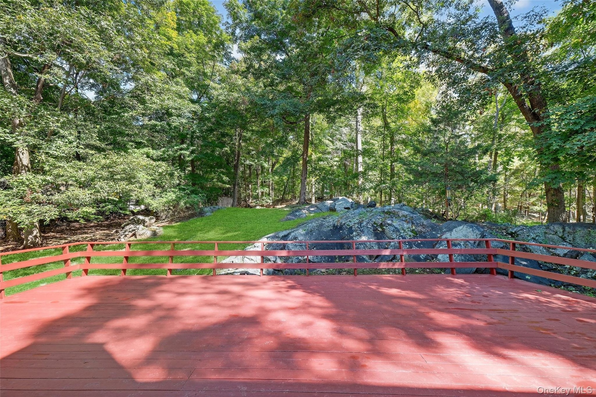 This impressive 3,748 sq. ft. contemporary home is set on 3.2 wooded acres, offering the perfect blend of neighborhood living and total privacy. The main level welcomes you with a spacious entry foyer, family room with skylights, custom windows, and a striking stone wood-burning fireplace. A step-down living room with fireplace and a step-up formal dining room with French doors to an oversized deck provide wonderful flow for entertaining. The expansive kitchen features a gas cooktop island, double Wolf wall ovens, microwave, stainless steel refrigerator, butler’s pantry, and large dining area with French doors to the deck. A private home office with deck access, den, full bath, and laundry complete the main floor. Upstairs, the enormous primary suite boasts a fireplace, skylight, Juliet balcony, two walk-in closets, and a luxurious bath with jetted tub, shower, double sinks, and bidet. Three additional spacious bedrooms share a beautifully updated full bath with custom tile shower. A large open balcony overlooks the entry foyer. Additional features include a full unfinished basement, 2-car garage, fenced yard with 4 access points, new doors, central vacuum, whole-house natural gas generator with automatic switchover, new driveway, and new central air conditioning. Surrounded by mature trees and just 3 miles to Metro-North, this home combines comfort, updates, and convenience in a serene setting. Enjoy year-round activities along the Hudson River, including concerts, the scenic River Walk, golf, hiking, biking, fine dining, shopping, and live theater.