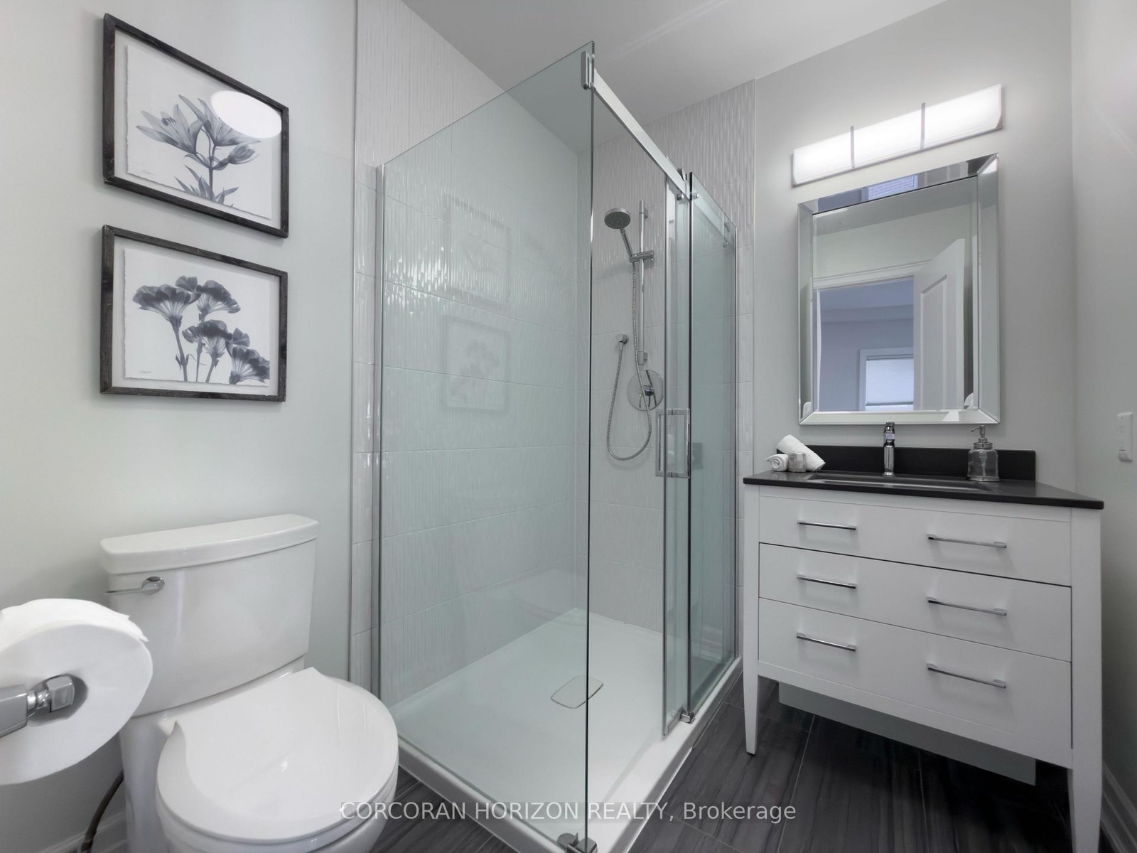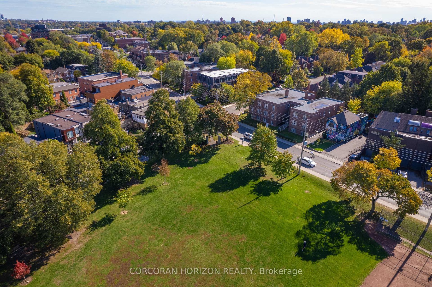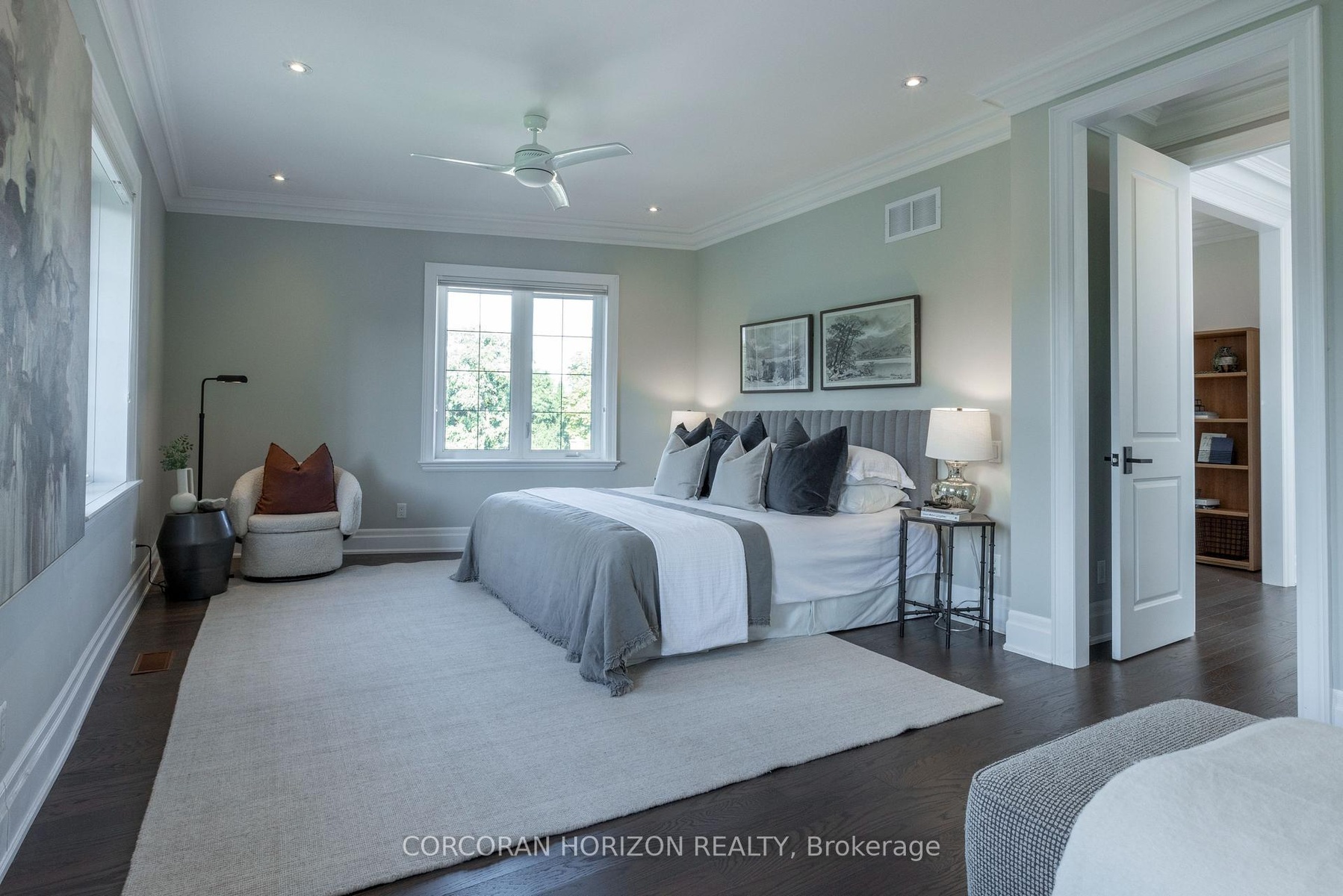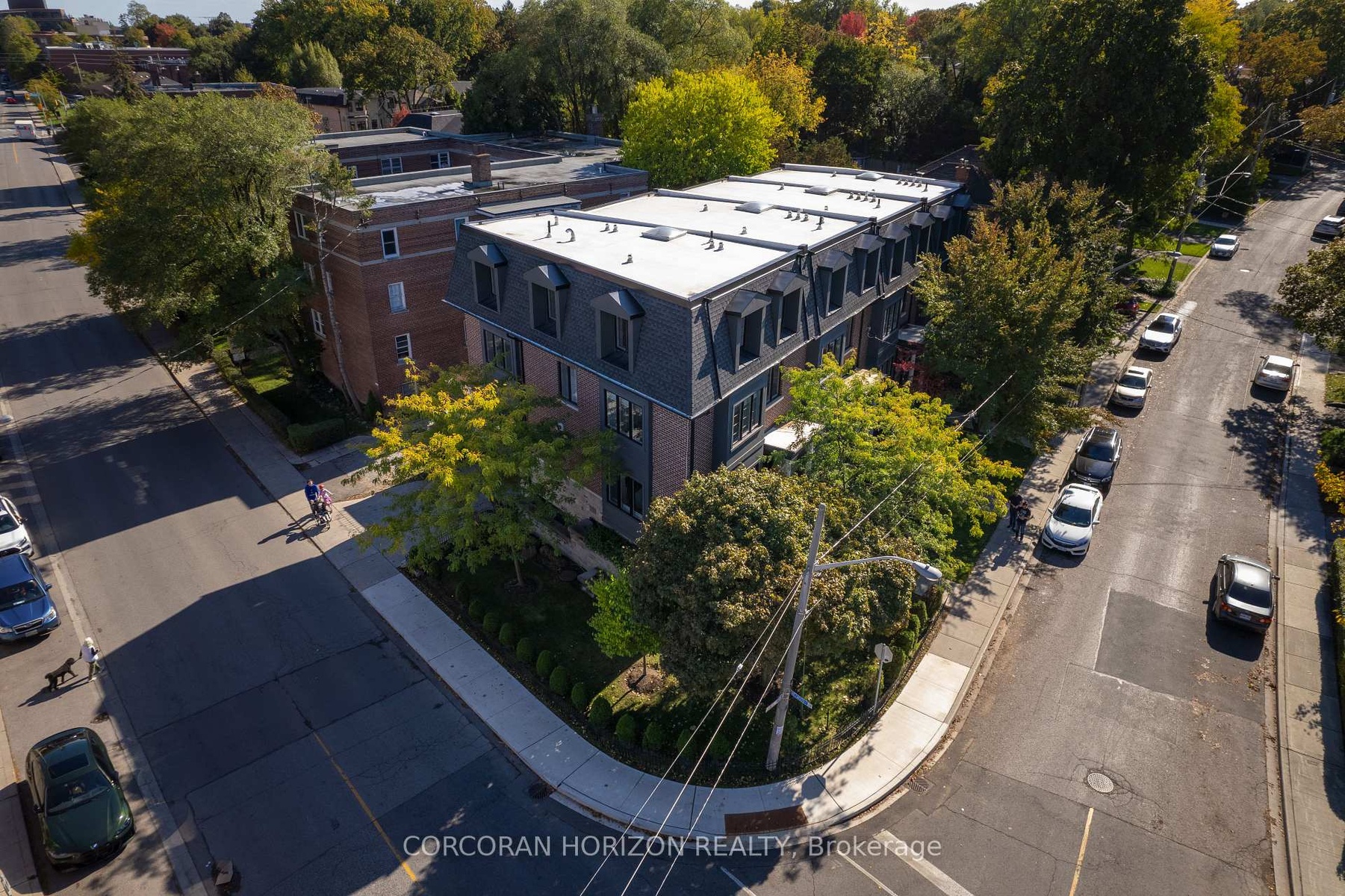 Elegant End-Unit Freehold Townhome in Prime Leaside. Perfectly positioned across from Trace Manes Park, the Leaside Library, and the Community Centre, this stunning end-unit freehold townhome offers over four levels of impeccably designed living in one of Toronto's most coveted neighbourhoods. Steps to the boutiques, cafés, and restaurants of Bayview Avenue, this home combines timeless sophistication with the ease of modern, low-maintenance living-ideal for professionals or families seeking space, style, and convenience. The open-concept main floor is bright, elegant, and exceptionally functional. The chef's kitchen features Thermador stainless steel appliances, a gas range, a massive granite centre island, a Parisian-style banquette for morning coffee or casual dining and French doors opening onto the deck. Thoughtfully designed custom built-ins throughout the kitchen, dining, and living areas offer abundant concealed storage while maintaining a clean, contemporary aesthetic. The marble gas fireplace anchors the main floor in warmth and charm. A chic powder room completes the main level. Upstairs, the second floor features three bright, spacious bedrooms, one with a modern 3-piece ensuite. The large family bath with double marble vanity, a full laundry room and two linen closets round out this level. The third floor is devoted to the luxurious primary suite, with two walk-in closets, a serene den or office, and a spa-inspired ensuite with two marble vanities, a glass shower and freestanding tub. Over 900sf of luxury all to yourself! The finished lower level includes a large recreation room, generous storage areas, and an immaculate 1.5-car garage equipped with a 240V EV charging outlet, built-in bicycle racks, and automatic door. No more maintenance, landscaping & snow-removal included in low monthly fee. Beautifully appointed, intelligently designed, and located in the heart of Leaside, this home truly offers it all!