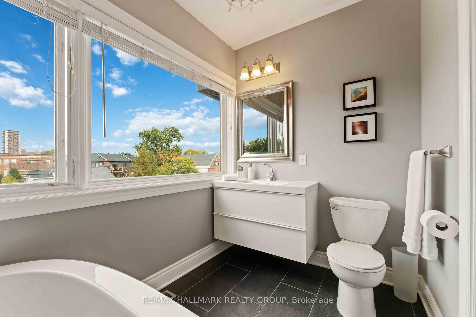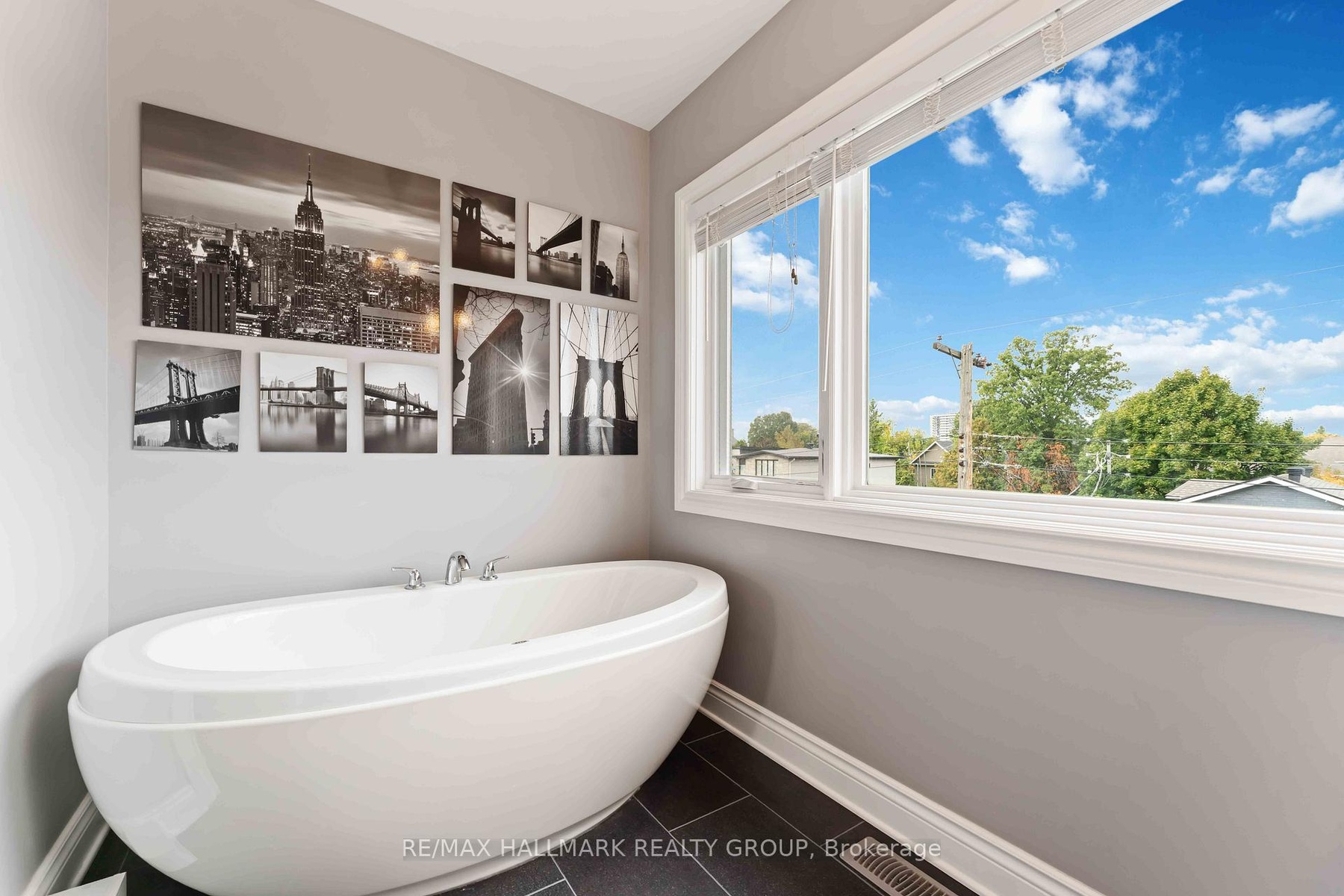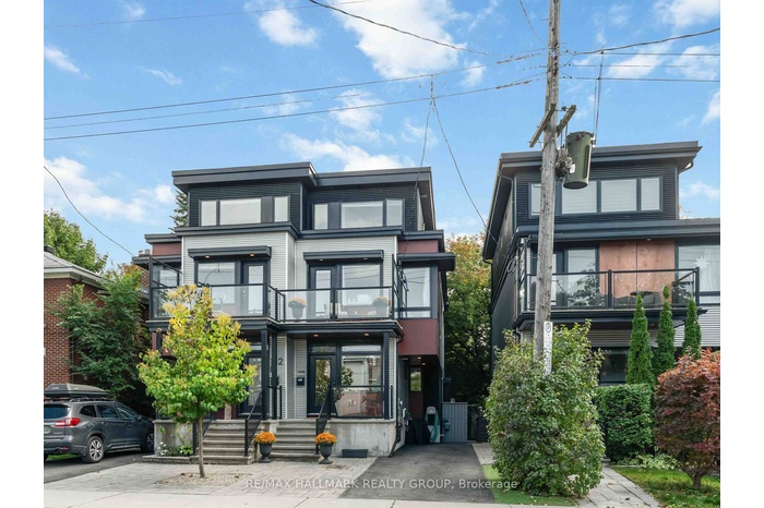 OPEN HOUSE, Sunday, October 26th, 2-4 p.m. Award-Winning Hamel Designed Semi-Detached. This stunning sun filled 3-storey semi-detached blends modern design with urban convenience, just 10 minutes to downtown and an 8-minute walk to Tremblay LRT/VIA Rail. The open-concept main level with hardwood floors features 9' ceilings, a chef's kitchen with granite counters, undermount sink and breakfast bar. Kitchen opens to the living room with gas fireplace and door to the private back yard. The second floor offers a master-sized 2nd bedroom, 3rd bedroom, a full bath plus a bright den/workout room with balcony and view. The top level features a luxurious primary suite, spa-inspired ensuite, and a covered patio retreat. The versatile lower level includes a family room (or 4th bedroom), full bath, and bar ideal for entertaining or future apartment conversion. Unbeatable location: steps to the Overbrook Community Center (programs, Sens Rink of Dreams, sports fields, dog park), minutes to shopping and the Rideau Sports Centre. Only 2 blocks to the Rideau River trails and a 20-minute walk to the University of Ottawa. An urban lifestyle gem by an award-winning designer.