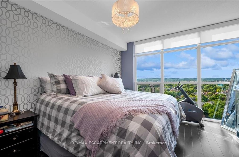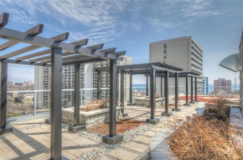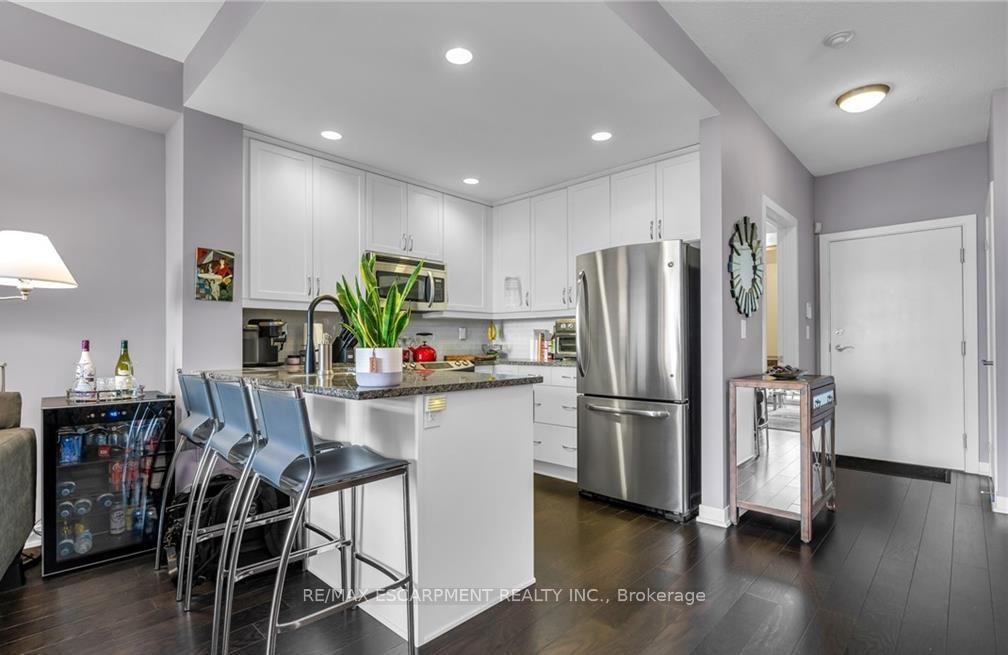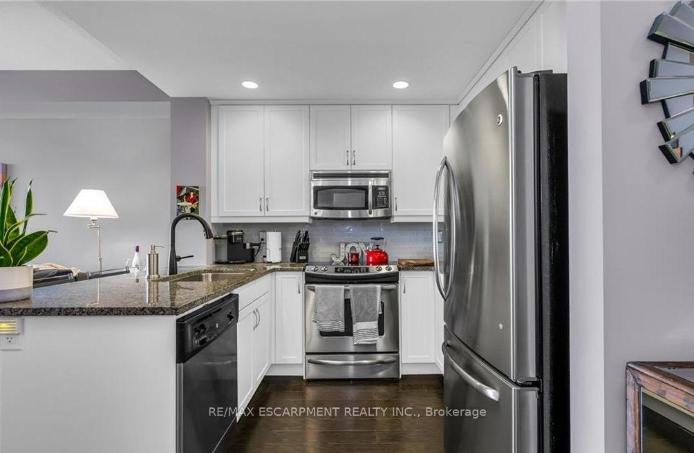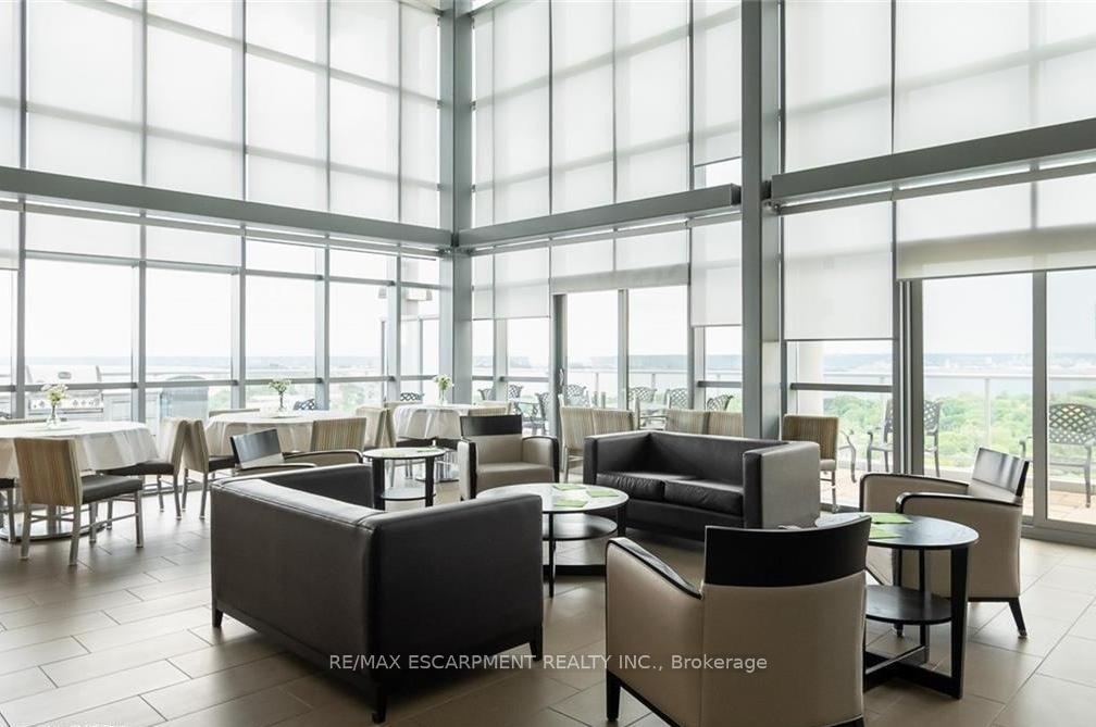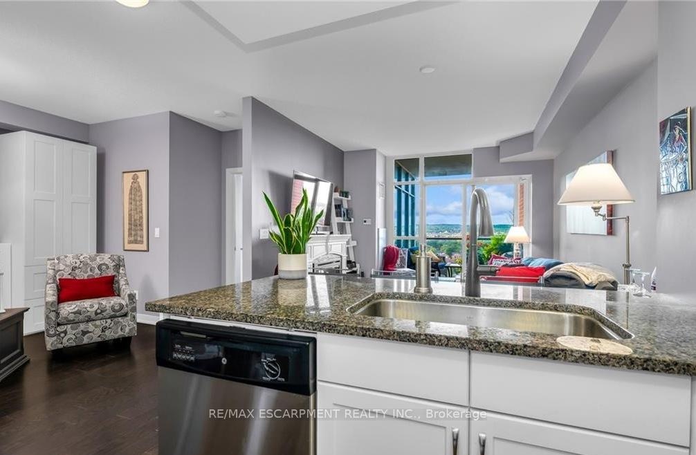 Welcome to the highly sought after Strata in Downtown Burlington! This luxury condominium building has all that you desire within walking distance to downtown shopping, waterfront, beach, Mapleview Mall and quick access to hwys. This 1 bedroom, 1 bathroom unit has stunning views of the escarpment and a large recessed & covered balcony. Features include: Open concept kitchen with white cabinetry, tile backsplash and granite countertops open to dining room and light filled living room. Large bedroom with walk-in closet. 4 pc. bathroom & in-suite laundry. Building Amenities: Roof Top Pool, Fitness Centre, 2 Outstanding Party Rooms with Lake Views, Pilates/Yoga Centre, Zen Lounge, Sun Tan Deck, Guest Suites, Billiards Room, Visitor Parking and Concierge. Water & Gas included in lease price. A+ tenant.