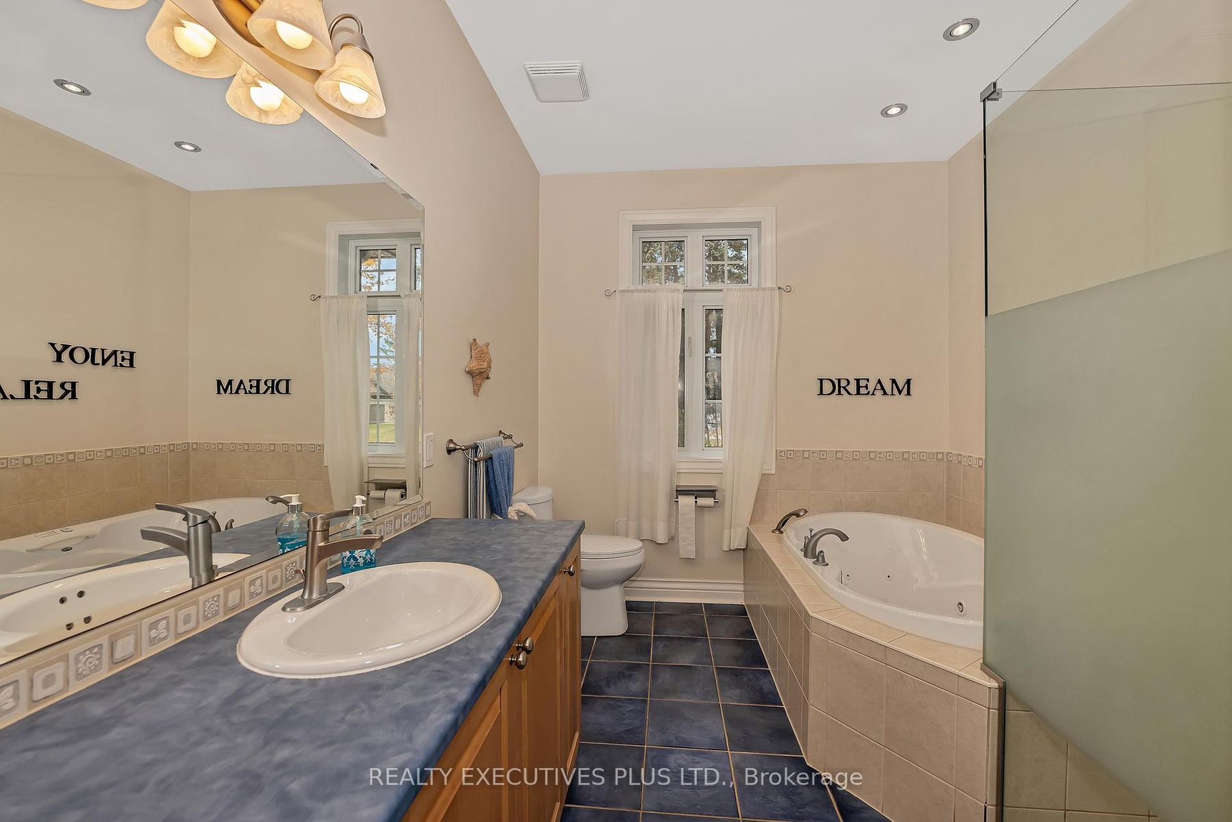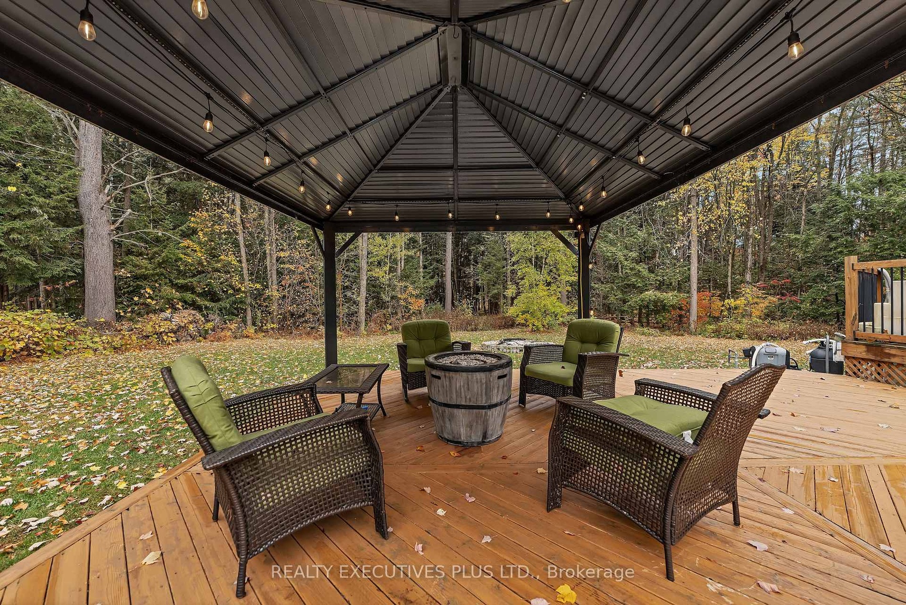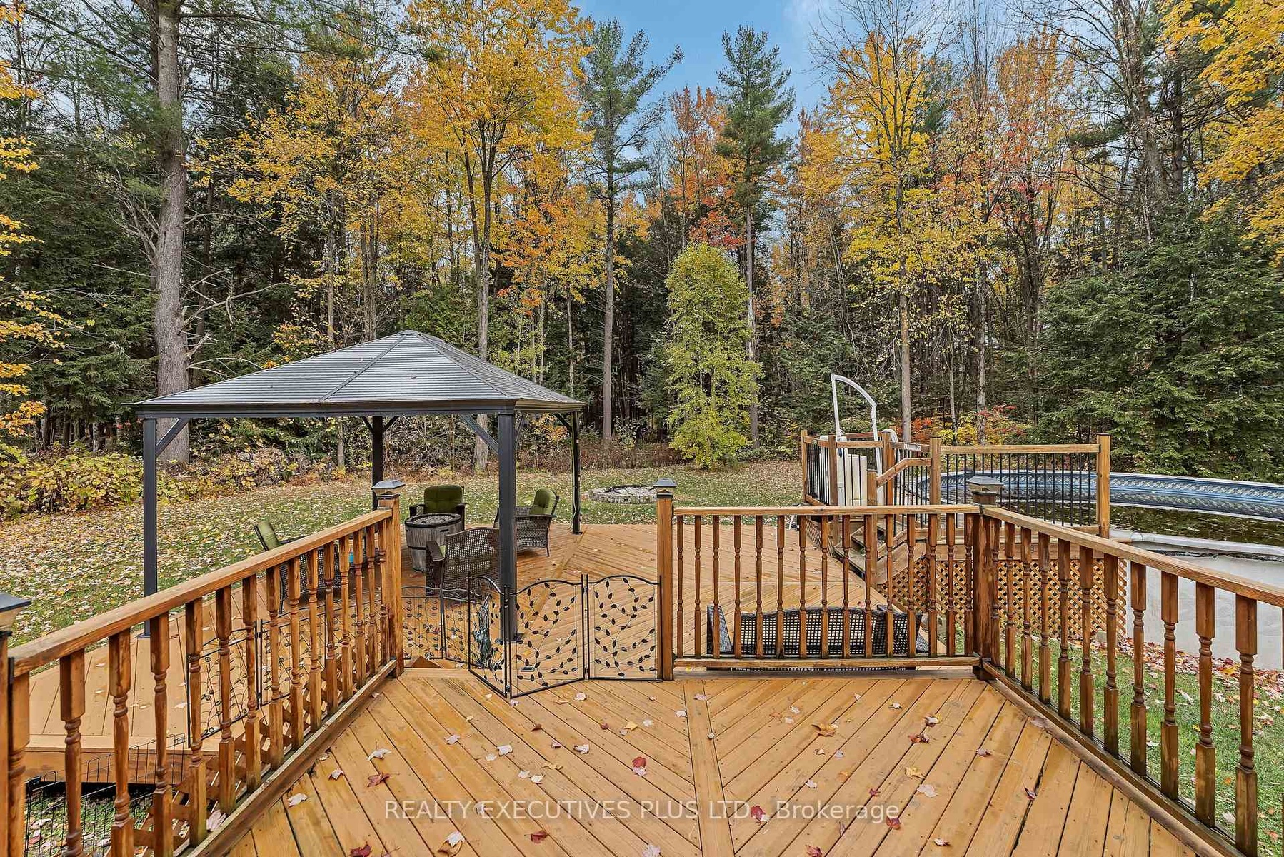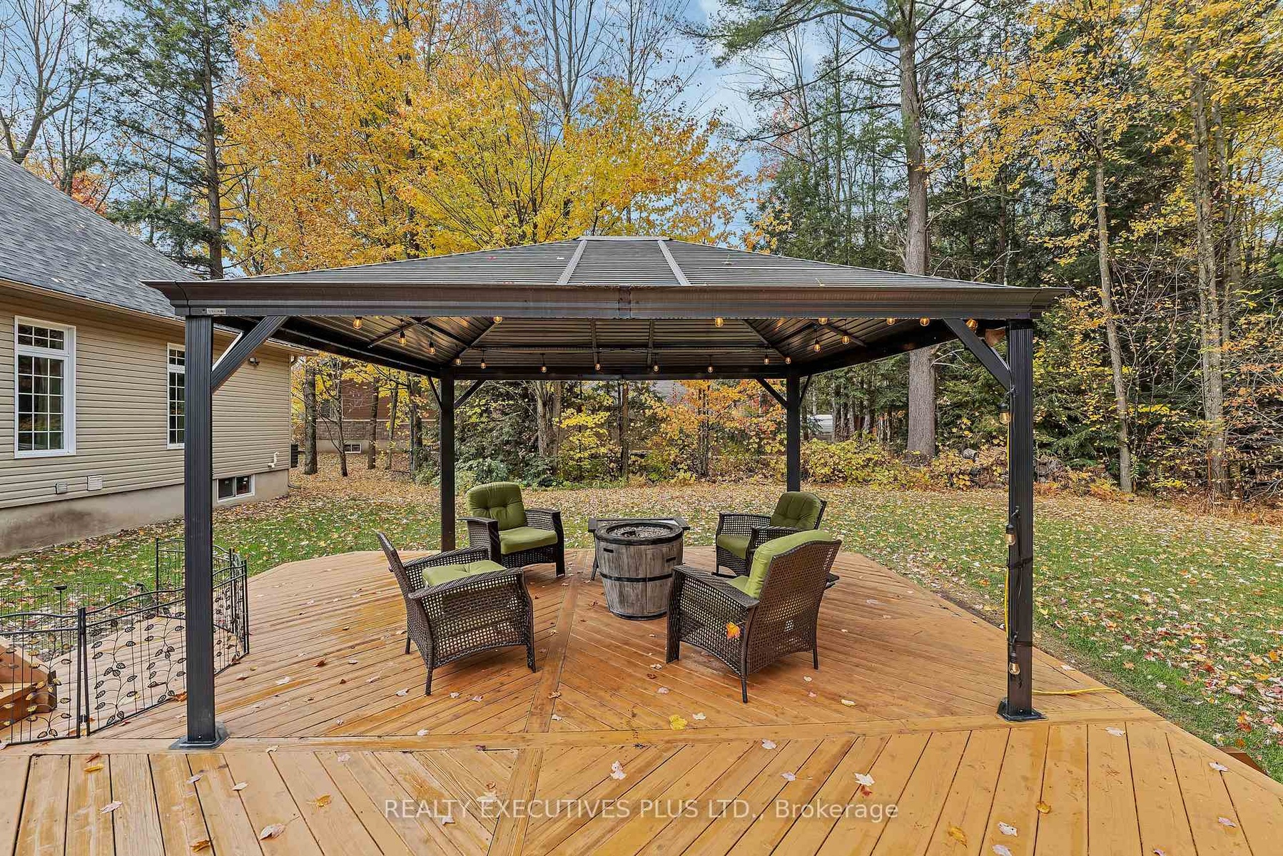 Welcome to this beautiful 3-bedroom bungalow nestled in a desirable executive enclave just minutes from Rockland. Perfectly positioned on over three-quarters of an acre, this quality-built home offers an exceptional blend of privacy, comfort, and timeless craftsmanship. Step inside to discover a bright, open layout featuring 9-foot ceilings and elegant hardwood and ceramic flooring throughout the main living areas. The spacious kitchen and inviting living room create a warm and welcoming atmosphere, highlighted by large windows that fill the home with natural light and offer peaceful views of the private, wooded backyard. The formal dining room, currently used as an office, provides flexibility to suit your lifestyle. The lower level expands your living space with a generous family room and a modern three-piece bathroom ideal for movie nights, entertaining guests, or relaxing with family. Step outside to a stunning two-tier deck complete with a gazebo area, perfect for outdoor dining or enjoying quiet evenings surrounded by nature.Built with exceptional attention to detail, this home features 2x8 framing with an impressive R3000 insulation rating, insulated interior walls with solid-core doors for superior soundproofing, and a 10-foot foundation offering high basement ceilings. Recent updates include roof shingles replaced in 2021 with a 50-year lifetime rating and covered eavestroughs. A 200-amp electrical service with a GenerLink adapter adds peace of mind and convenience.If you've been searching for a home that combines quality construction, serene surroundings, and everyday comfort, look no further-this property has it all. Book your private showing today and experience the lifestyle this exceptional home has to offer.