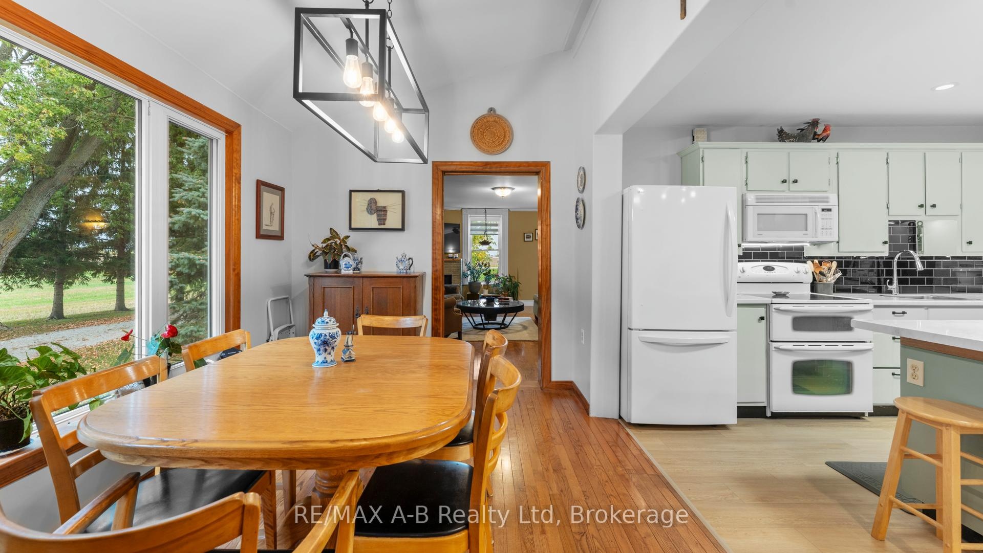 Discover the perfect blend of country charm and modern comfort on this picturesque 1.23-acre property just minutes from St. Marys. This well-maintained home offers plenty of space for a growing or active family, along with great outdoor features for hobbyists or anyone who loves the quiet of rural living. Step inside through the attached one-car garage into a convenient mud room featuring a large closet and tucked-away storage area - ideal for keeping everything organized. The bright, open-concept eat-in kitchen welcomes you with a warm and inviting atmosphere, highlighted by a cozy wood stove that adds rustic charm and extra warmth through the cooler months. The main floor also includes a comfortable living room with a propane fireplace, perfect for relaxing evenings, plus a main floor bedroom, and laundry area for everyday convenience. Upstairs, you'll find three spacious bedrooms and a two-piece bathroom, providing plenty of room for the whole family. Outside, the property features a fully insulated shop with an attached lean-to, offering great space for tools, hobbies, or extra storage. A maple syrup shack adds a unique touch to the property - it will remain with the sale, though all syrup-making equipment will be removed. This beautiful country property sits on a paved road and offers the peace of rural living with the convenience of easy access to nearby amenities. If you've been dreaming of space, comfort, and country charm - this place could be your perfect place to call home.