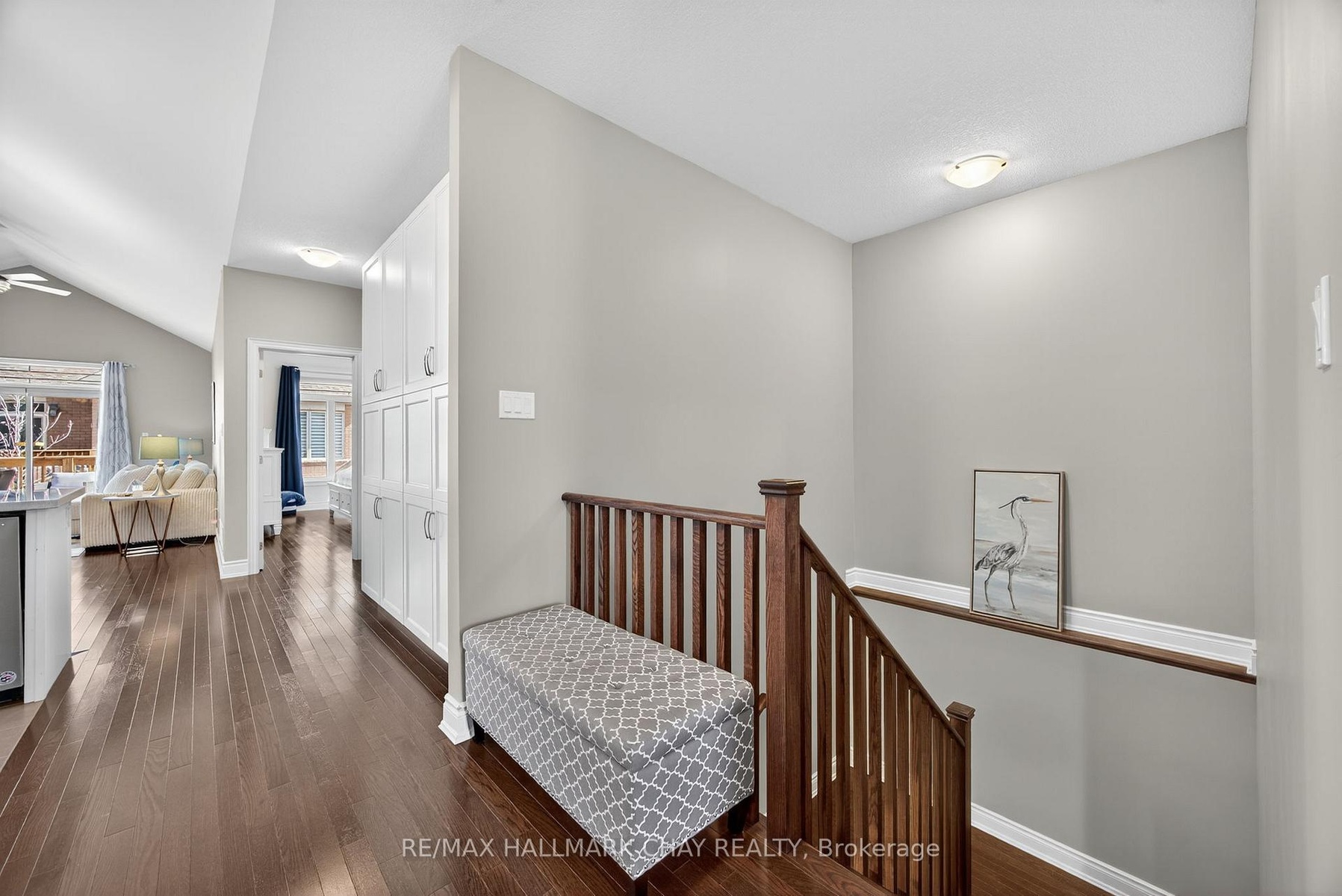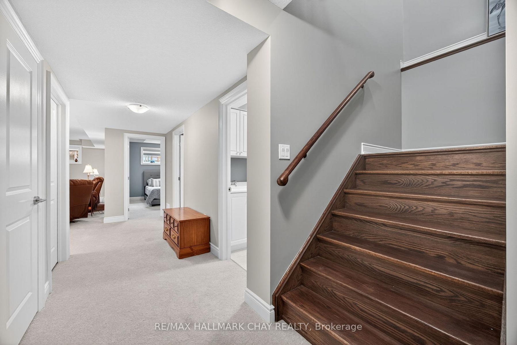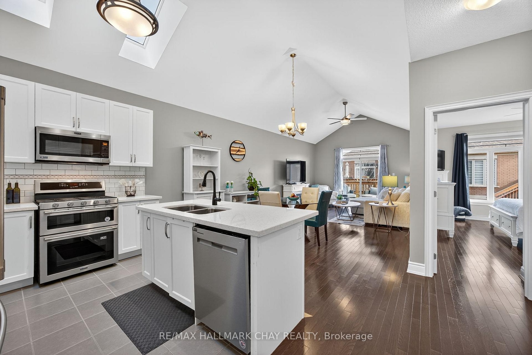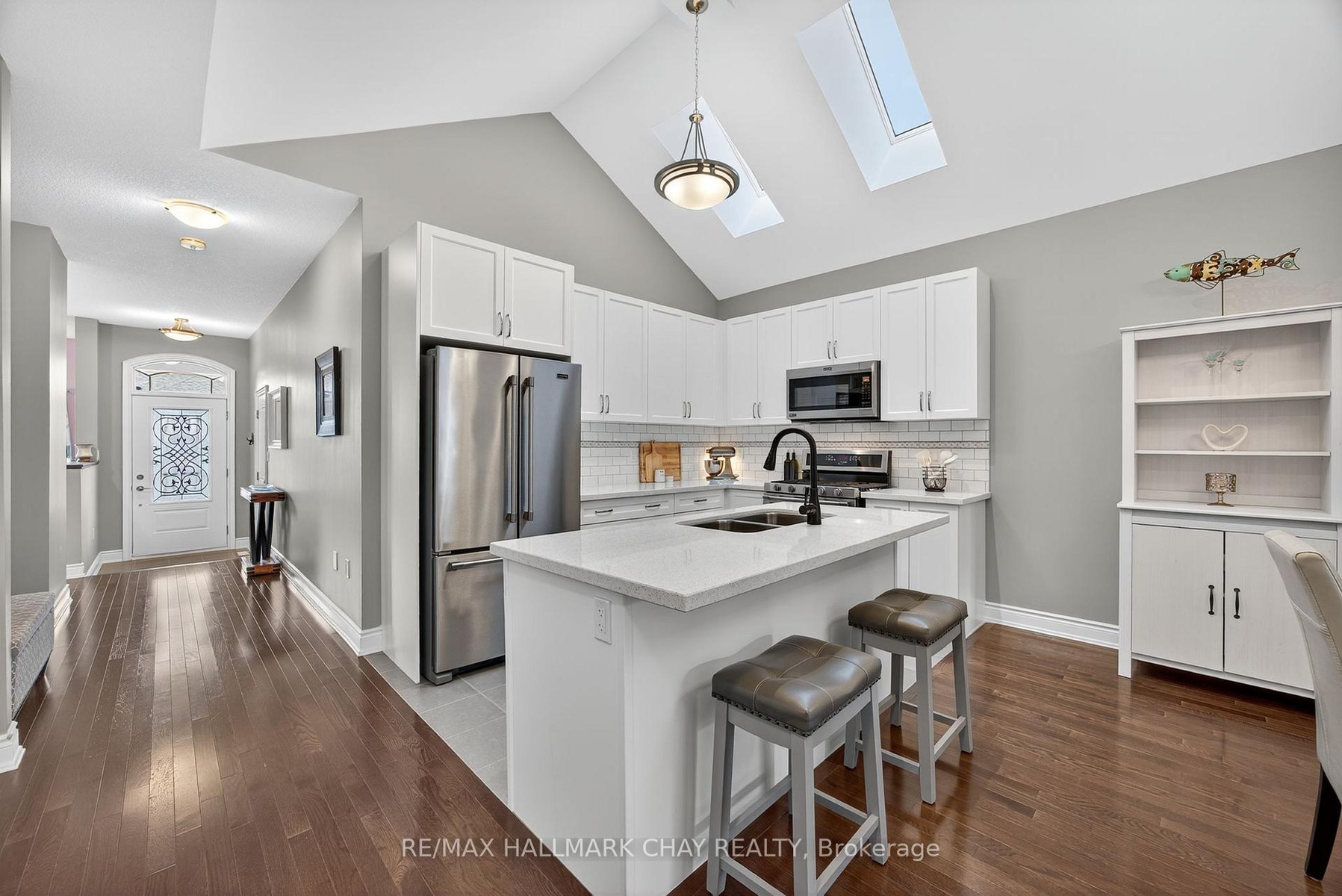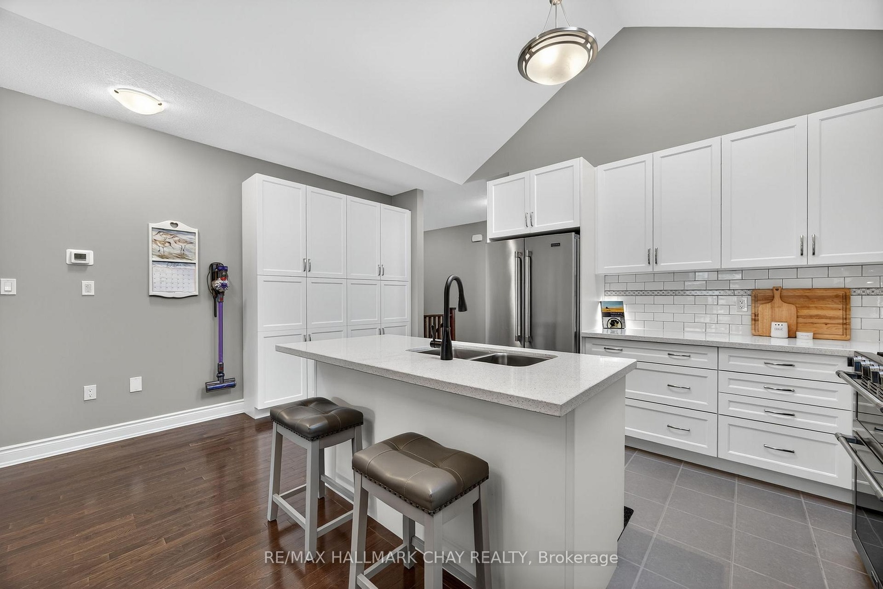 Stunning Bungalow Townhome in the luxurious adult lifestyle community of Briar Hill! This "like new" home has been immaculately maintained and updated by the original owner. The bright, open-concept main floor features soaring vaulted ceilings, two skylights, and an oversized patio door that fills the space with natural light. Enjoy hardwood floors and an upgraded trim package throughout the main level, including the spacious primary bedroom. The modern white kitchen boasts quartz countertops, a large island, and an upgraded pantry wall offering ample storage. The primary suite includes two closets and a private ensuite bathroom. A versatile front den provides flexibility to suit your lifestyle-perfect as an office, gym, sitting room, or second bedroom. The garage offers both inside access and direct backyard access for maximum convenience. The peaceful, private backyard features a raised deck and lower interlocked patio, ideal for entertaining or relaxing. Fully finished basement includes oversized above grade windows, guest room retreat, a spa-inspired bathroom with an upgraded Jacuzzi tub, a cozy rec room with a gas fireplace, a full-sized laundry room with a sink, and a massive storage area. Nat Gas BBQ Hook Up. Custom Window Coverings. Garage Door Opener. Professionally Painted. Located in a scenic, quiet community surrounded by golf courses and rolling hills, this property combines comfort, convenience, and an active lifestyle. Condo fees cover exterior maintenance including windows, roof, driveway, snow removal, and lawn care.