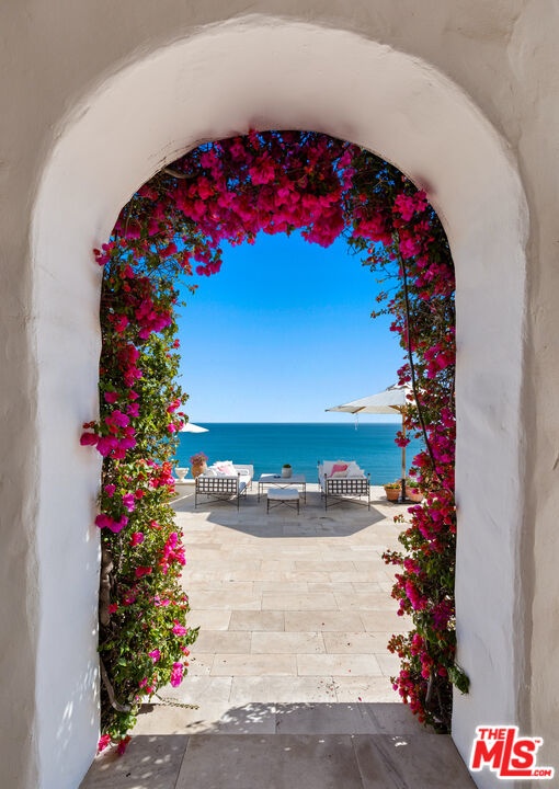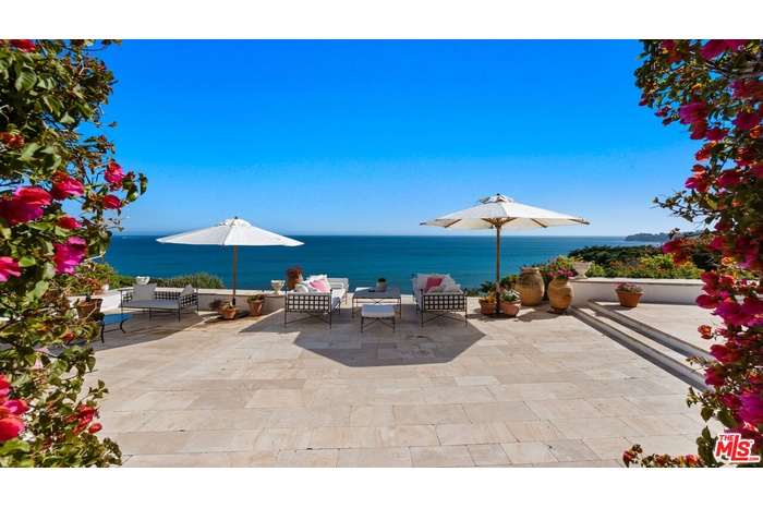 A once in a generation oceanfront estate located in Paradise Cove with its own private path to the beach. A winding private gated driveway leads to the main house through a grove of a hundred mature olive trees. Designed by Marc Appleton, the home is reminiscent of a home on the coast of Mykonos. With breathtaking scale, thick plaster walls and beautiful outdoor spaces, the home is designed into a cluster of separate volumes that resemble a small village. The compound sits on the edge of the sea with flat, domed, and vaulted roofs punctuated by tall chimneys. Featuring a stunning living room, media room/den, formal dining, gourmet kitchen, all overlooking unobstructed head-on views of the Pacific Ocean. The primary suite has a sitting room with fireplace and luxurious baths, closets, and its own private terrace. There are three additional bedrooms in the main house, all with wood burning fireplaces and rooms interconnected through breezeways and arbors. There is a beautiful guest house and additional staff quarters, a full regulation tennis court and resort-like swimming pool. Take a walk down your private pathway to the most stunning beach with its own beach bar on the sand. A truly once in a lifetime opportunity to acquire one of Paradise Cove's most spectacular properties. Shown to prequalified clients only.