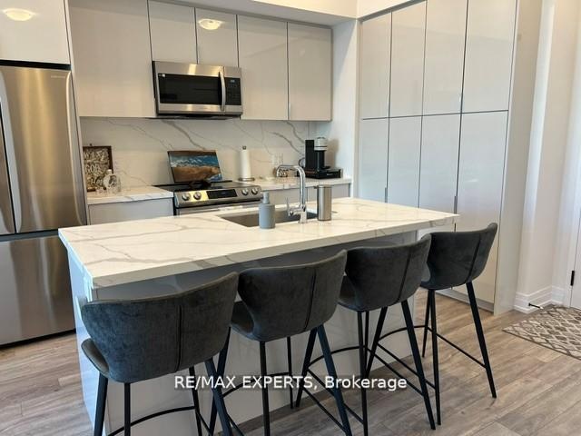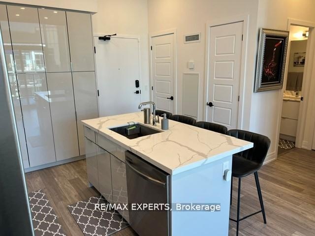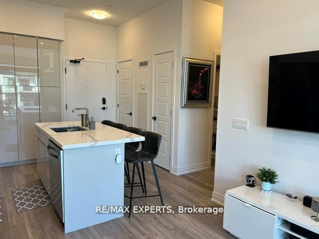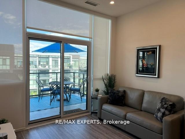 Welcome to resort-style condo living! This beautifully designed, fully upgraded and highly sought after courtyard-facing, 4th Floor, 1-bedroom suite offers a seamless blend of luxury, comfort and style. step outside to your private terrace and take in the beauty of the courtyard and unobstructed views of nature and the lake, while enjoying the shade offered by the East exposure. The open-concept layout is framed by soaring 10ft ceilings and floor-to-ceiling windows, flooding the space with natural light. The sleek and modern kitchen features a large bar island, ideal for cooking, dining, or hosting. The suite is improved with pot lights, vinyl flooring throughout, closet organizers, black out curtains, designer light fixtures and much more! As a High Point resident, you'll enjoy exclusive access to world-class amenities: a serene courtyard, outdoor pool, hot tub, fire pit, party room, and a fully equipped fitness center. A few steps from the Lake Club, Beach Club, Marina, and a vibrant waterfront boardwalk filled with restaurants, shops, and seasonal events. For outdoor enthusiasts, the resort also offers The Nest golf course, nature preserve trails, tennis, basketball, beach volleyball, water sports, and winter skating. Experience the ultimate resort living right here, in this stunning unit!