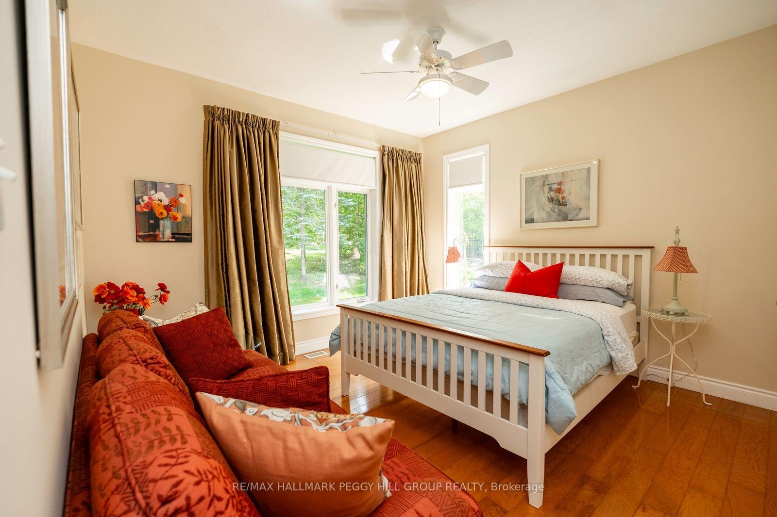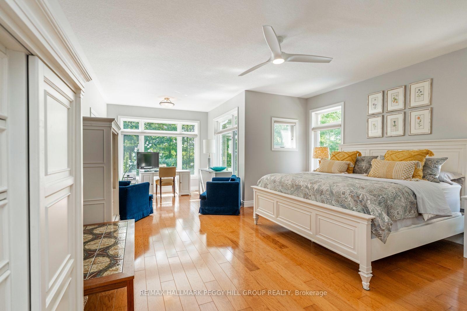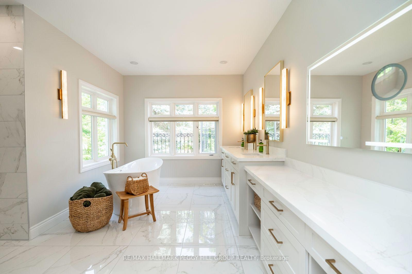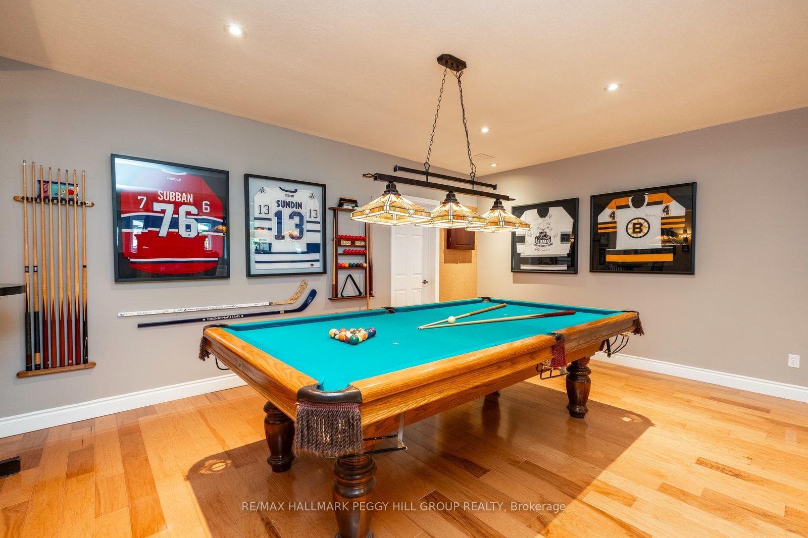 8,000 + SQ FT ESTATE ON 1.33 ACRES WITH RESORT STYLE BACKYARD, POOL, HOT TUB, TRIPLE CAR GARAGE & ADDITIONAL LIVING QUARTERS! Situated in one of Oro-Medonte's most prestigious enclaves, this bungalow offers over 8,000 sq ft on 1.33 acres of landscaped grounds with a stately stone exterior. A long driveway provides parking for 16, complemented by a heated 3-car garage with a lift for 4 car capacity and an EV charger. Soaring ceilings, refined craftsmanship and designer finishes define the home. The chef's kitchen impresses with solid wood cabinetry, a massive island, premium appliances, including a $24k Thermador range, while a breakfast nook captures serene forest views. A dining room with a custom-built-in cabinet is perfect for entertaining, and the living room features a stone fireplace and walkout. The primary offers 2 walk-in closets, a walkout to the pool and an ensuite with heated floors, soaker tub, and glass-walled shower. 2 additional bedrooms share a 4-piece bath, with a powder room, laundry and mudroom completing the level. The walkout basement boasts 3 additional bedrooms, including one with a semi-ensuite 4-piece bath, a 2-piece bath, a spacious den/craft room, and a rec room featuring a double-sided fireplace, wet bar, pool table, and games area, and a walkout to the backyard. Above the garage, a private living area with a separate entrance includes a kitchen, living and dining space, bedroom, laundry hookups, and independent heating/cooling. The backyard presents an inground saltwater pool with a waterfall, hot tub, pool house, gazebo, patio, and an 8-zone irrigation system. Upgrades include an aluminum roof (2018), 2 furnaces and 2 A/C units (2022), a generator (2022), Phantom Screens, powered window coverings, a Sonos sound system, wired security, high-end lighting, a striking glass and hardwood staircase and a 9' x 14' sliding glass wall. Minutes to golf, skiing and Lake Simcoe, less than 15 minutes to Barrie and approx. 1 hour to Pearson Airport.