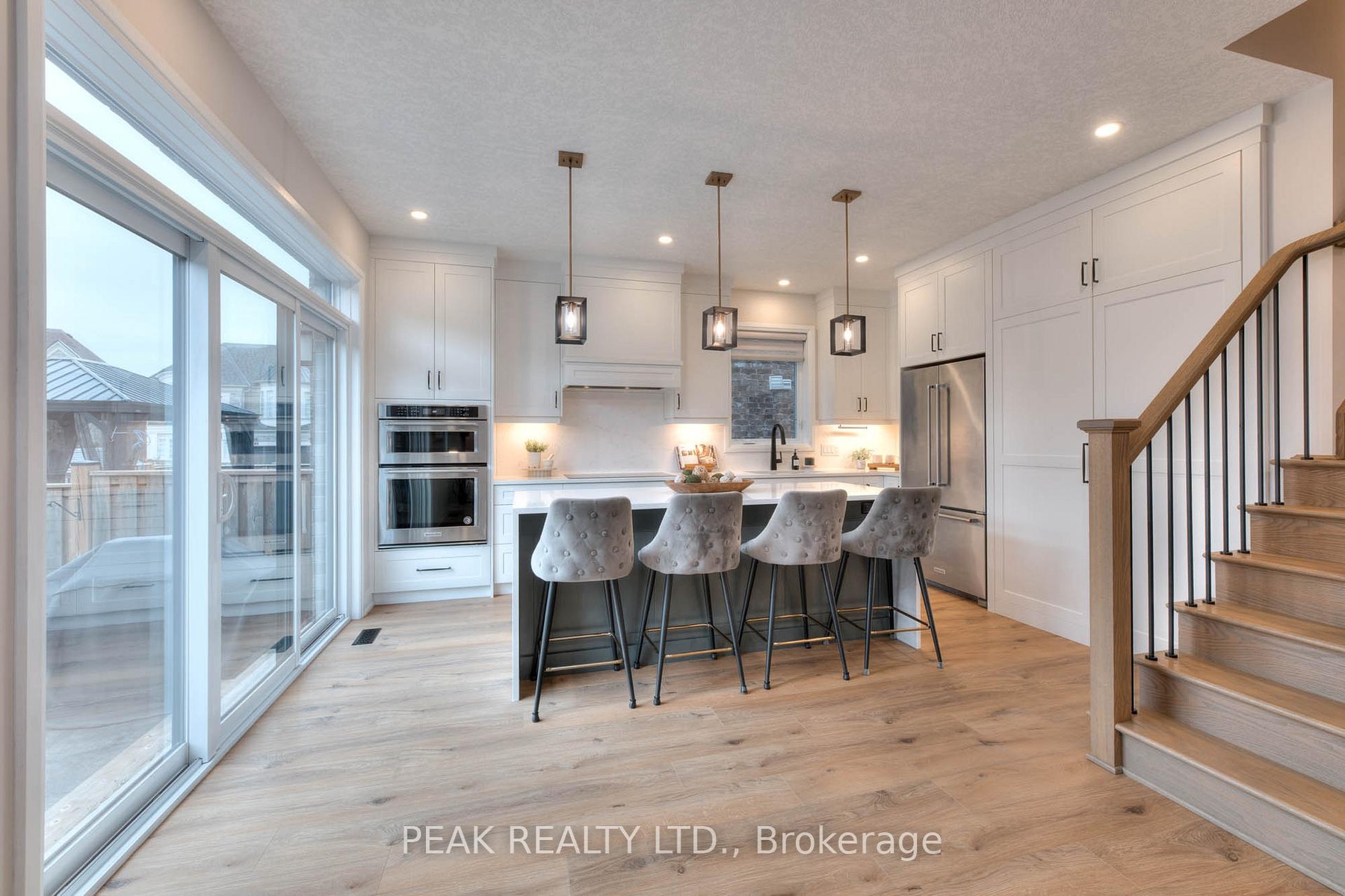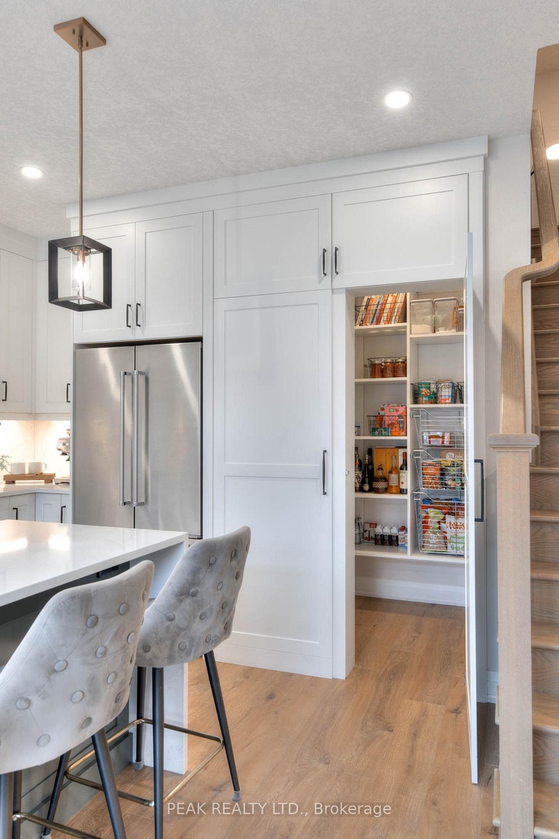 Located in Kitchener's highly sought-after Doon South neighbourhood, this 4-bedroom, 3.5-bath detached two-storey blends modern elegance with everyday family comfort. Built in May 2021 with over $100,000 in builder upgrades, this home showcases quartz counters throughout, a double waterfall-edge island with dovetail drawers and integrated organizers and spice racks, a custom walk-in pantry, built-in microwave, oven and cooktop, and a panel-ready dishwasher. The mudroom adds custom shelving for smart, functional storage and the two-car garage hosts a 50amp builder installed EV power outlet. Upstairs, you'll find four well-sized bedrooms, two with walk-in closets, and a serene primary ensuite featuring a floating vanity and a barrier-free glass shower with a rainfall showerhead. The basement includes a finished 4-piece bath, a wet bar rough-in and unfinished space ready for your creative vision. Outdoors, enjoy a stamped-concrete patio with gazebo and a natural gas bbq line-perfect for family gatherings and summer barbecues. Walking distance to J.W. Gerth Public School, close to parks, trails, and every family convenience, this exceptional Doon South home combines thoughtful upgrades with timeless comfort.