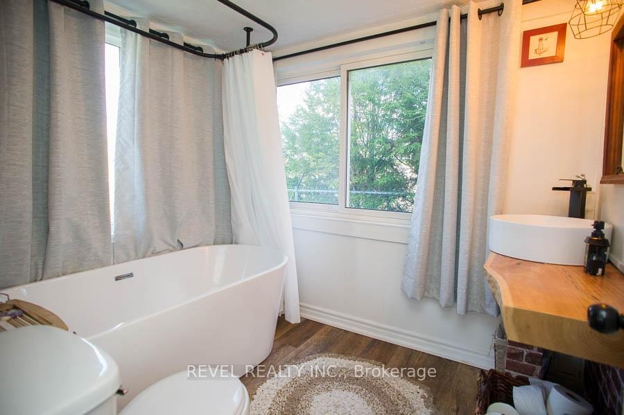 As the leaves change and cooler evenings set in, discover the charm of 38 Queen Street W in the lakeside village of St. Williams. This 2 bedroom, 2 bathroom home offers a warm and inviting retreat just minutes from Lake Erie, perfect for anyone seeking a quieter pace of life surrounded by nature. Inside, the thoughtful layout is designed for easy living. The front foyer opens into a bright, welcoming space where large windows draw in natural light throughout the main floor. The kitchen and living room flow together seamlessly, highlighted by rustic details and a gas fireplace that makes autumn nights feel especially cozy. The primary bedroom, laundry, and full bath are conveniently located on the main floor, making everyday routines simple and accessible. Upstairs, there is a second bedroom with additional space that could be adapted to suit your needs whether as another bedroom, office, sitting room or hobby area. The basement provides plenty of room for storage and a workshop setup, making it a practical extension of the home. Set on a deep 200-foot lot that backs onto open farmland, the property delivers peaceful, unobstructed views and a strong sense of privacy. Updates that have been done include a steel roof, furnace, windows, fireplace, and deck give added value and reassurance. From here you're only a short drive to Turkey Point beach, local marinas, Port Rowan, and the well-known BurningKiln Winery. Whether you picture crisp fall walks, evenings by the fire, or easy access to lake activities, this home offers the perfect balance of comfort and lifestyle. Welcome home to 38 Queen Street West your cozy retreat in St. Williams.