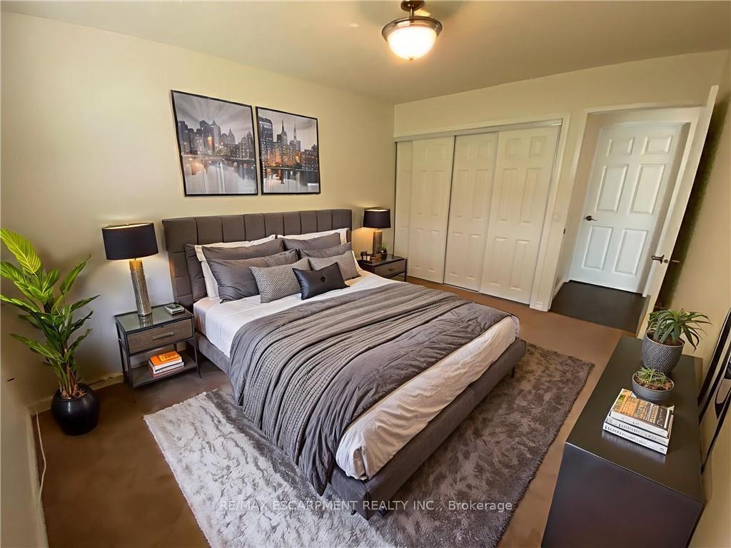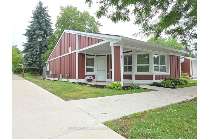 Welcome to the 1 Szollosy Circle in the vibrant 55+ community of St. Elizabeth Village. This charming, bright, well-maintained end-unit bungalow-town offers one-floor living with a neutral palette, laminate flooring throughout most of the home, and soft carpet in the primary bedroom for added comfort. Ideally located near the main entrance for easy access and just a short walk to the village's many amenities. The layout includes two rear-facing bedrooms with generous closets-one with sliding doors to a private deck overlooking green space, ideal as a bedroom, dining room, or office. The spacious bathroom features a low-threshold Mirolin walk-in shower with built-in seat and grab bar. Monthly fees include property taxes, exterior maintenance (roof, windows, doors, siding), grounds care, and full access to resort-style amenities: indoor pool, hot tub, gym, yoga and dance studios, pickleball court, walking trails, wellness centre, plus on-site café, pharmacy, church, doctors, physio, massage clinic, and salon.