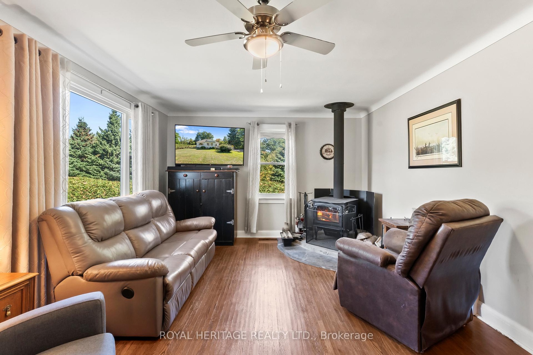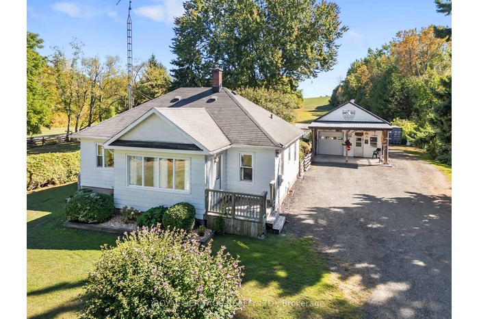 Drive up your own long private lane and step into a property that truly has it all. Over 12 acres of rolling land with winding trails, wide-open fields, and a breathtaking lookout point with panoramic views of Lake Ontario and the hills beyond. At the heart sits a charming two-bedroom bungalow with a walkout deck, hot tub, and BBQ space- the perfect spot for everyday relaxation. The home has seen meaningful updates over the years, including a renovated bathroom in 2024, central air installed in 2022 (with a 10 yr warranty), propane furnace 2017, and ongoing upgrades that provide peace of mind for the next owners. Inside, you'll also find useful touches like a pantry/office space and plenty of natural light. Step outside to a large fenced yard, ideal for pets or kids, with a generous quantity of seasoned firewood ready for use. Beyond the home, the land opens up to a pond, multiple sheds, three chicken coops, and a dog kennel, blending function with country charm. For those who dream bigger, the 24 X 24 garage/workshop is insulated, rewired, and comes with loft storage and an attached carport- a true hub for projects, cars, or hobbies of any kind. All of this is located just minutes from the 401 and close to local conveniences including the library, pharmacy, school and community arena. With ample space for parking and projects, this property offers the rare combination of privacy, space, and convenience. This property is more than just a home, its a lifestyle, an investment, and an opportunity waiting to be unlocked. Your country escape. Your future vision. All here, on 12 unforgettable acres.