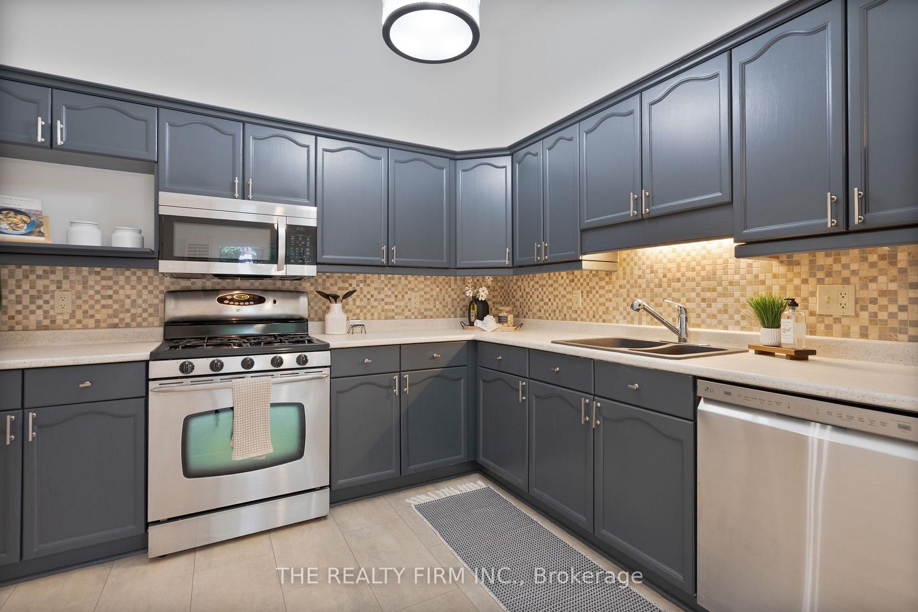 Outstanding Value in London! This beautifully updated 2-bedroom bungalow townhouse with a walkout basement offers modern comfort, flexibility, and move-in readiness in a quiet, well-managed community-just steps from East Park Golf Gardens & Water Park. The main floor features vaulted ceilings, hardwood floors, and a stunning floor-to-ceiling brick gas fireplace. The bright kitchen and dining area include new patio doors (2025) leading to a private deck-perfect for morning coffee or entertaining. The dining room can easily convert to a home office or third bedroom. The walkout lower level adds a spacious bedroom, 3-piece bath with heated floors, and a cozy family room with patio access. Attached Garage with inside entry. Recent updates: paint (2025), patio doors (2025), R60 insulation (2023), eavestroughs (2023), furnace & A/C (2019). Close to transit, shopping, and schools-perfect for professionals or downsizers seeking low-maintenance living with exceptional value.