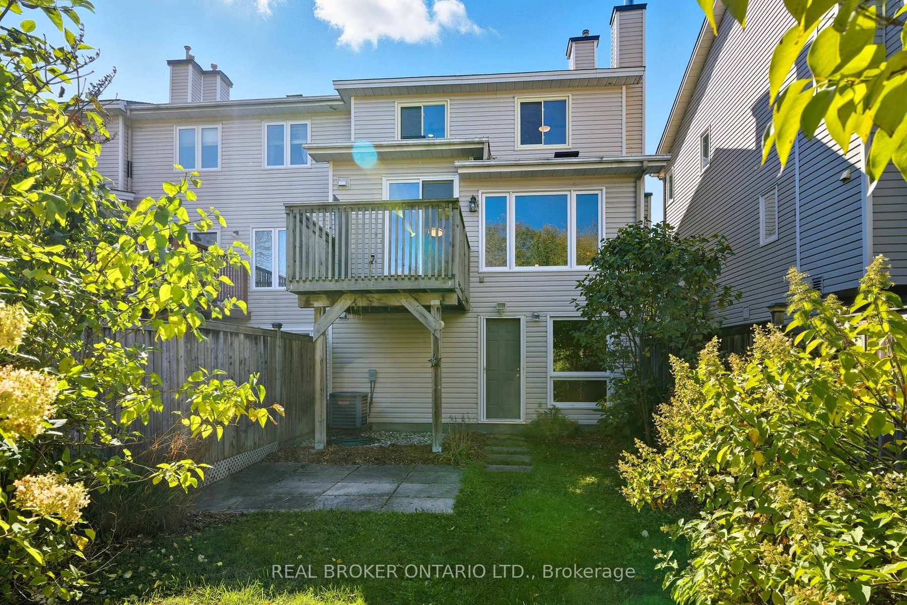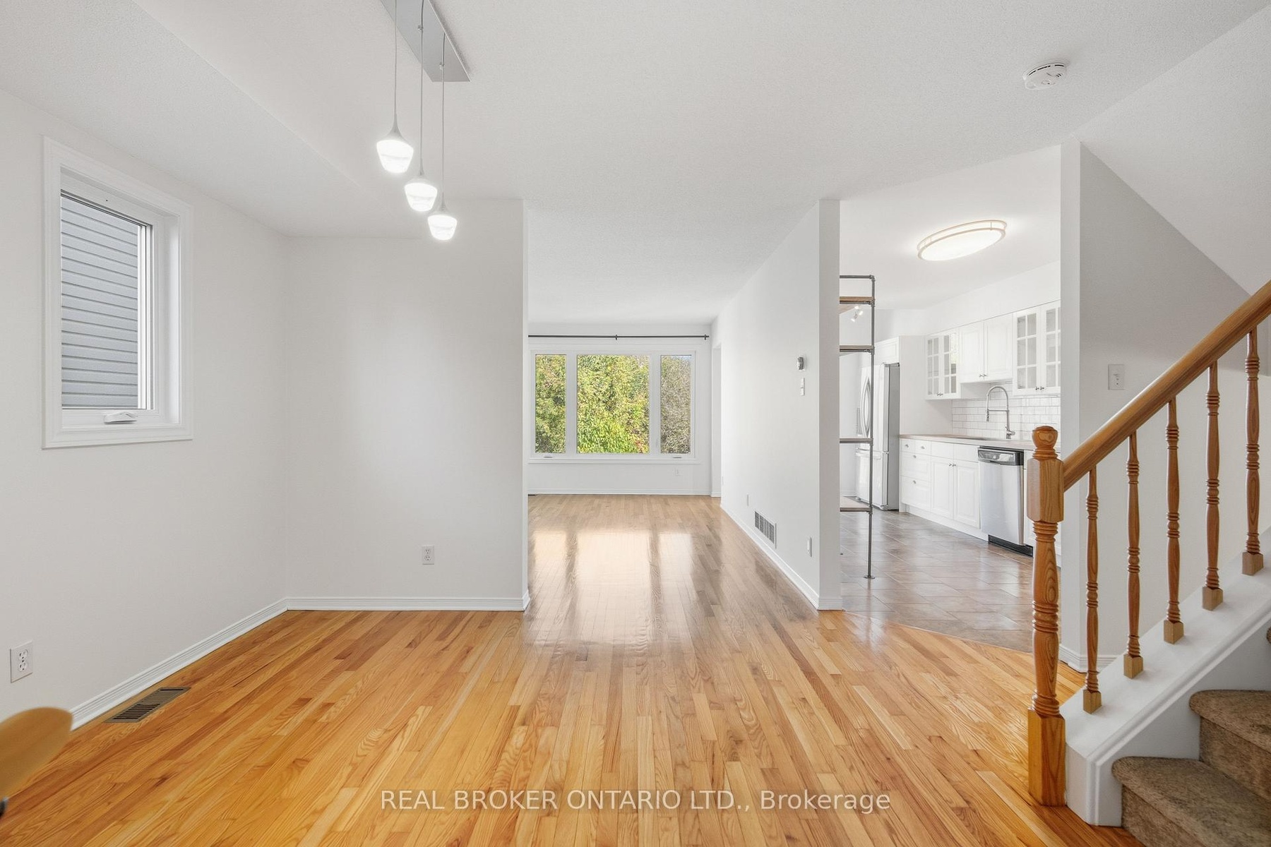 Welcome to this bright and inviting 3-bed, 2-bath end-unit townhome in the Morgan's Grant / South March neighbourhood of Kanata North. Backing onto Shirleys Brook forest and creek, this home offers rare privacy with no rear neighbours and a fenced yard. Inside, a sunken foyer with double closet and powder room leads to a spacious open living/dining area with hardwood floors. The bright kitchen features white shaker cabinetry, butcher block counters, stainless steel appliances, and direct access to an elevated deck overlooking nature. Upstairs are 3 comfortable bedrooms, including a large primary with walk-in closet. The finished walkout lower level adds a bright rec room, laundry, and storage. You'll appreciate parking for up to 3 vehicles (garage + driveway) and a walkable lifestyle close to the Kanata North Tech Park, transit, schools, parks, trails, and all amenities. A perfect next step for those seeking space, privacy, and a connection to nature.