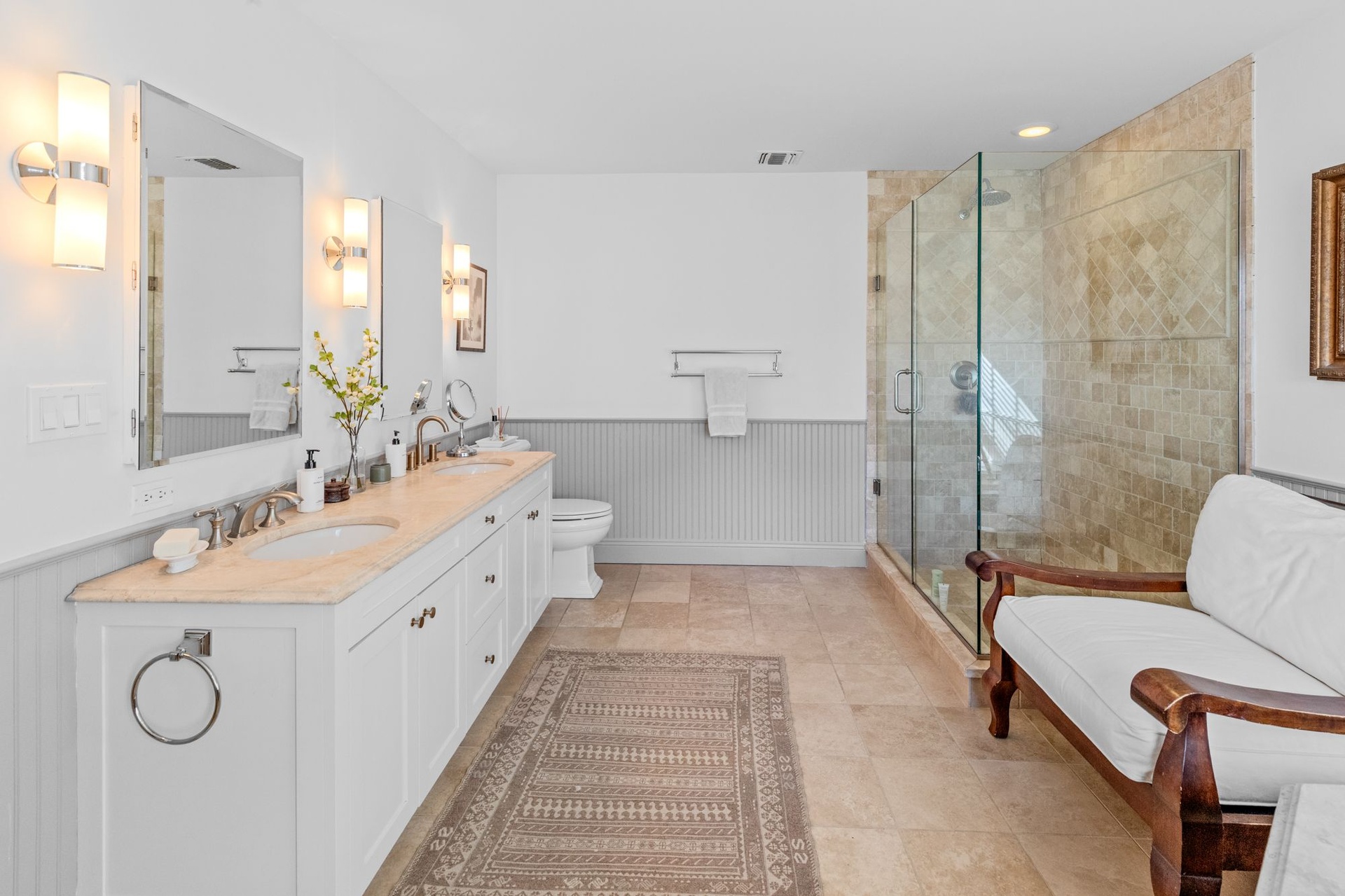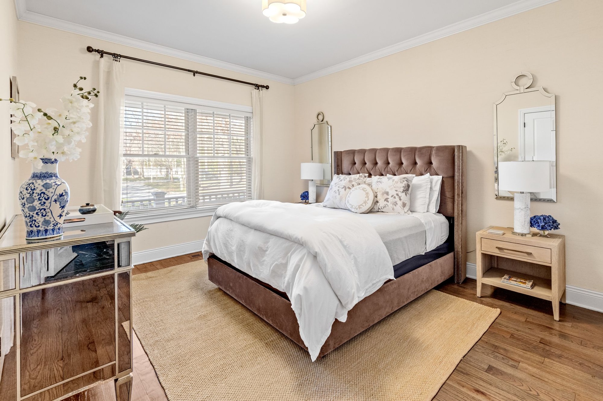 This beautifully maintained 5-bedroom, 3-bath Southampton home offers an ideal summer retreat with a heated pool and inviting outdoor space. The first floor features a spacious living room, formal dining room, kitchen with breakfast area, den, laundry room, and an ensuite guest bedroom. Upstairs, the primary suite includes a makeup vanity and a full bath with both a shower and soaking tub, along with three additional guest bedrooms that share a hall bath. Outdoors, enjoy a sunny patio with an al fresco dining table and grill—perfect for relaxed summer entertaining in the Hamptons.