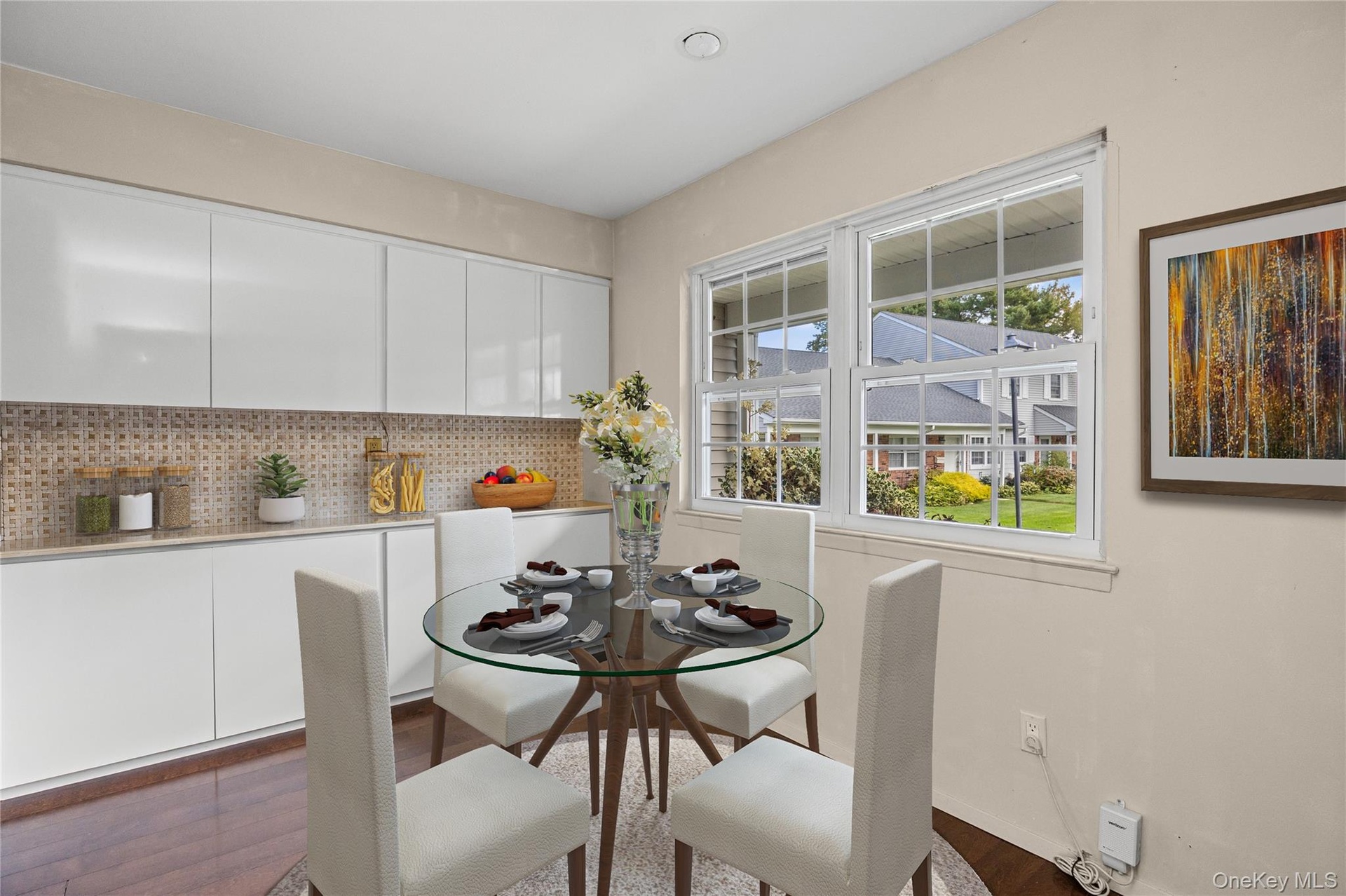 - Unfurnished dining area featuring dark wood-style floors and baseboards