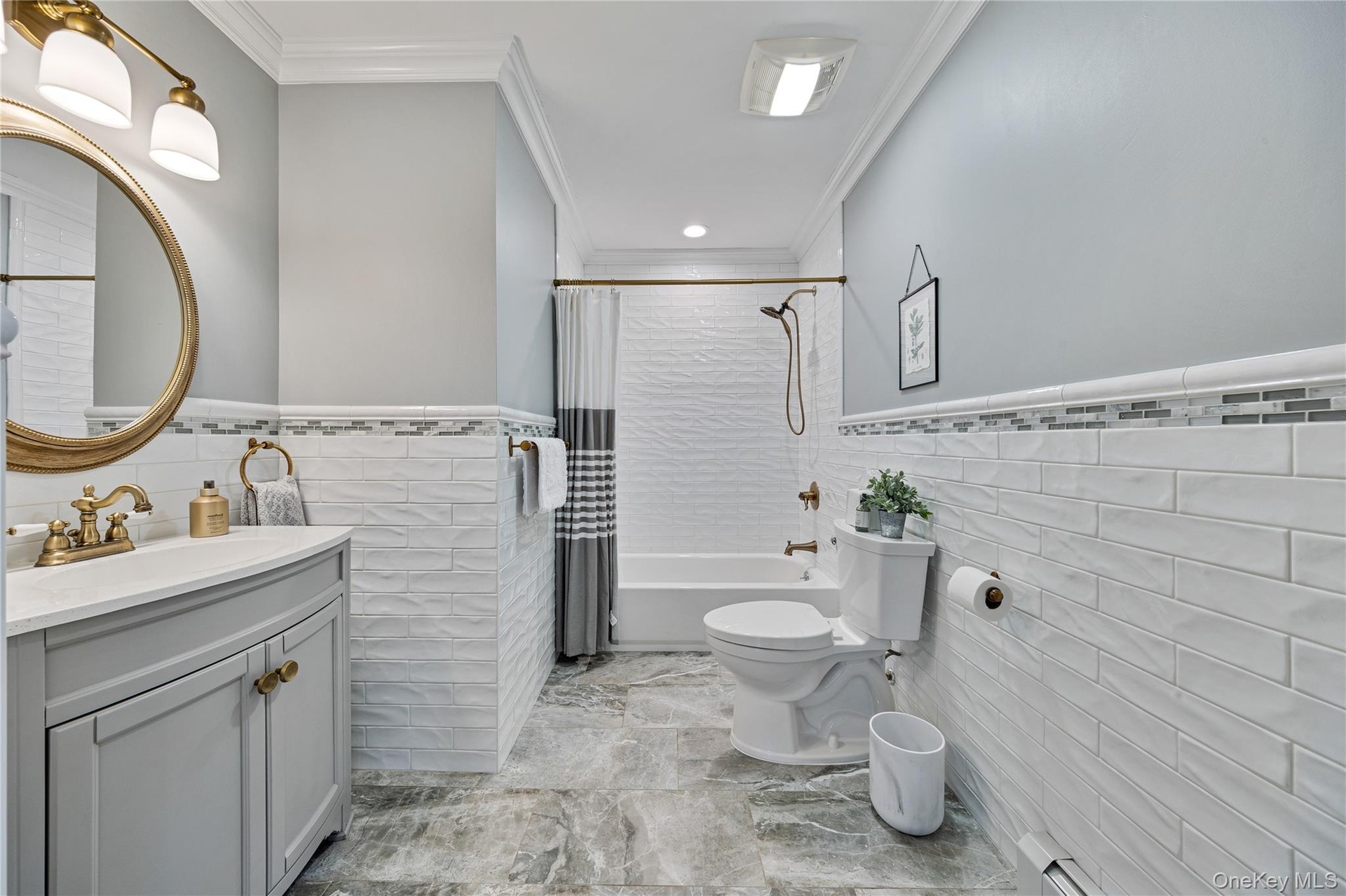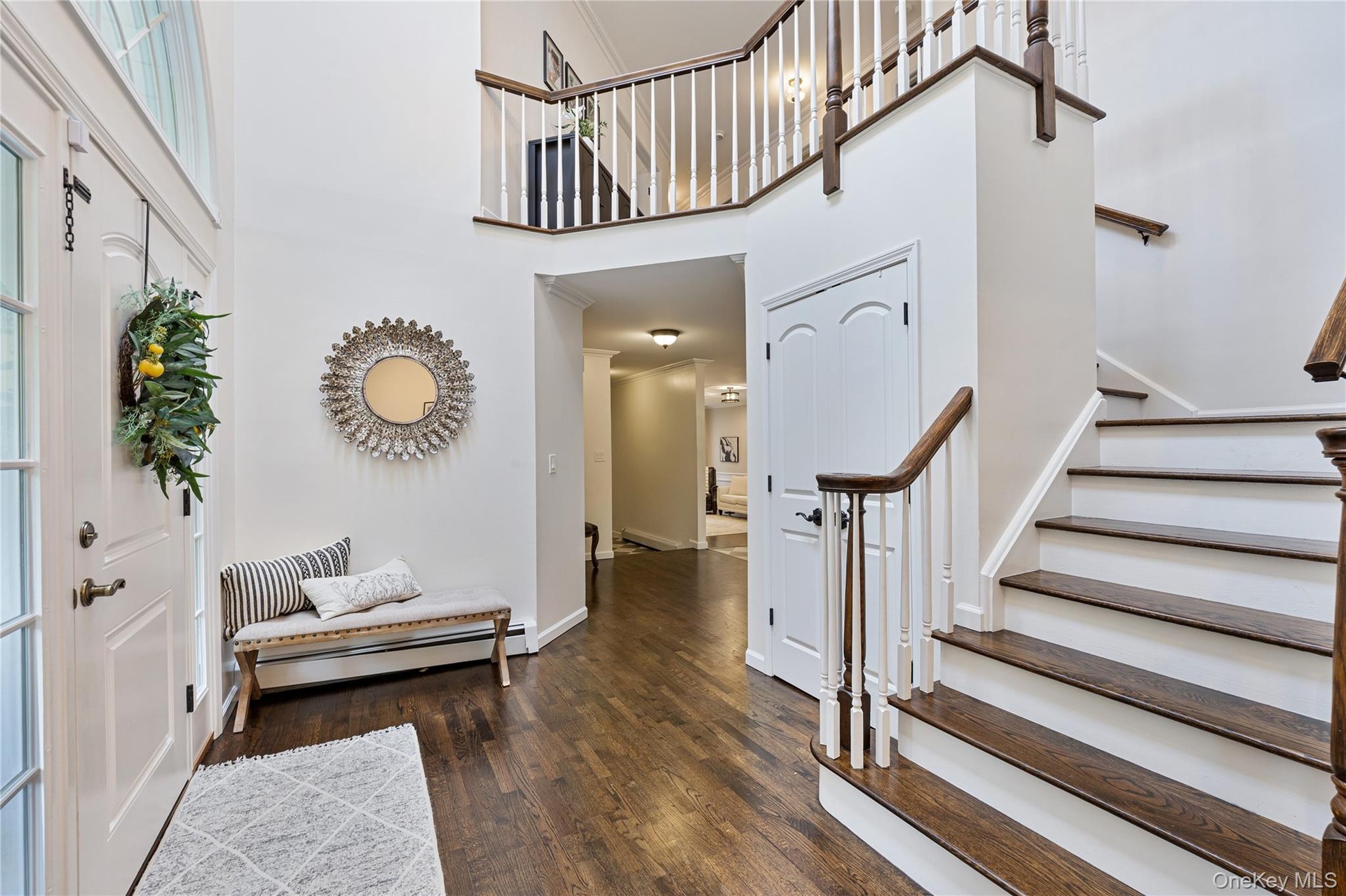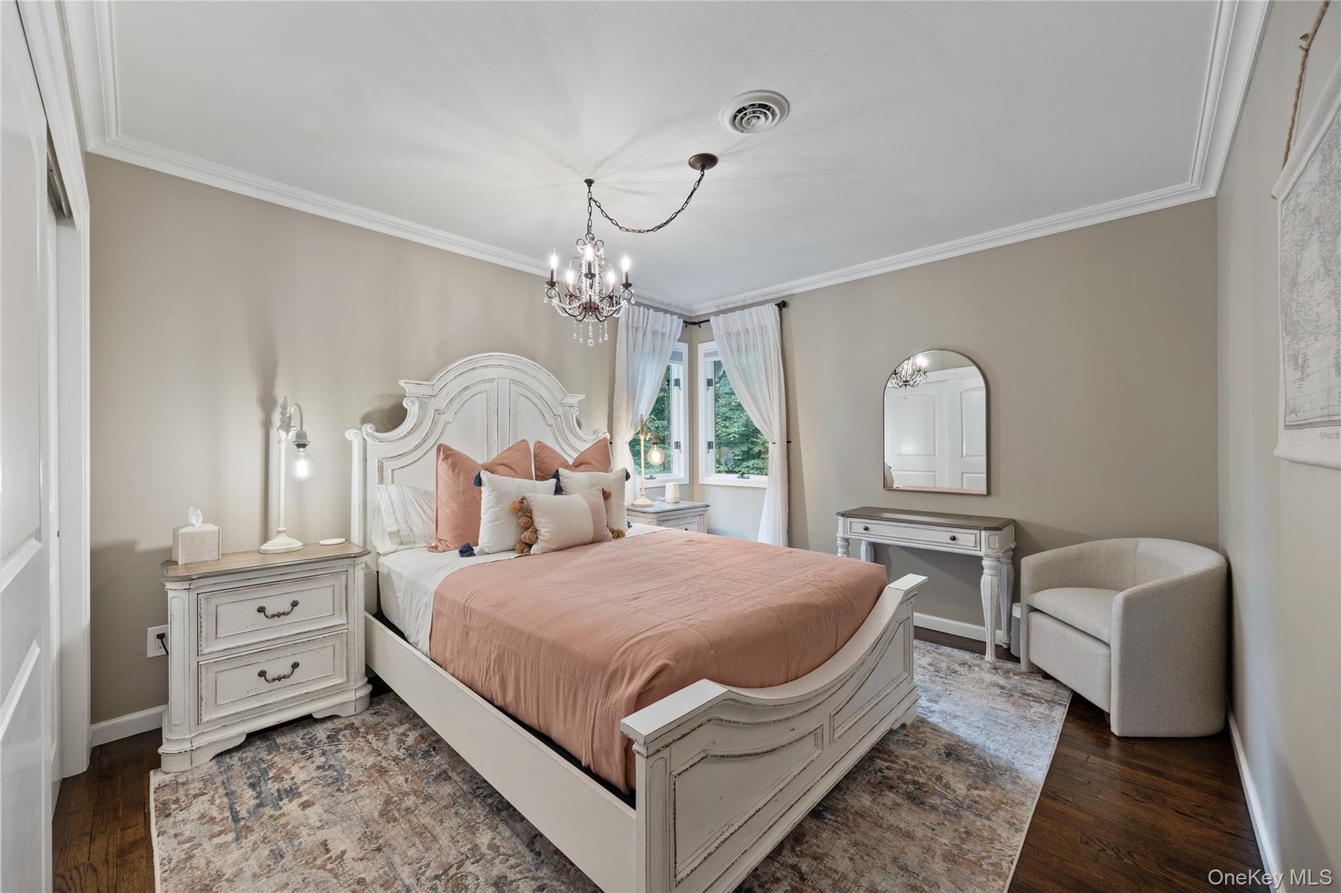 Luxury meets majesty in the prime of Chestnut Ridge. Nested on an almost acre of well maintained lush property this contemporary colonial stands out with it's many upgrades and high end finishes. Lovely front porch welcomes you into the grand 2 story entrance with detail and design, high ceilings, and sunlight streaming in from the skylights. The over sized dining room awaits ready to host and entertain. Luxurious built in wet bar with sink, dishwasher, mini kitchen and freezer. The kitchen with it's wistfully white granite countertops and custom made cabinetry designed for optimal orderliness and convenience, is a haven for every homemaker. The kitchen island with it's tasteful design and style complements this beautiful picture. Sliding doors lead to the large deck an oasis of privacy and shade . Lovely living room open to the kitchen with electric fireplace and exquisite moldings. Additional main level features: a study, full bathroom, and laundry area. On the upper level the majestic master suite has been thoughtfully designed and includes sitting area, grand huge master bath with hot tub and double vanity, and oversized bay windows inviting the sunlight. 3 additional bedrooms with full bathroom, each spacious, elegant, and sunny. The finished lower level has a family room additional bedroom and beautiful full bathroom. The house in all it's grandeur is truly a cut above and will make every future homeowner proud.