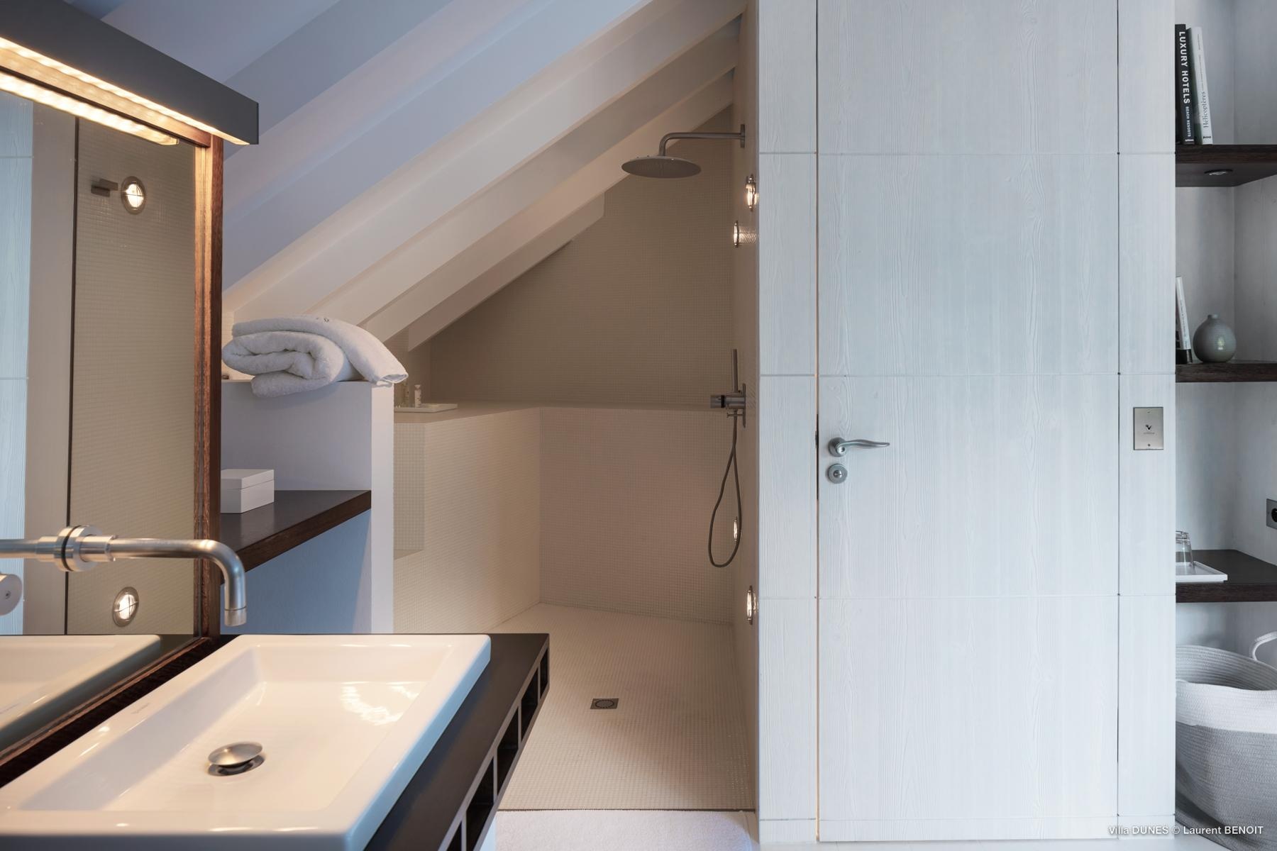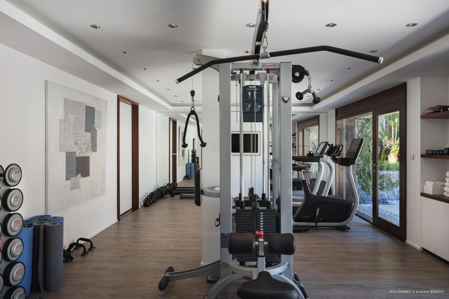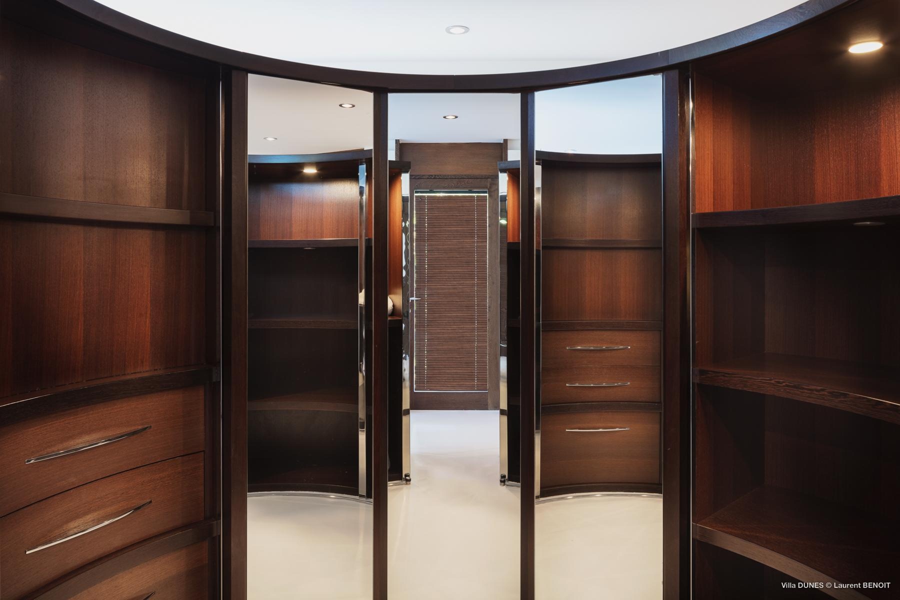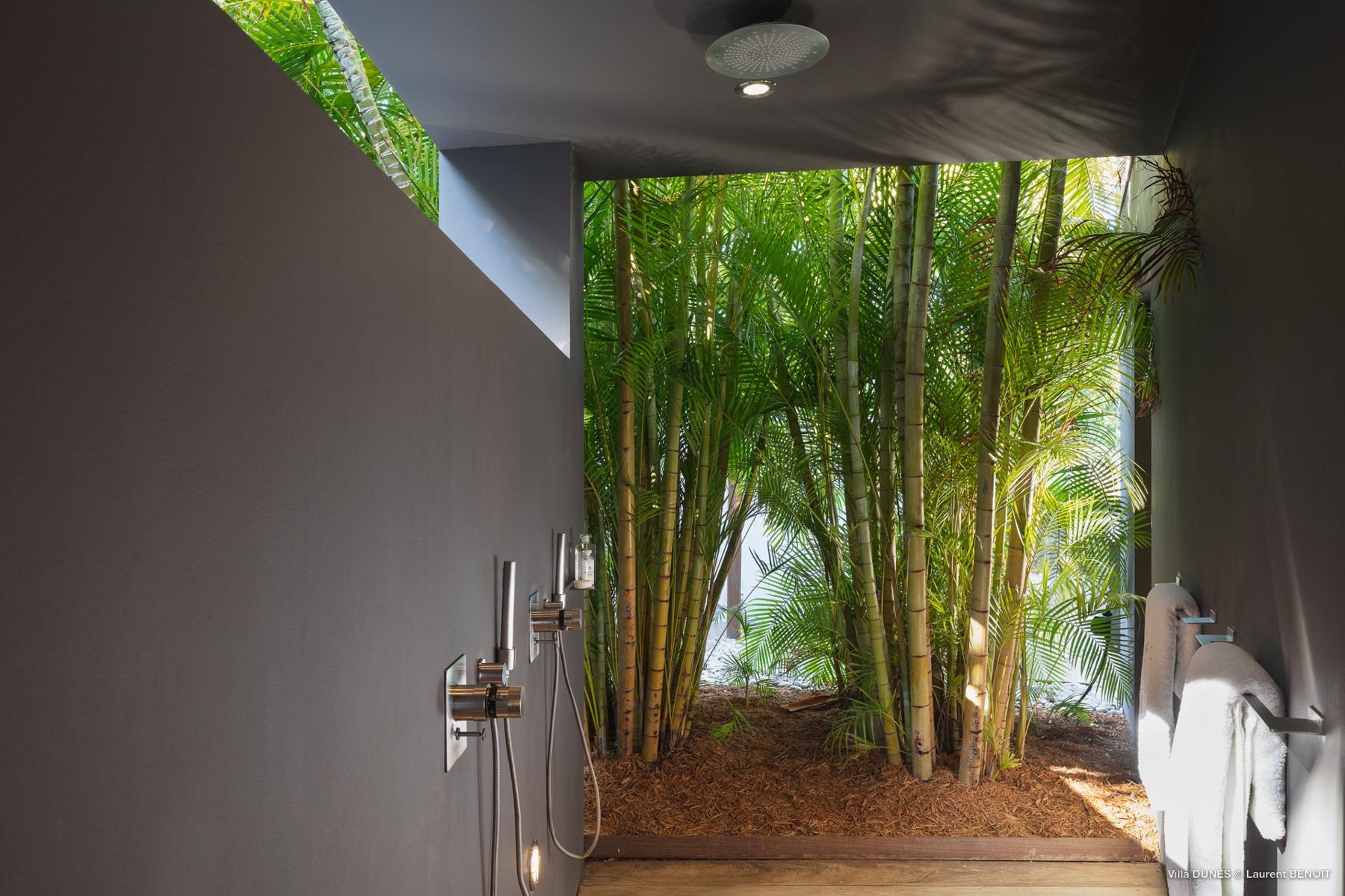 On the pool level, you will find the master bedroom overlooking the sea, a large living opened onto a spacious deck, a dining room opened on both side of the garden and the terrace with the view. There are two kitchens, one opened onto the living and terrace and the other one with the air-conditioning, perfect for a chef.