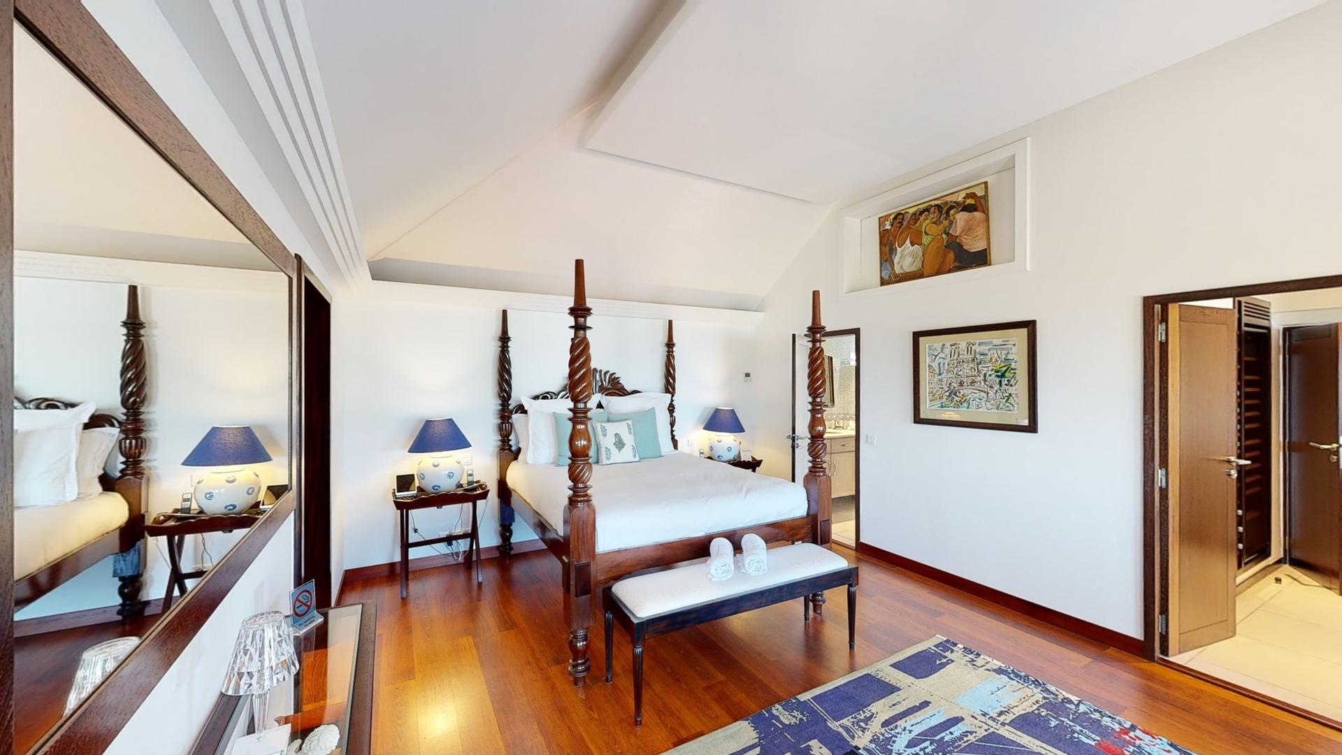 The master bedroom facing the ocean is situated on the same floor, has two ensuite bathrooms and a private office.