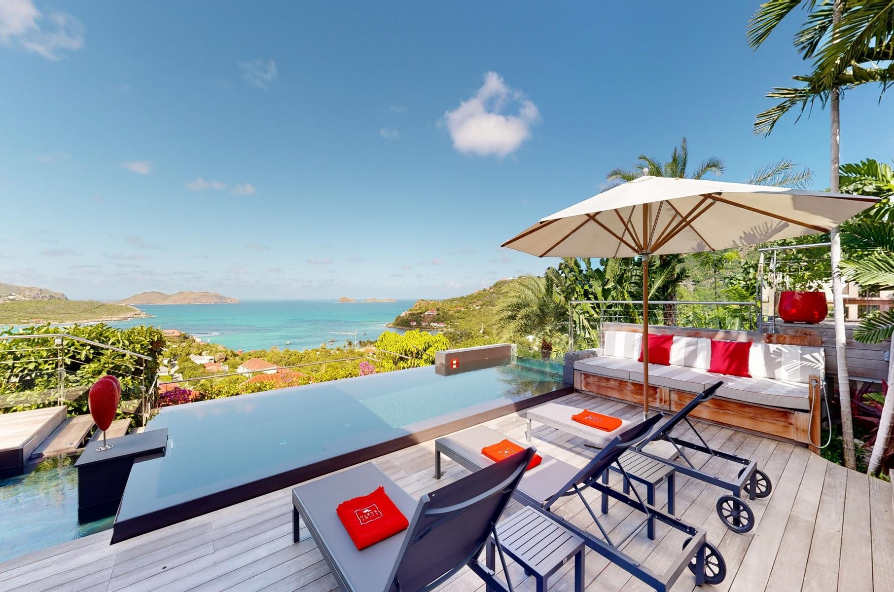 This outstanding property, built on three different levels, offers an amazing view over the bay. At night, the panoramic view over the lights of Saint Jean is enchanting.