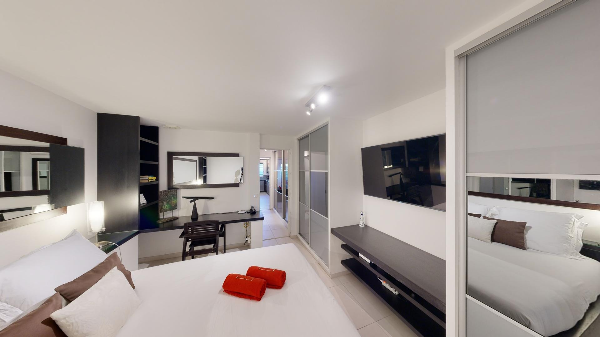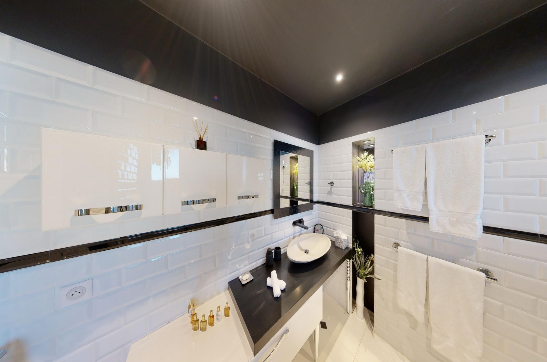 On the lower level, you will find the last bedroom equipped with a living room and an ensuite bathroom.