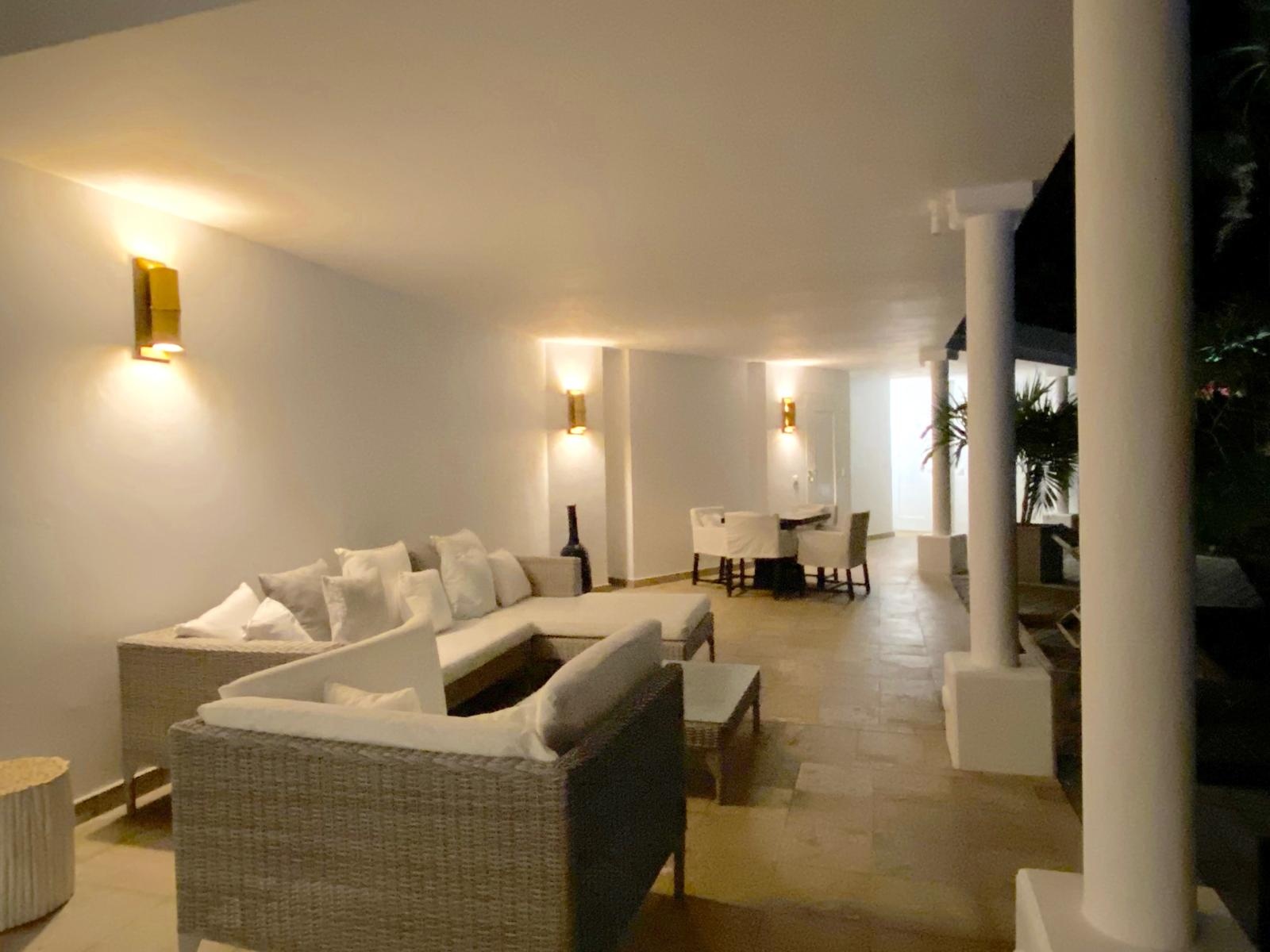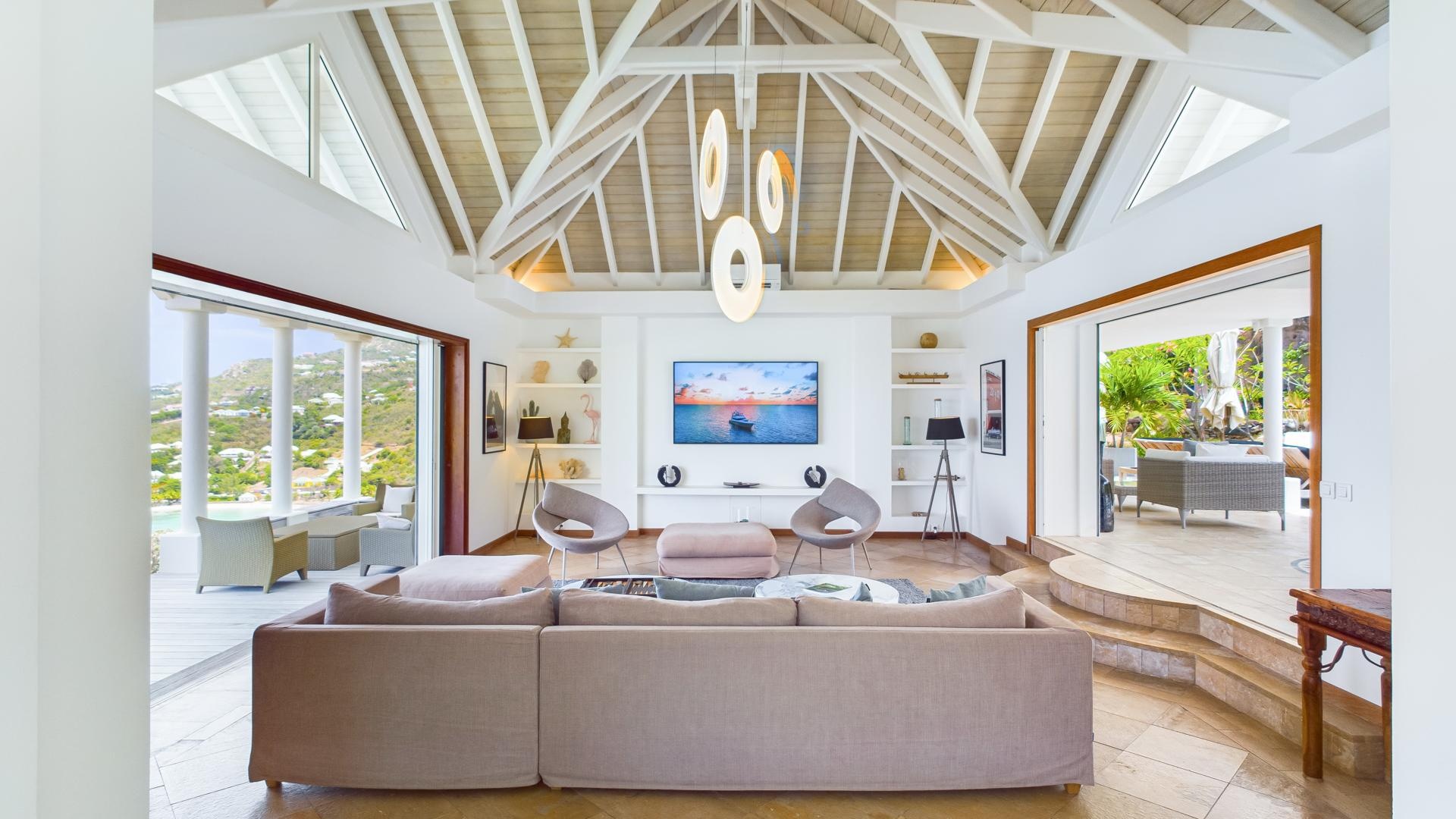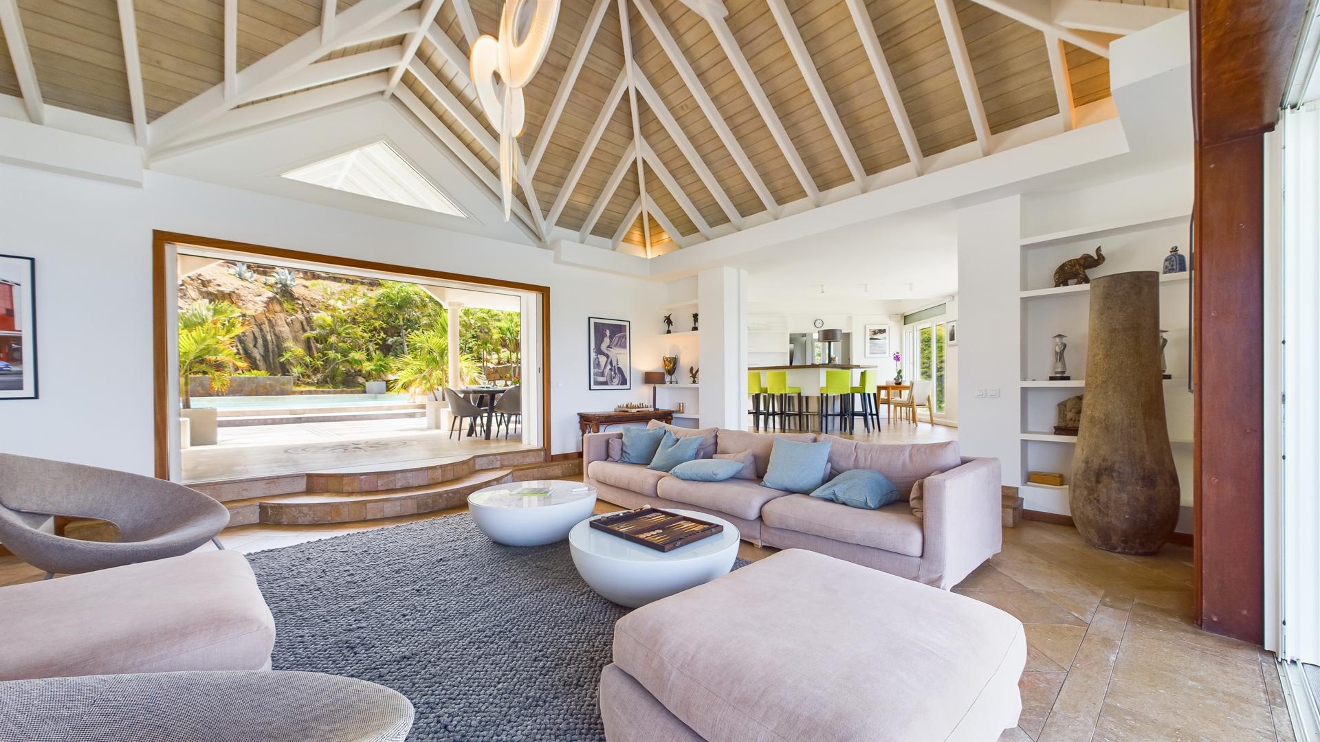 The living opens onto the sea and the large heated pool.