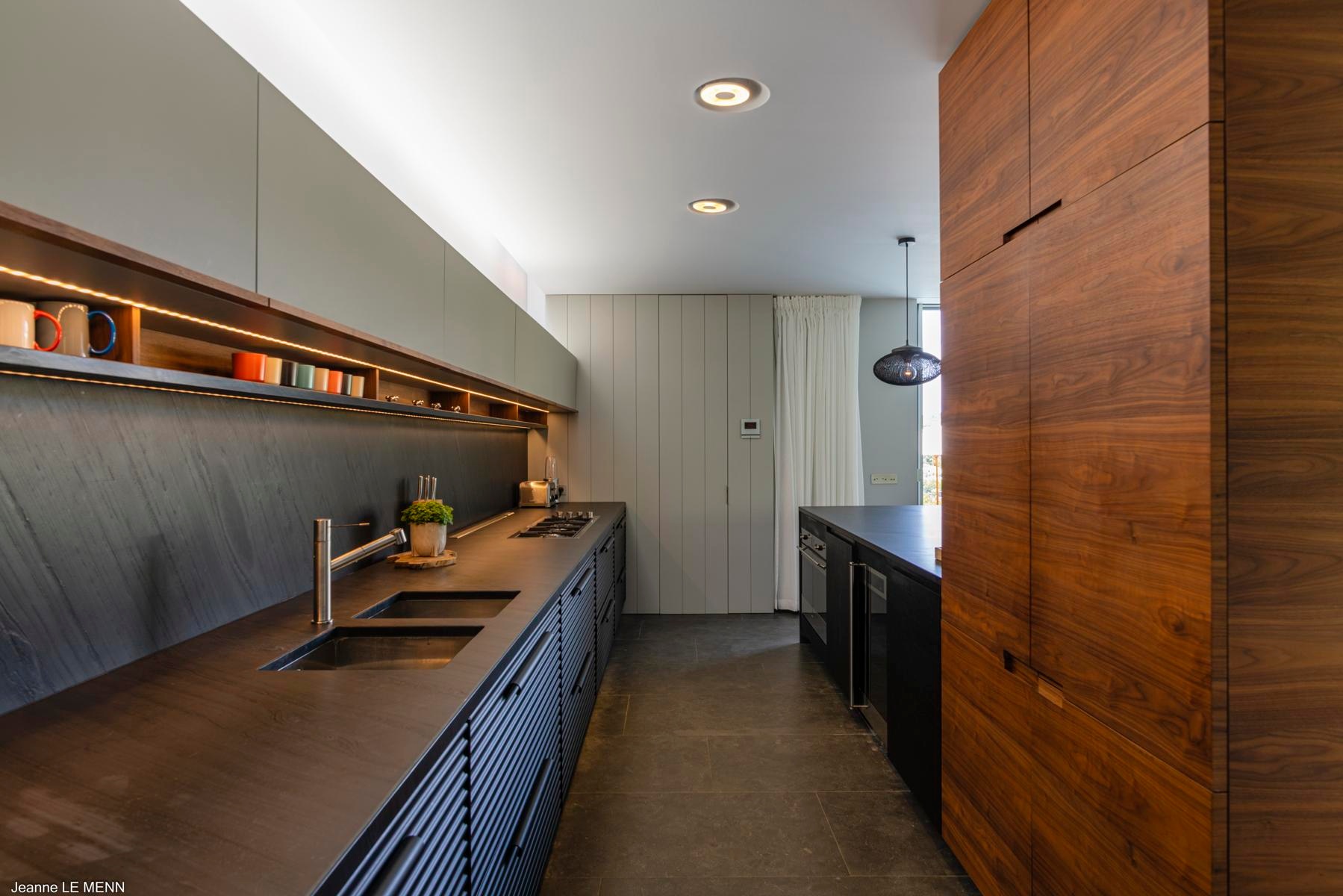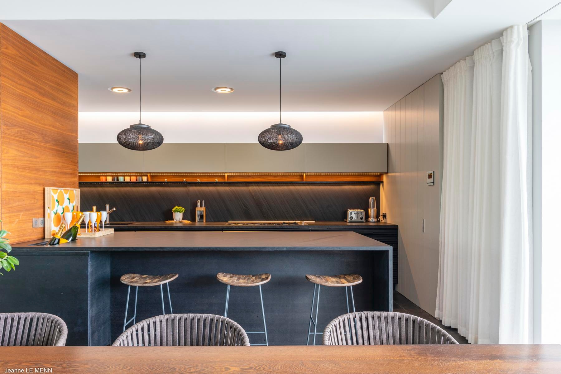 On the main level, the fully equipped kitchen, the living room and the dining room combine modernity and comfort and open onto the outdoor space.