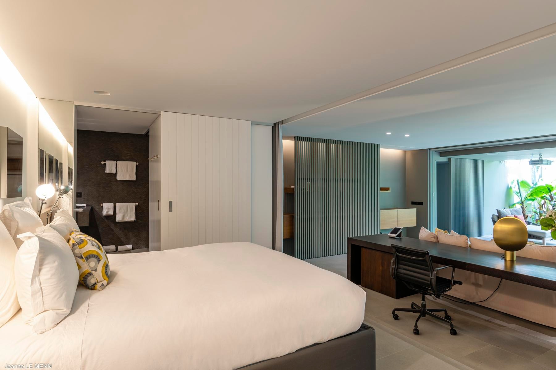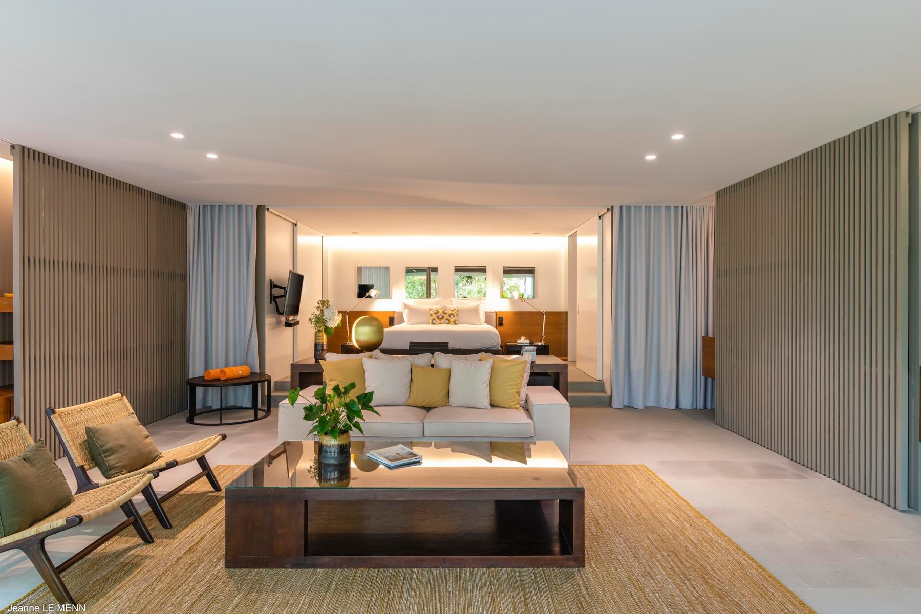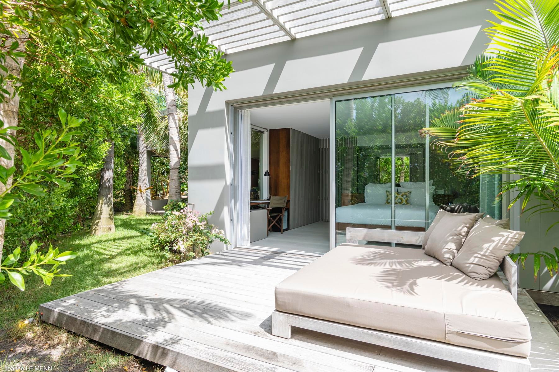 The master bedroom is connected to the living room, which opens onto the terrace and a private garden with a bathtub in addition to the existing indoor bathroom.