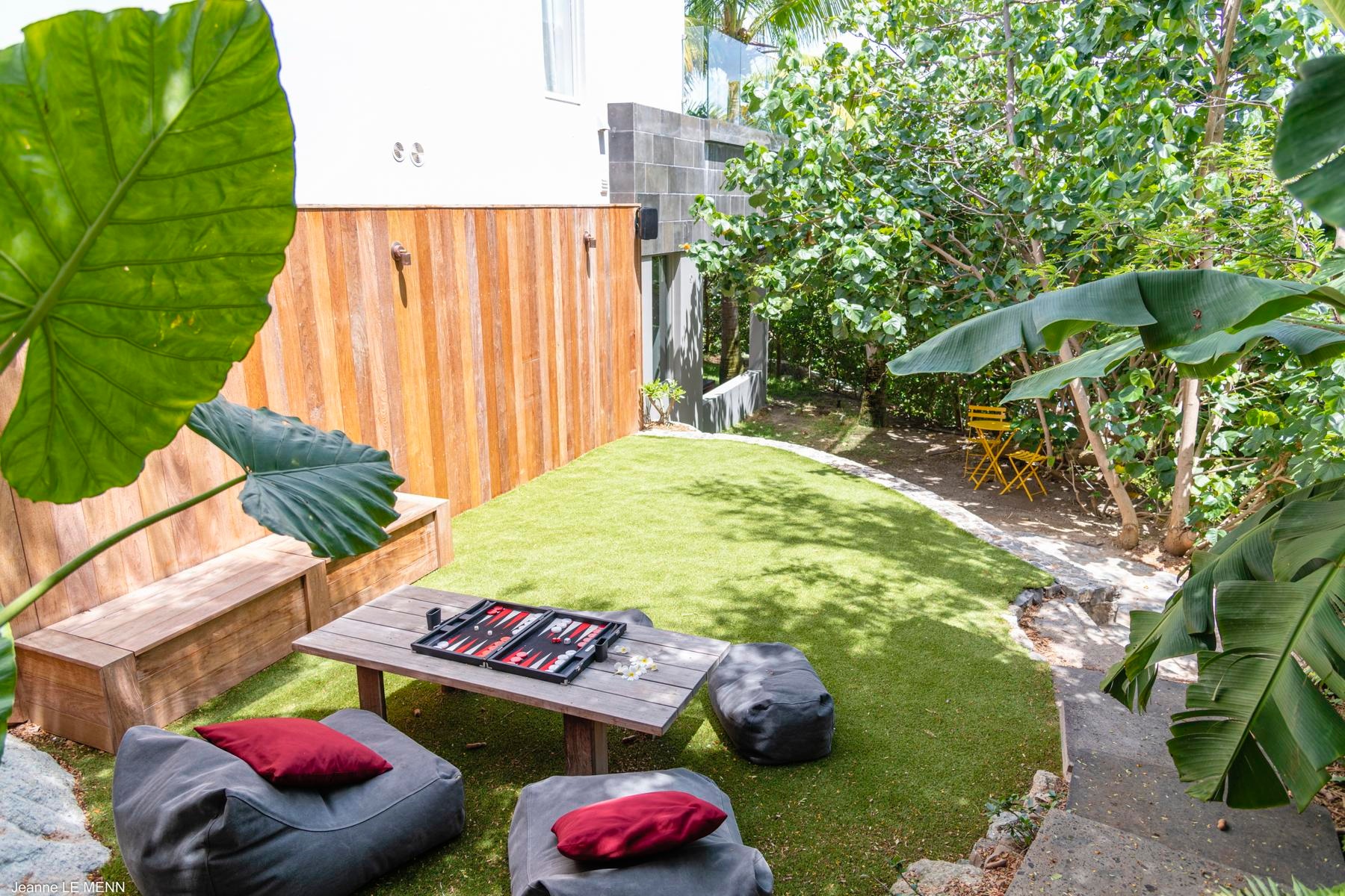 You will discover three gardens, one of which can be used for yoga for example. A petanque court was also recently added.