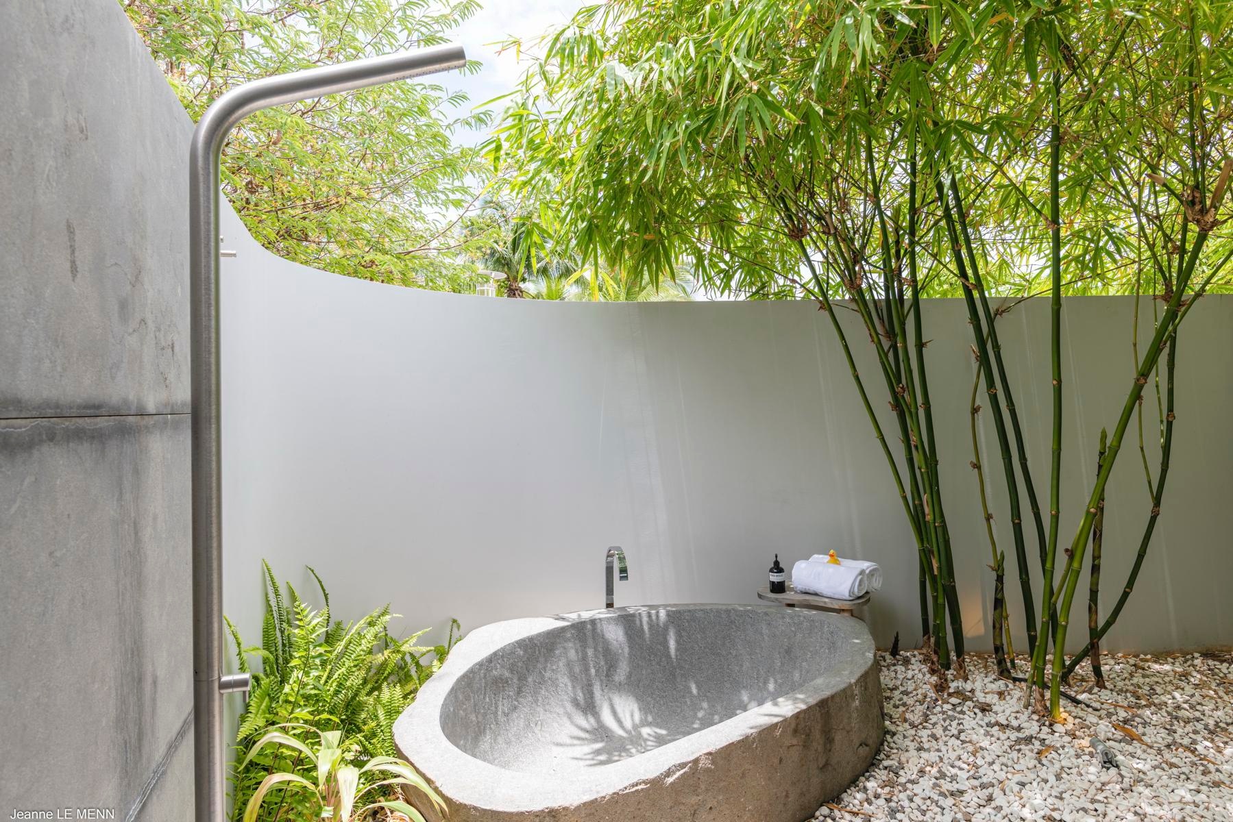- Equipment: air conditioning, fan, safe, TV, French satellite, US satellite, outside shower, bathroom with bathtub and shower