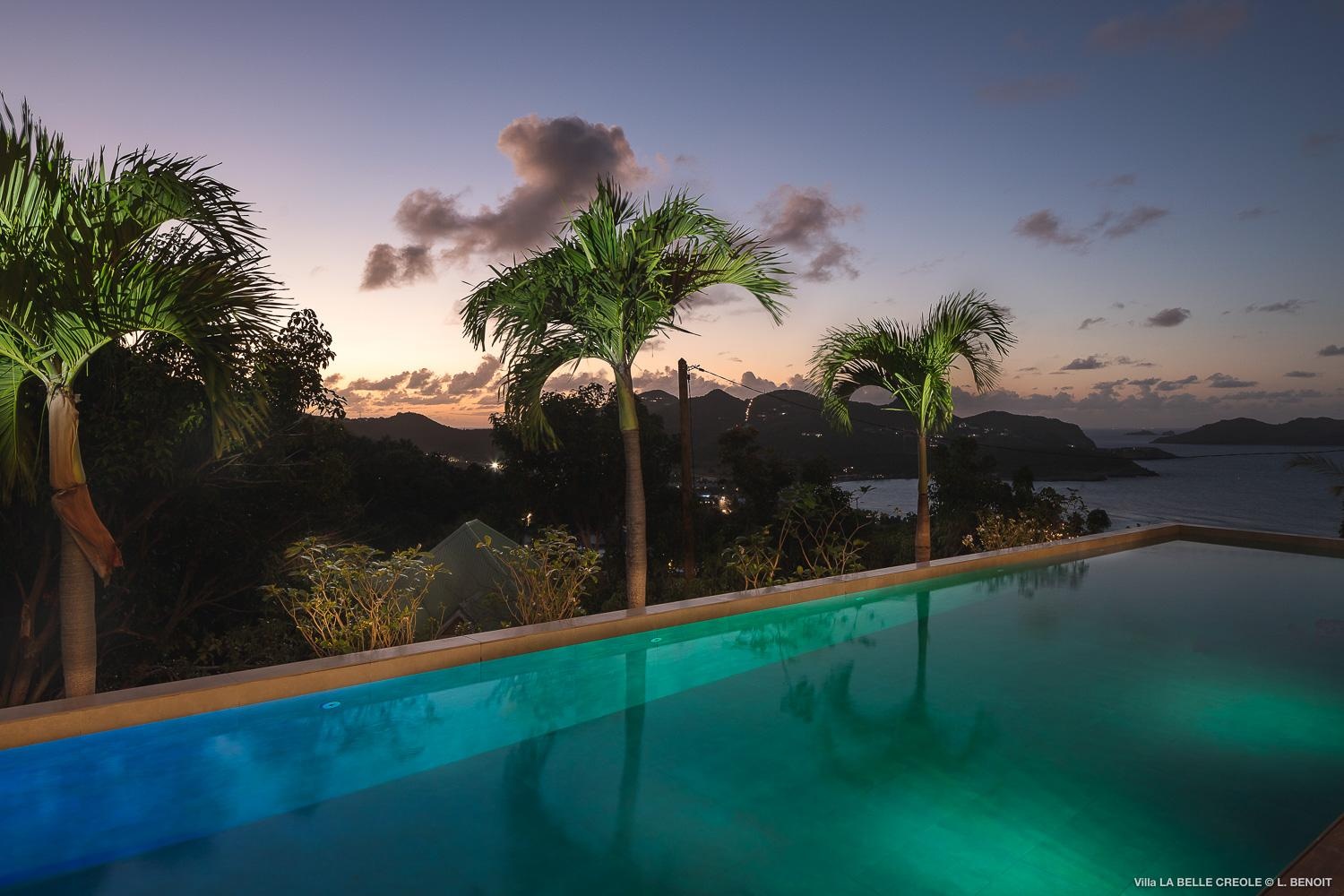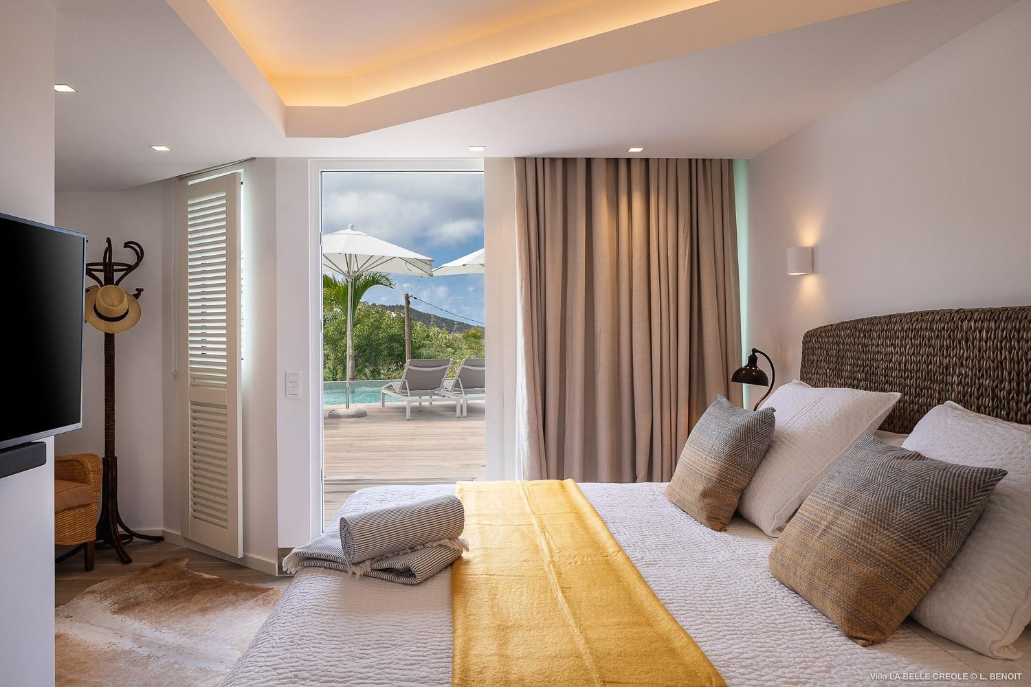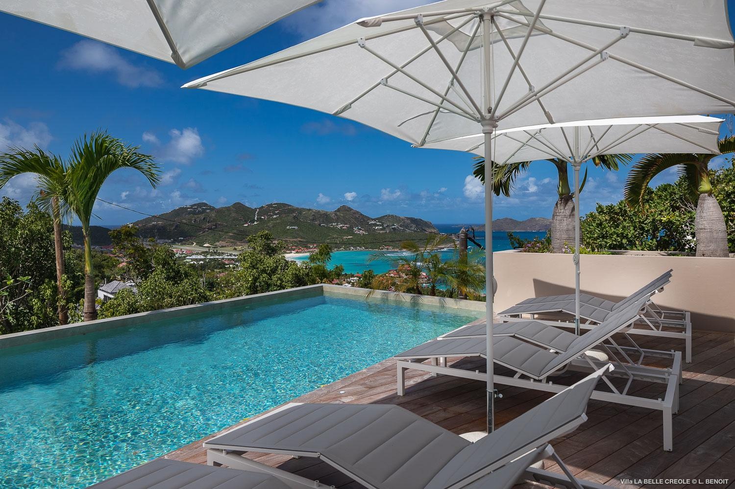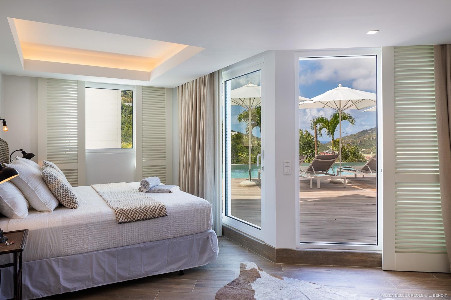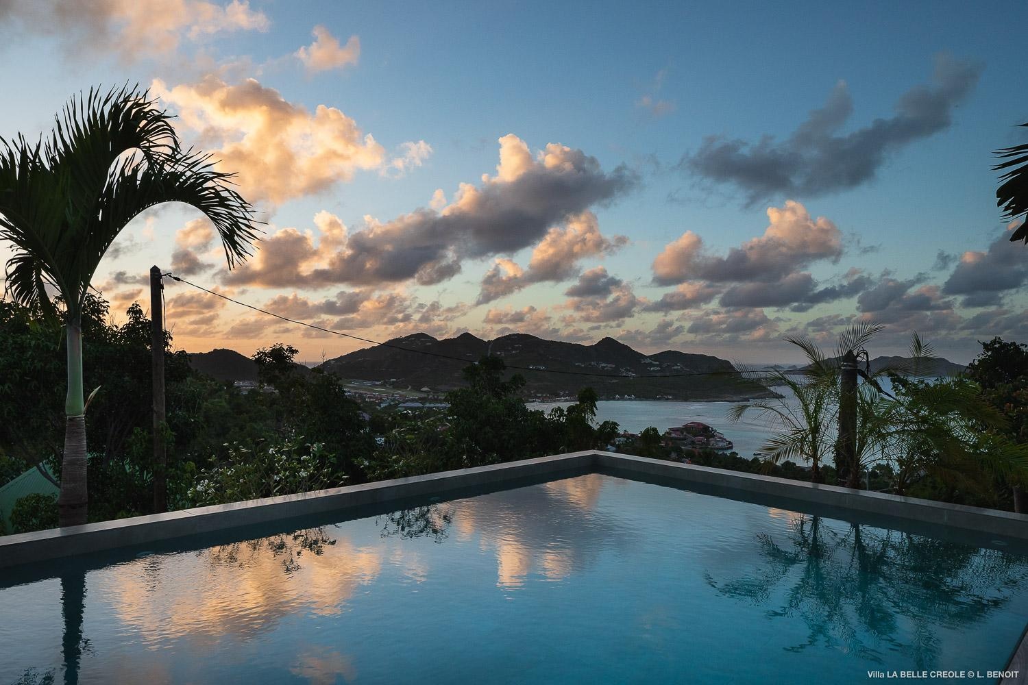 The decoration is mixing wood floor, terracotta, white colonial furniture, dark exotic wood with white sofas and white ceiling that gives a Caribbean and a Colonial atmosphere.