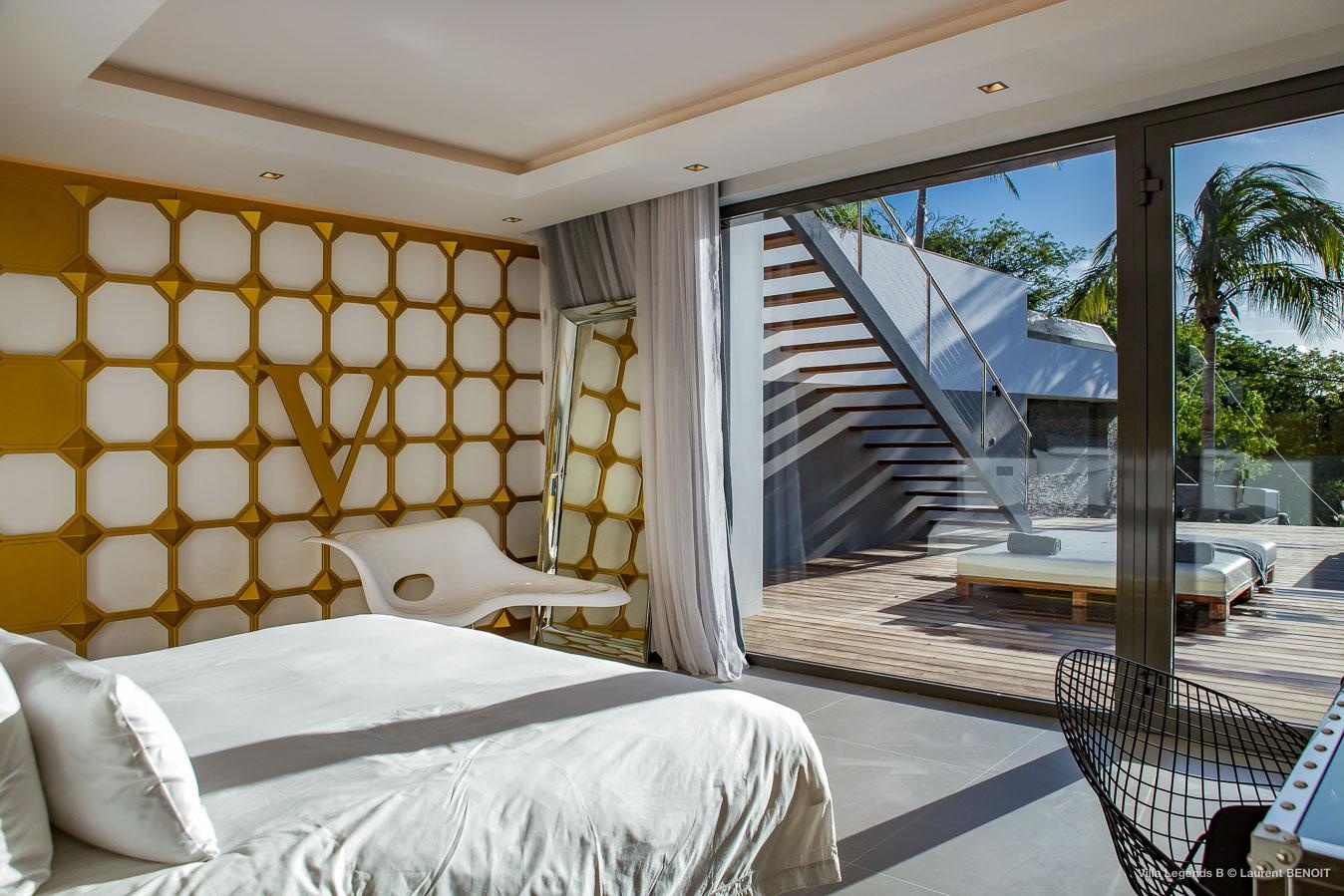 Each of the five bedrooms has been decorated following five luxury brands theme: Louis Vuitton, Chanel, Yves Saint Laurent, Hermes and Bulgari. They are spread over three levels, on the first floor, one bedroom, on the main level, three and below, the last one.