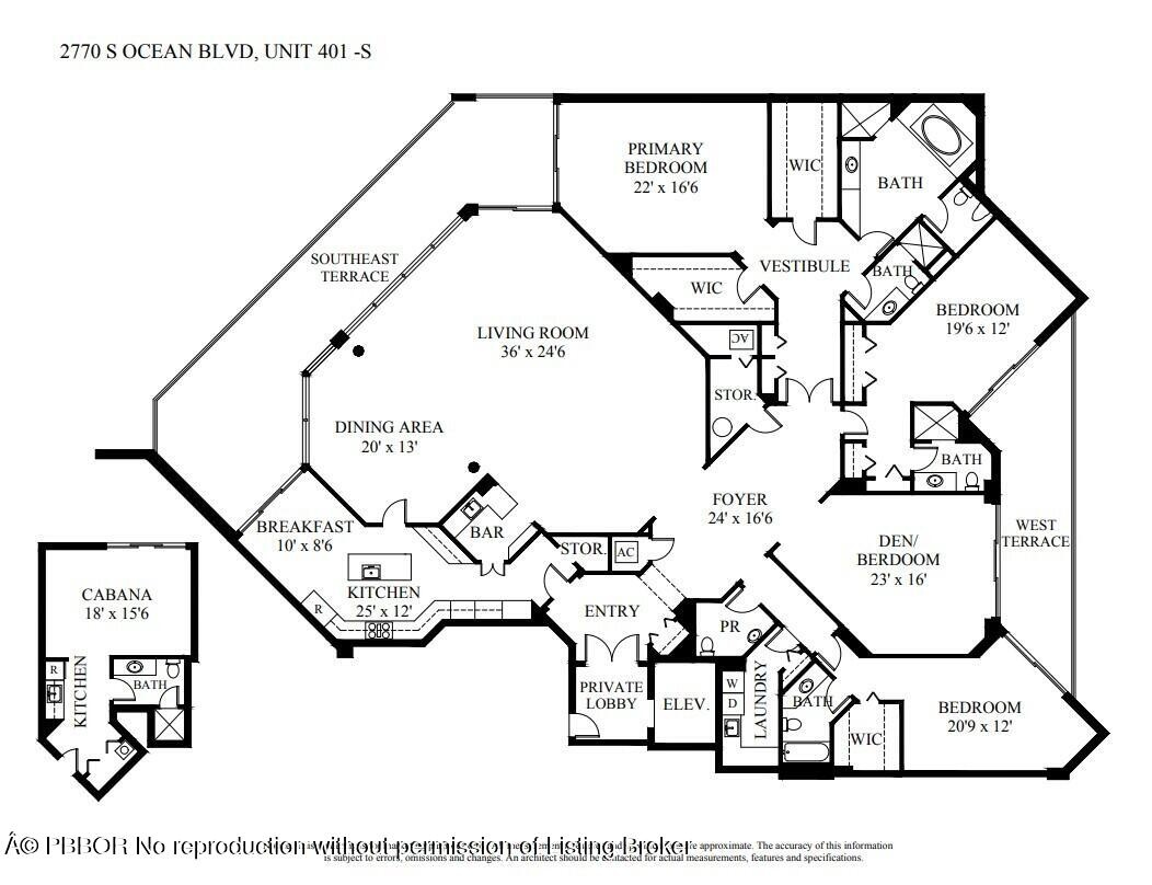A rare condo offering in Palm Beach. Meticulously-maintained 4 Bedroom, 4.5 Bathroom apartment with breathtaking ocean and Intracoastal views from almost every room. This thoughtfully-designed unit lives like a home with over 4300 sf under air and light-filled, expansive living spaces. Greeted by a private elevator and foyer, the elegant floor plan offers comfort in every room with voluminous ceiling heights and gracious proportions. Balconies flank nearly every major room and provide views spanning all exposures. Additionally, the apartment includes a unique poolside cabana guest suite with full bathroom and kitchenette. The exclusive 2770 boutique building provides the finest white glove service with only 30 units and resort-like amenities including a renovated gym. DISCLAIMER: The written and verbal information provided including but not limited to prices, measurements, square footages, lot sizes, calculations and statistics have been obtained and conveyed from third parties such as the applicable Multiple Listing Service, public records as well as other sources. All information including that produced by the Sellers or Listing Company are subject to errors, omissions or changes without notice and should be independently verified by any prospect for the purchase of a Property. The Sellers and Listing Company expressly disclaim any warranty or representation regarding all information. Prospective purchasers' use of this or any written and verbal information is acknowledgement of this disclaimer and that Prospects shall perform their own due diligence. Prospective purchasers shall not rely on any written or verbal information provided when entering a contract for sale and purchase. Some affiliations may not be applicable to certain geographic areas. Copyright 2023 Listing Company. All Rights Reserved.