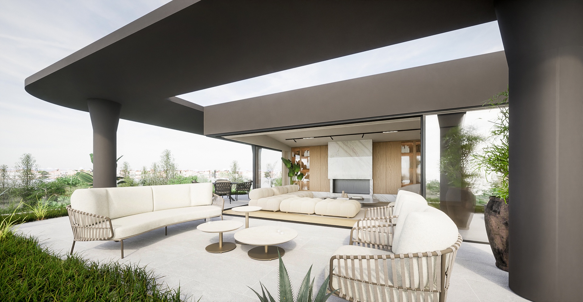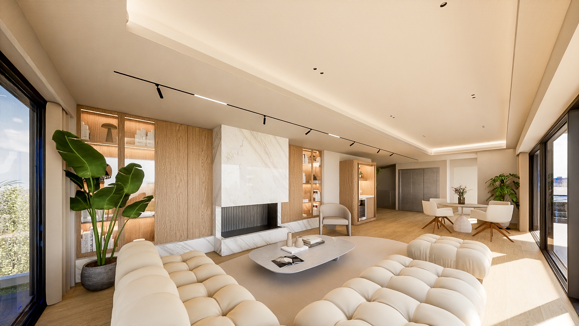 Stepping into the penthouse, the horizon unfolds through full-height windows,