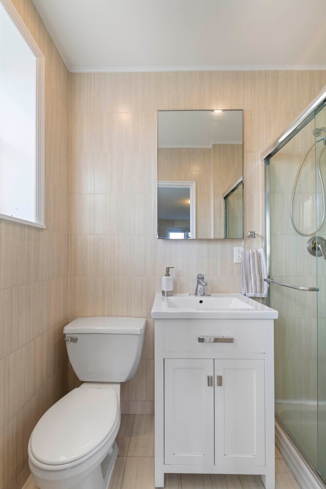 The renovated chef's kitchen includes custom wood cabinetry, granite counters, stainless steel appliances, a pantry, dual sinks, and three windows-plus a full-size washer and dryer, plenty of room to spare. On one side you have a private primary bedroom with east and south light and a renovated ensuite with stall shower. Two large bedrooms with hall bath and ample closet storage throughout. A fourth bedroom off the living area can double as a den, office, or guest room. Hardwood floors, recessed lighting, and abundant storage complete the space.