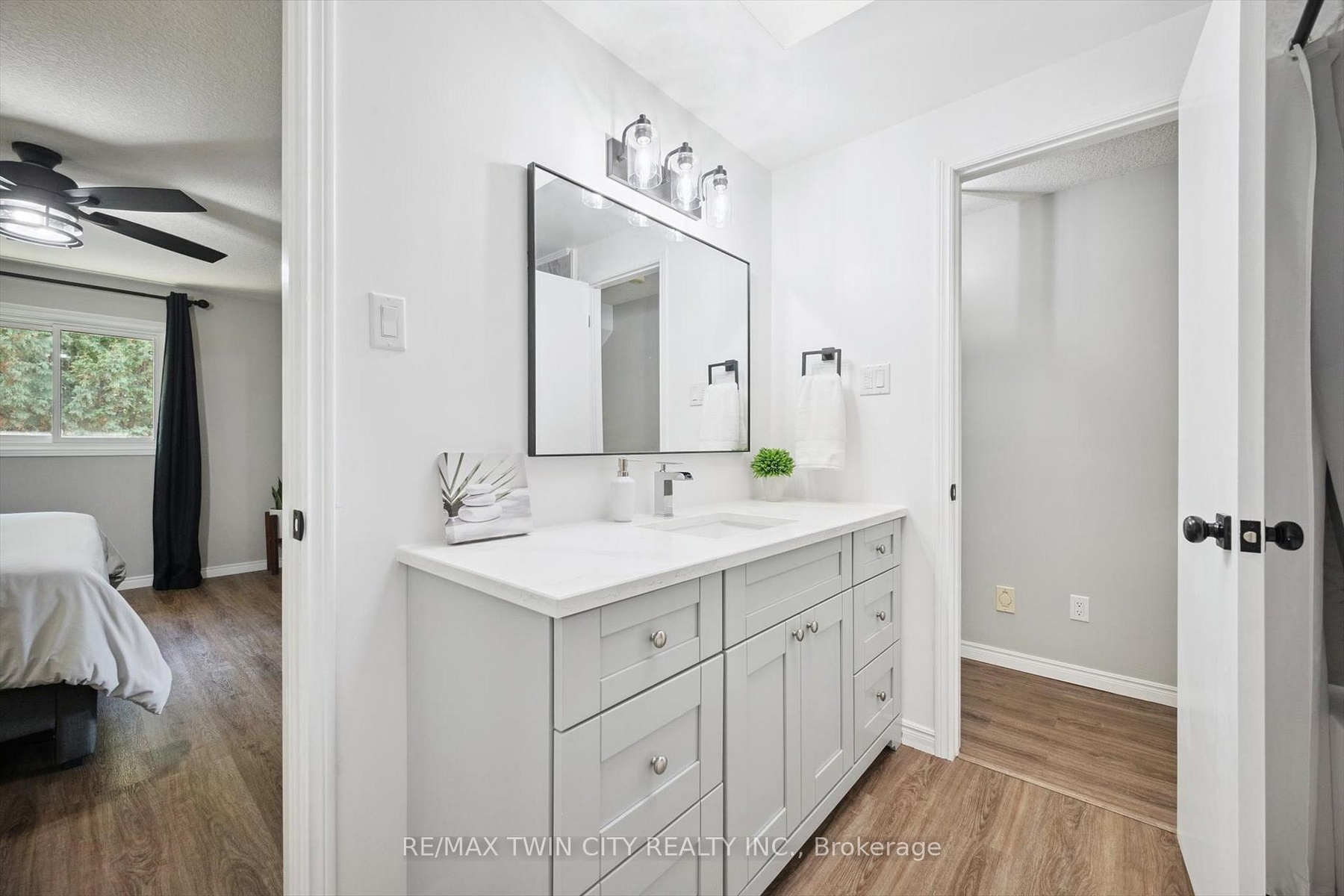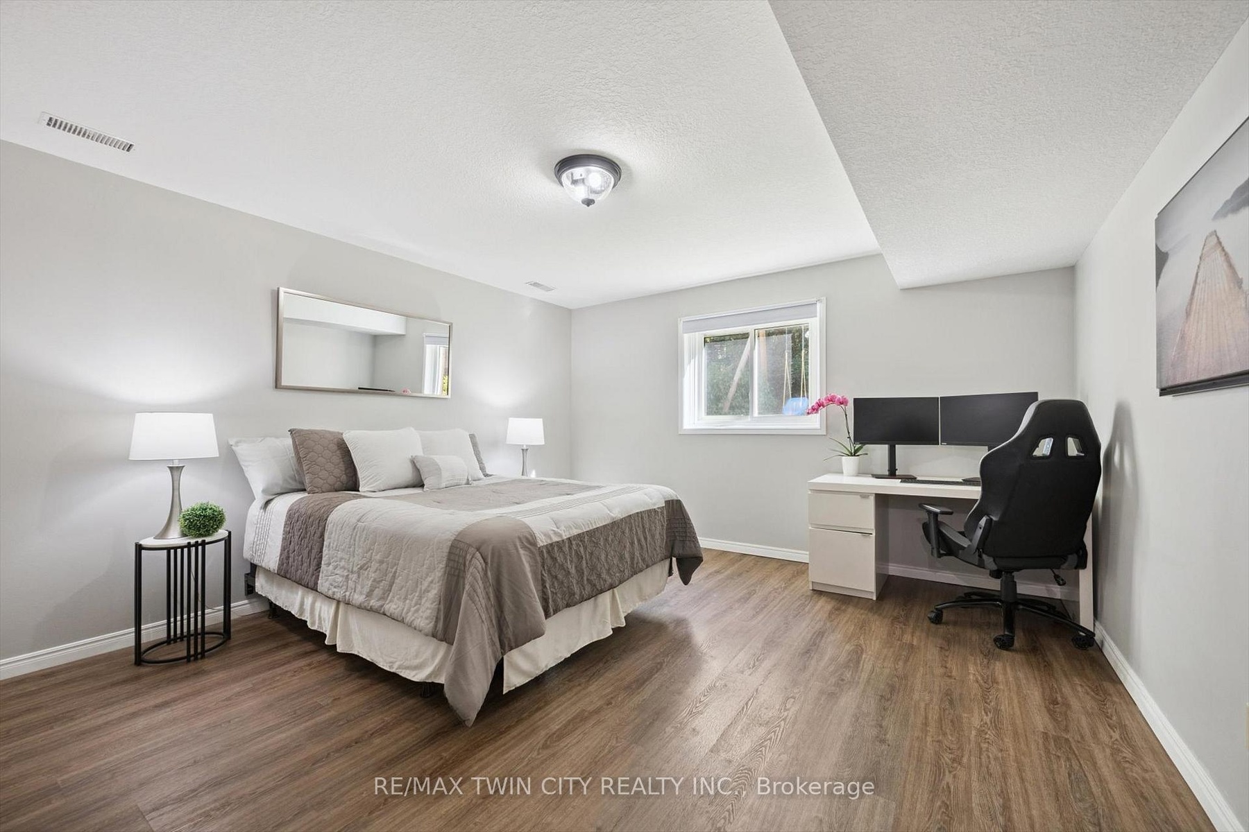 Looking for the perfect home to grow into? This stunning backsplit is bursting with space and upgrades, ready to accommodate your evolving family lifestyle! The spacious main floor features a warm living room, a bright dining area, and a gigantic kitchen with tons of cabinet and counter space-perfect for family meals and entertaining guests. Step outside through patio doors onto a huge deck overlooking a fully fenced yard-ideal for kids' playtime and summer barbecues! Upstairs, retreat to your primary bedroom with a walk-in closet and easy access to a stylish 4-piece bathroom. Two more bedrooms offer plenty of space for kids, sleepovers, or a home office. The lower level is a family haven with a cozy gas fireplace, a large 4th bedroom, and a sleek 3-piece bathroom-perfect for movie nights and relaxing weekends. The basement is an entertainer's dream with a big rec room, wet bar, and room for all your hobbies and storage needs. Updates include a lifetime aluminum shake roof, new windows (2011), attic re-insulation (2022), fence (2023), and bathroom renovations (2024 and 2025). Plus, new carpet, stair railing, and a dishwasher (2024) keep everything fresh and modern. Located steps from beautiful Forest Heights Trail, nearby parks, and Driftwood Public School, with easy access to HWY 8 just minutes away, this home is a fantastic opportunity for your growing family to thrive and create lasting memories!