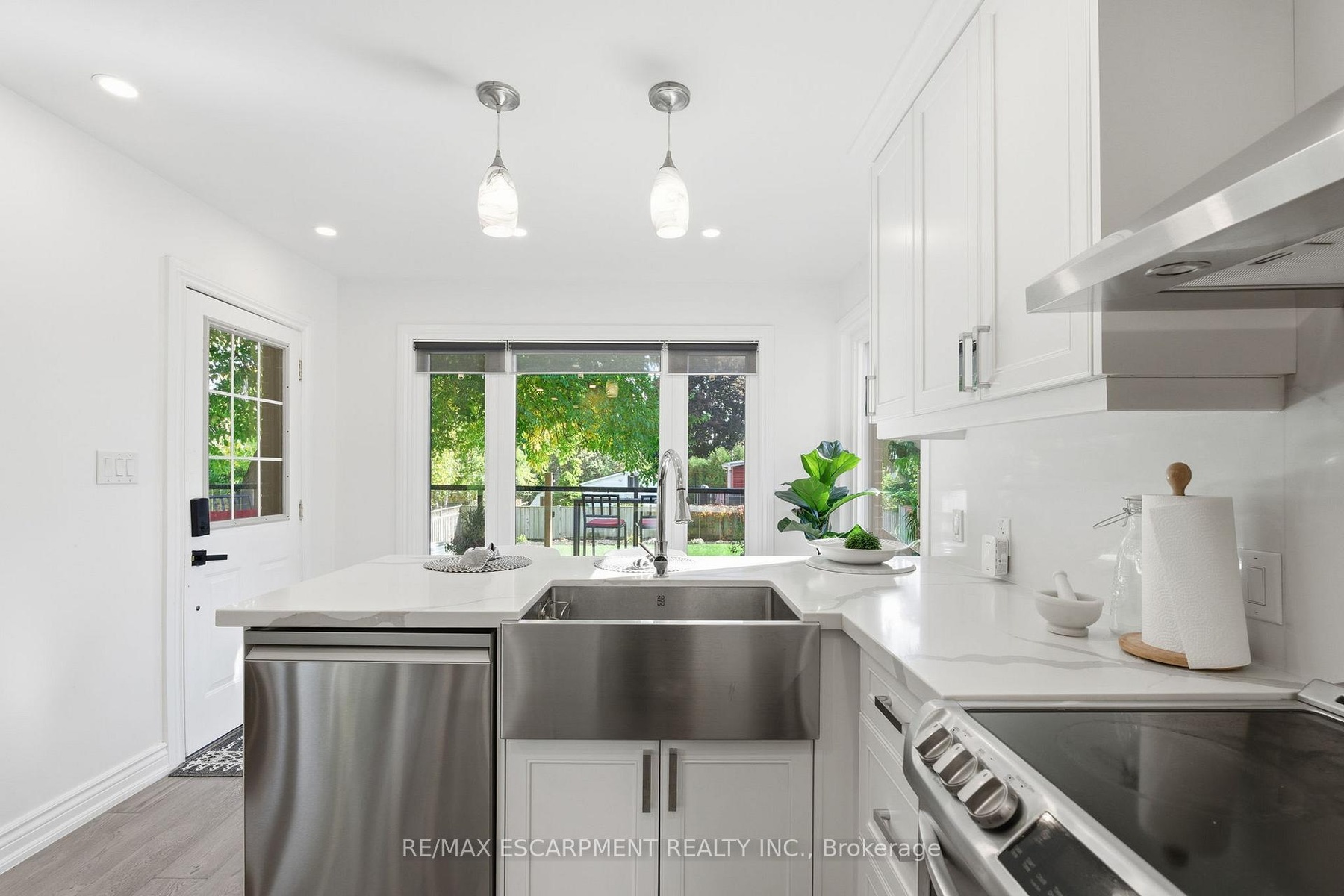 424 Plains Road West is no plain Jane. Tucked into the coveted Aldershot community, this home stands apart. An expansive detached residence defined not by excess, but by the kind of craftsmanship and quiet confidence that never goes out of style. Set on a lush 64 x 151 ft lot with R2.1 zoning, the home spans over 2,200 sq ft of finished living space. Every detail has been reimagined with intention: hand-scraped hardwood, designer tile and natural light that lingers in every corner. Stepping into the main level, you'll find a space designed for connection and celebration. The grand living room invites evenings by the natural gas fireplace and opens effortlessly into the custom solid-wood kitchen - quartz counters, matching backsplash, and stainless-steel appliances, all crafted for gatherings both large and small. Step from the kitchen into the private backyard to grill on the BBQ, sip cocktails on the interlock patio or unwind in the hot tub when cooler nights roll in. Just beyond, two bright main-floor bedrooms are paired with a beautifully updated full bath that ties the space together. Upstairs, the private primary loft is a true haven. A spacious bedroom, lounge area, and oversized walk-in closet - a sanctuary perched quietly above it all. The finished lower level is equally impressive as it offers the perfect setup for guests or in-law suite, with a separate entrance, family room, guest bedroom and full bath. Every inch has been considered: newer plumbing and electrical, updated insulation, furnace, HVAC, windows, doors, concrete porch, driveway, deck and fencing. Move in and exhale because it's all been done. In the heart of Aldershot, moments from the GO Station, parks, shops and the escarpment's edge, this is a home that is confident, refined and effortlessly cool. RSA.