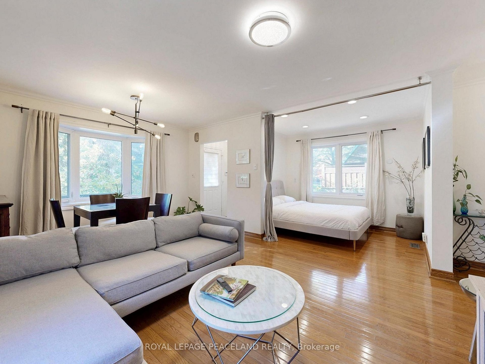 Welcome to this warm and beautifully renovated bungalow located in the prestigious Bluffs community, within the highly sought-after Chine Drive School District - one of Toronto's most desirable family neighbourhoods. This area is celebrated for its tree-lined streets, sense of community, and proximity to the Lake, walking trails, and top-rated schools. Step inside to discover a bright, sun-filled living space with hardwood floors. The versatile main living area can be arranged as living plus dining, or living plus a den with a large window - currently set up as a charming extra bedroom/den filled with natural light. The modern kitchen features granite countertops, upgraded cabinetry, and a walkout to the private backyard oasis complete with a pond, tiki bar, and gazebo - perfect for outdoor entertaining or peaceful evenings under the stars. The primary bedroom overlooks the beautifully landscaped backyard, creating a serene and relaxing atmosphere every morning. The finished lower level with a side entrance includes a spacious recreation room, an additional bedroom, and a modern 3-piece bath - ideal for guests or a home office. Lovingly maintained and filled with warmth, this home truly combines charm, functionality, and location. With a large powered garage, just steps to the Bluffs, parks, TTC, GO Train, cafés, and great schools, and only 20 minutes to downtown Toronto, this property offers the perfect balance of urban convenience and coastal tranquility.