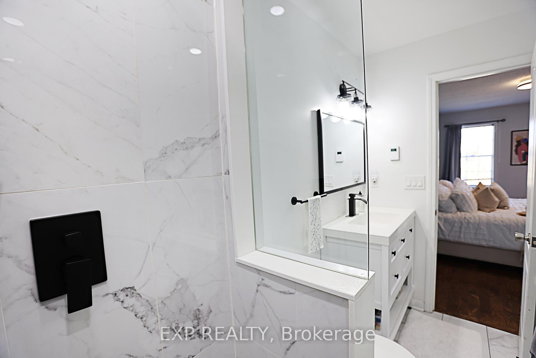 Welcome to this beautifully maintained 3+1 bedroom, 4-bath semi-detached home in Milton's highly sought-after Clarke neighbourhood, just minutes from Hwy 401! This bright, carpet-free home sits on a 30 ft x 80 ft lot and offers parking for three vehicles-two in the driveway and one in the garage.With over 1,500 sq. ft. of functional living space, enjoy a welcoming covered front porch leading into an open-concept main floor with a spacious living and dining area. The well-appointed kitchen features ample cabinetry, a pantry, convenient garage access, and a walk-out to a private deck-ideal for family gatherings and entertaining.Upstairs, you'll find three generous bedrooms, including an oversized primary suite with a renovated ensuite, and a Jack & Jill bathroom connecting the two additional bedrooms. The finished basement adds even more flexibility with an additional bedroom or family room, office, and a 2-piece bath-perfect for guests or a home workspace.Located in a family-friendly community close to top-rated schools, parks, trails, and sports fields, this home combines modern comfort with everyday convenience. Don't miss this opportunity to make this beautiful home yours!
