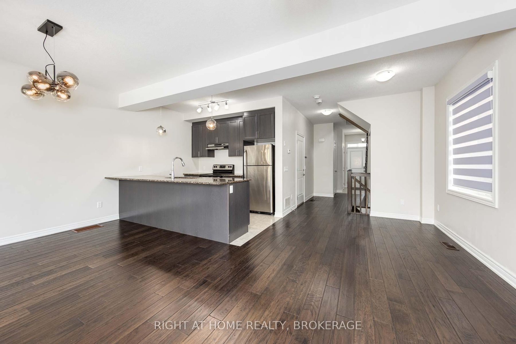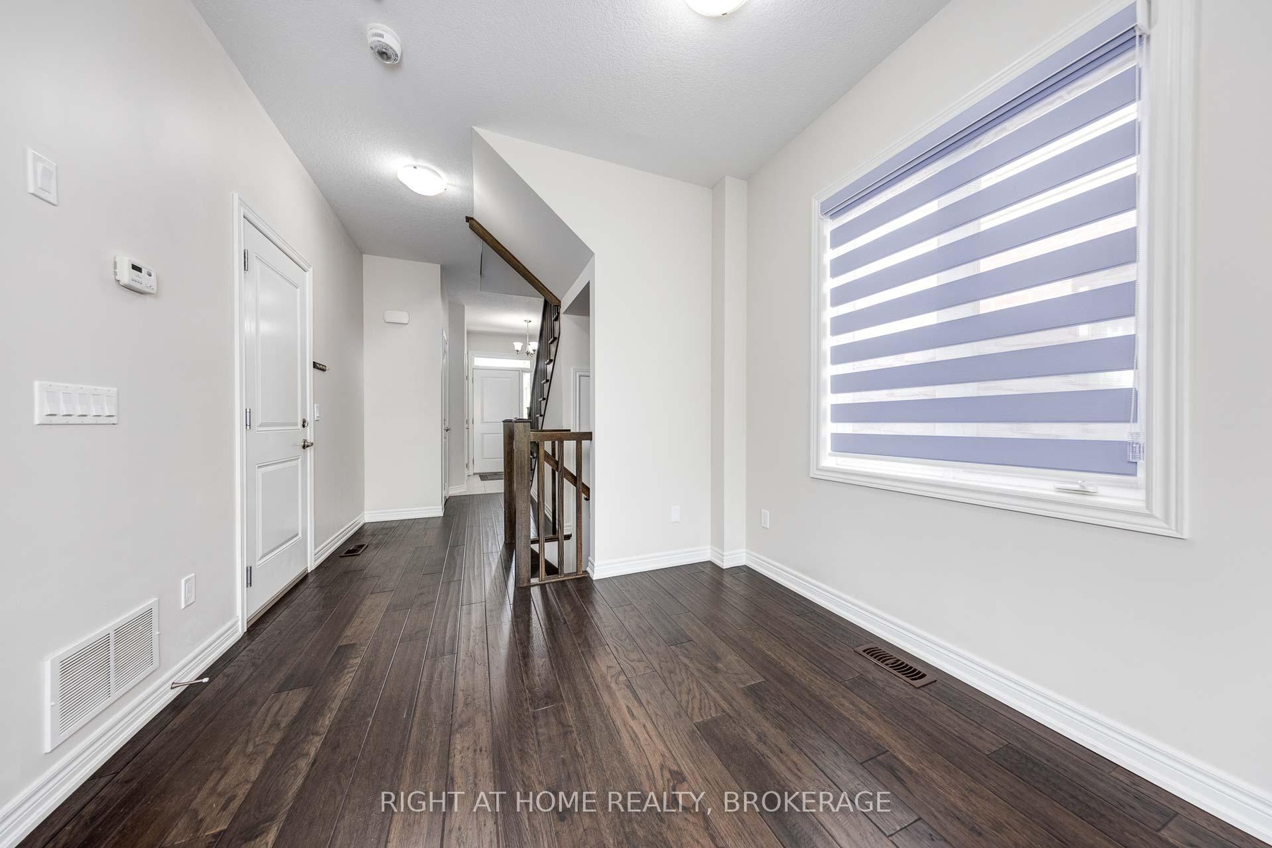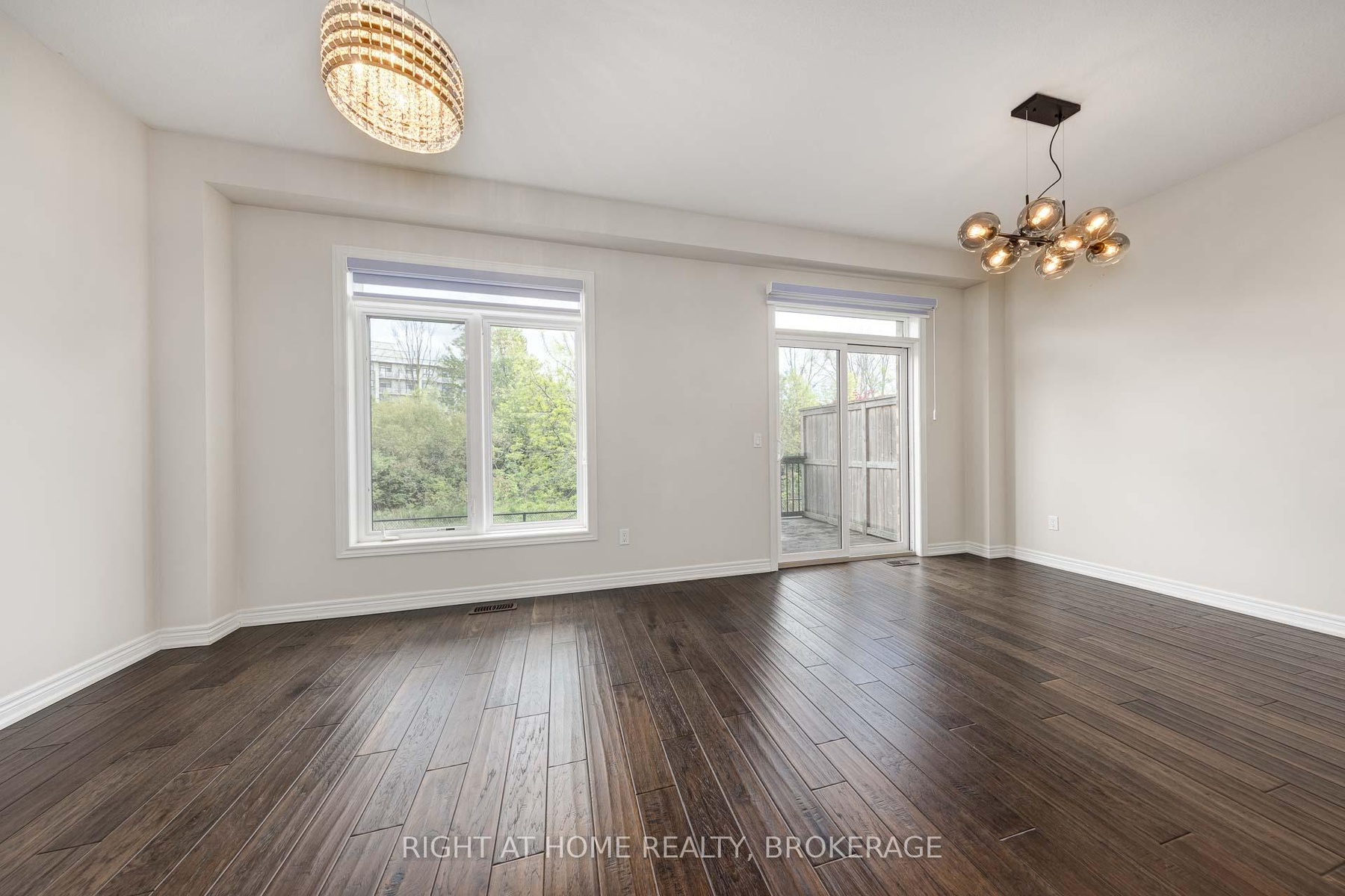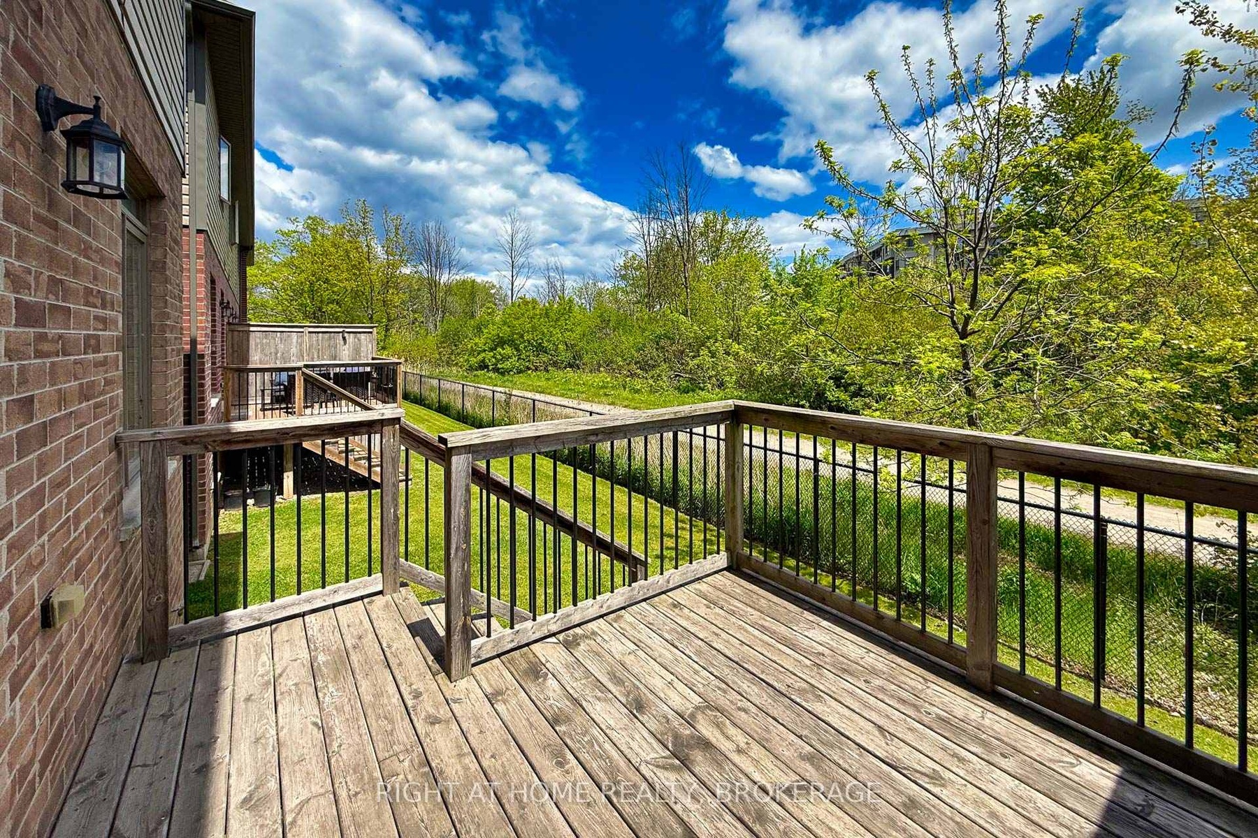 Welcome To This Stunning 3 Bedroom, 2 Storey Townhouse In Sought After Waterfront Trails. Open Concept Layout, Large Foyer Closet &Garage Access. Live by the Lake, No need to Grass cut or Shovel Snow. 3 bed+ 2.5 bath Twhome backs to Green space, This Bright End unitFeatures Open Concept Main Floor 9Ft Ceiling & Maple Engineered Hardwood on main flr. Berber Carpet on 2nd flr. From Living & Dining RoomO/L Beautiful wooded Backyard. Kitchen with Dark Oak cabinets & Granite counter tops. 2nd level with M-bed rm has own ensuite and Large walk-in-closet, Plus Spacious O/C Den. Great Location Next to Beach pathway, Parks, Schools, Shopping, Costco, Hwy. Qew. & Red Hill Exp.
