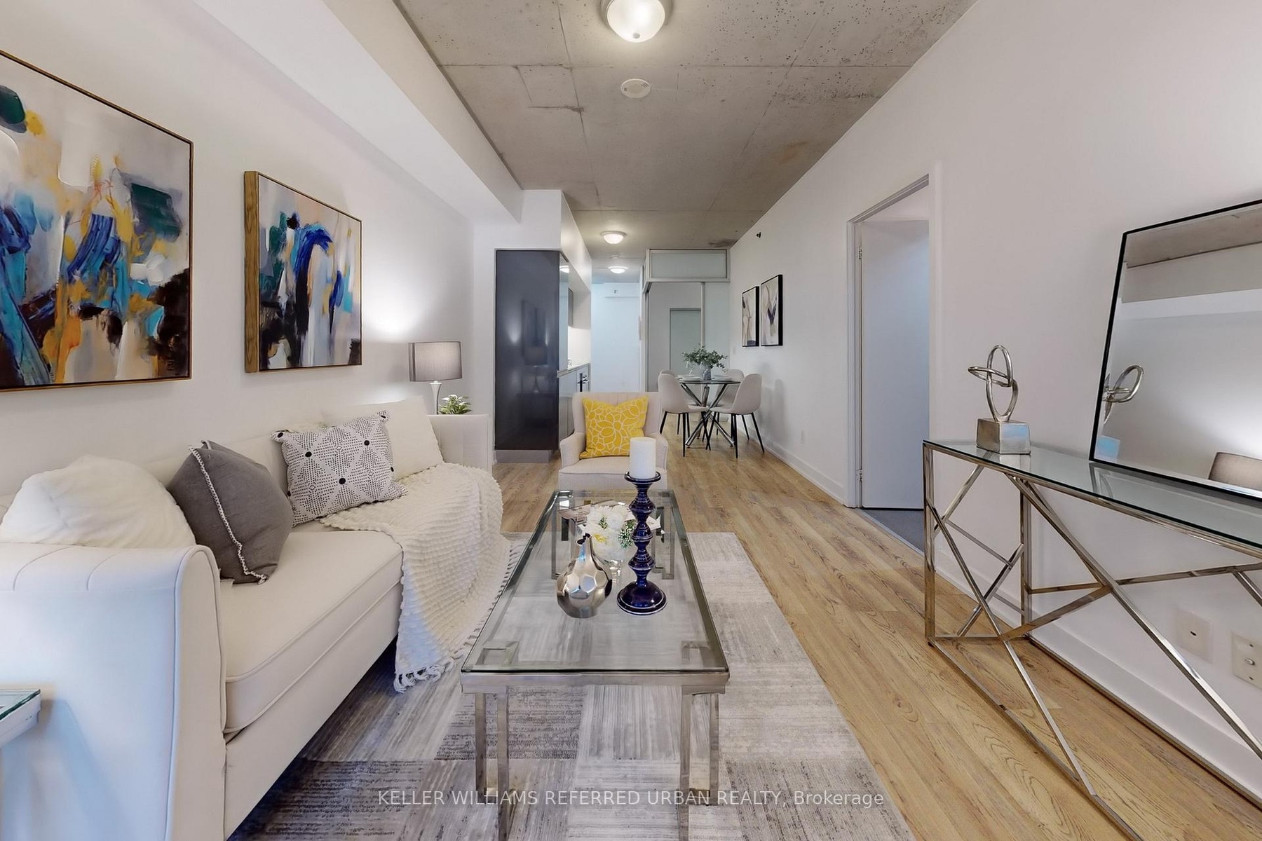 A rare opportunity to own a 2-bedroom, 2-bathroom condo with parking in one of Toronto's most desirable neighbourhoods. This beautifully refreshed residence has just been updated with brand-new flooring and a fresh coat of paint throughout, giving it a bright, clean, and modern feel from the moment you walk in. Set in a boutique building of just 113 suites, the condo offers a quiet, community-oriented atmosphere while placing you steps away from the energy of Queen West. Enjoy the convenience of having trendy restaurants, artisan cafés, local boutiques, and two major grocery stores right at your doorstep. With excellent transit access, commuting and exploring the city is easy and efficient.