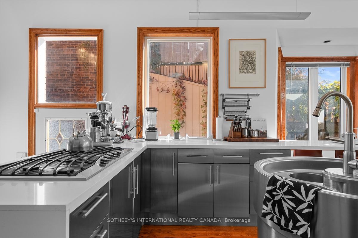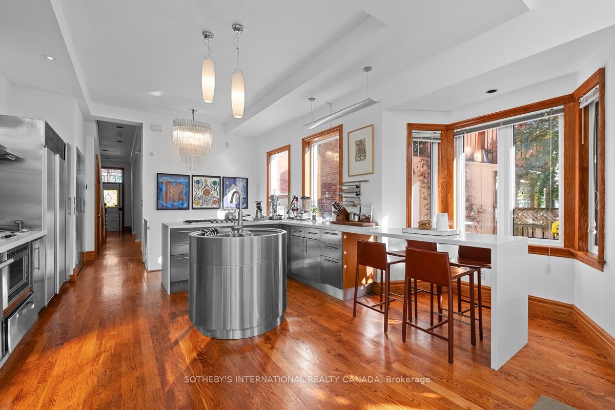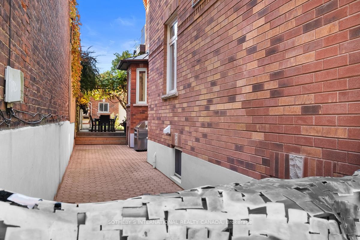 Words can hardly capture how special this home truly is. Nestled on a quiet one-way street just minutes from the vibrant Dufferin + Bloor corridor, this majestic Edwardian in the heart of Dufferin Grove is an architectural masterpiece inside + out. Set on a 25 x 127 ft lot with a private drive + coveted two-car garage, it has been completely gutted + meticulously restored, brick by brick, showcasing rusticated stone details, ornamental brickwork + grand arched windows with original stained glass. The result is a perfect blend of striking modernity + timeless craftsmanship. Sun-drenched interiors framed by towering windows reveal soaring 12-ft ceilings, exquisite oak flooring + trim, elegant crown mouldings + charming original bannisters. The stunning Scavolini kitchen is a culinary dream - fully integrated with white Caesarstone countertops, sleek stainless steel cabinetry, appliances, double-door pantry + slide-out storage. At its centre is an award-winning rotating water station that makes wash + prep effortless without sacrificing counter space. A cozy breakfast bar overlooks the private side patio through a bright bay window. The sunlit family room is perfect for red-carpet movie nights beneath a trio of skylights. The second floor hosts the spacious primary bedroom, a second bedroom + a third bedroom currently used as a home office with access to the first of two sundecks. The third floor features a cozy fourth bedroom, a jewel-like 3-pc bath lined in shimmering Bisazza mosaic tiles + another large sundeck with spectacular sunset views. The lower level offers a fully soundproofed media room currently used as a bedroom, a full 4-pc bath, a convenient laundry/utility room. A self-contained, privately accessed basement studio apartment with a 4-pc bath provides an excellent opportunity for supplementary income or multi-generational living. Please see the attached Property Information Sheet for a detailed list of features, updates, inclusions + exclusions.