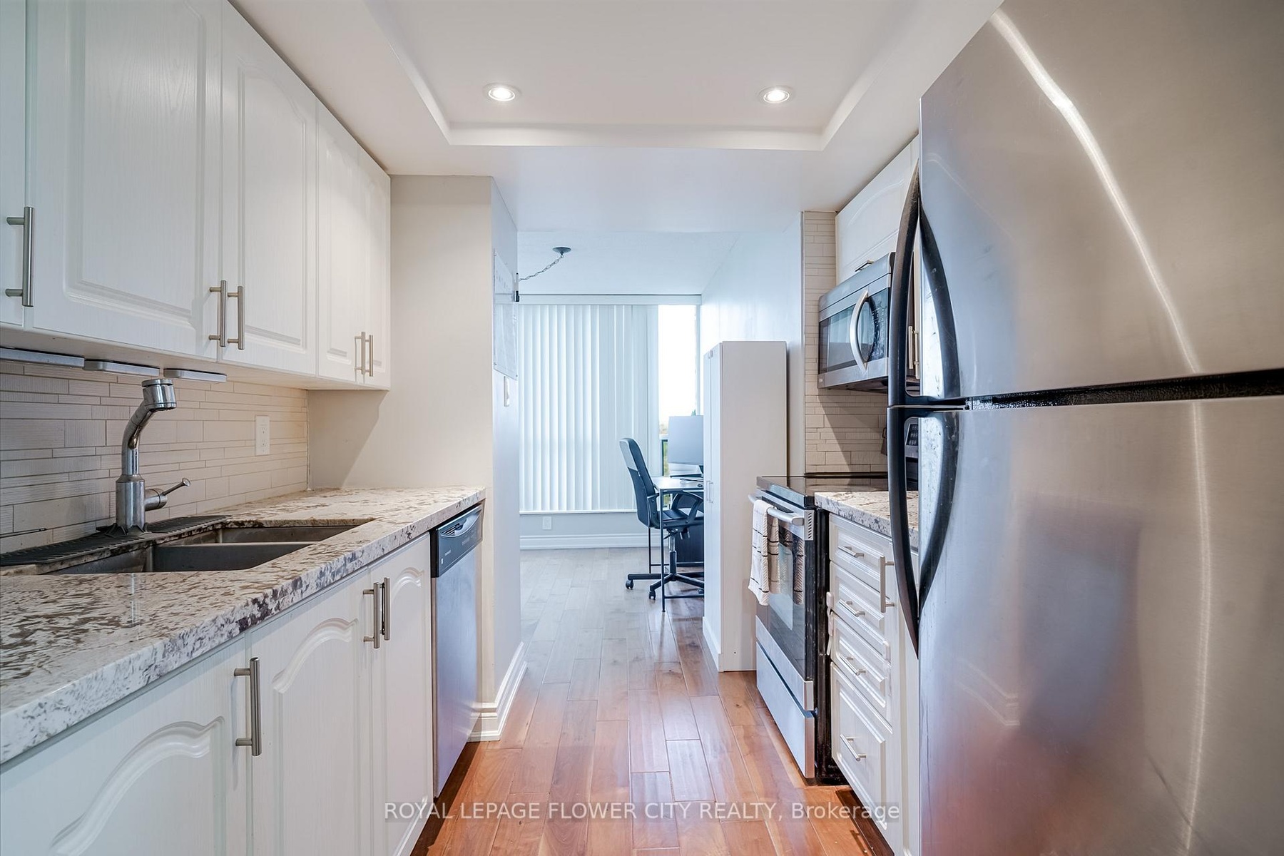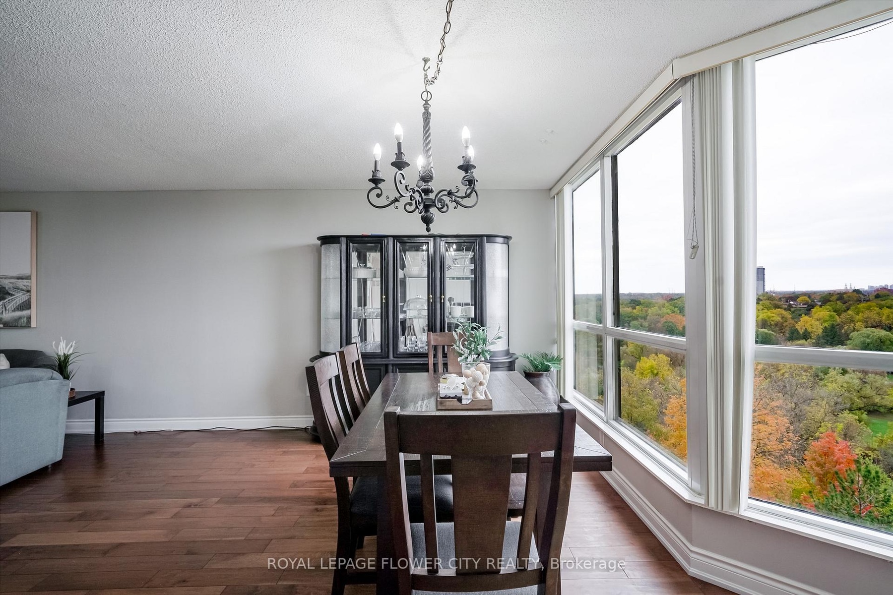 Beautifully updated condo with breathtaking views of the ravine, river, and city skyline! This spacious 2-bedroom, 2 full bathroom unit features an open-concept living and dining area with a bright solarium, walnut hardwood floors, and ensuite laundry. The renovated kitchen boasts granite countertops, stone tile backsplash, and newer doors. The primary bedroom includes a full ensuite with tub, separate shower, and walkout to a private balcony. Includes 2side-by-side parking spots. Located close to all amenities including shopping, schools, parks, and public transit-this is the perfect blend of comfort, style, and convenience!